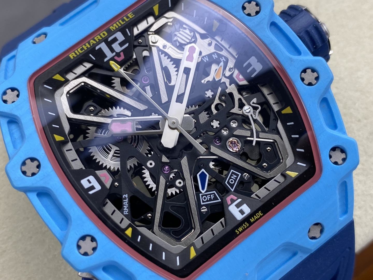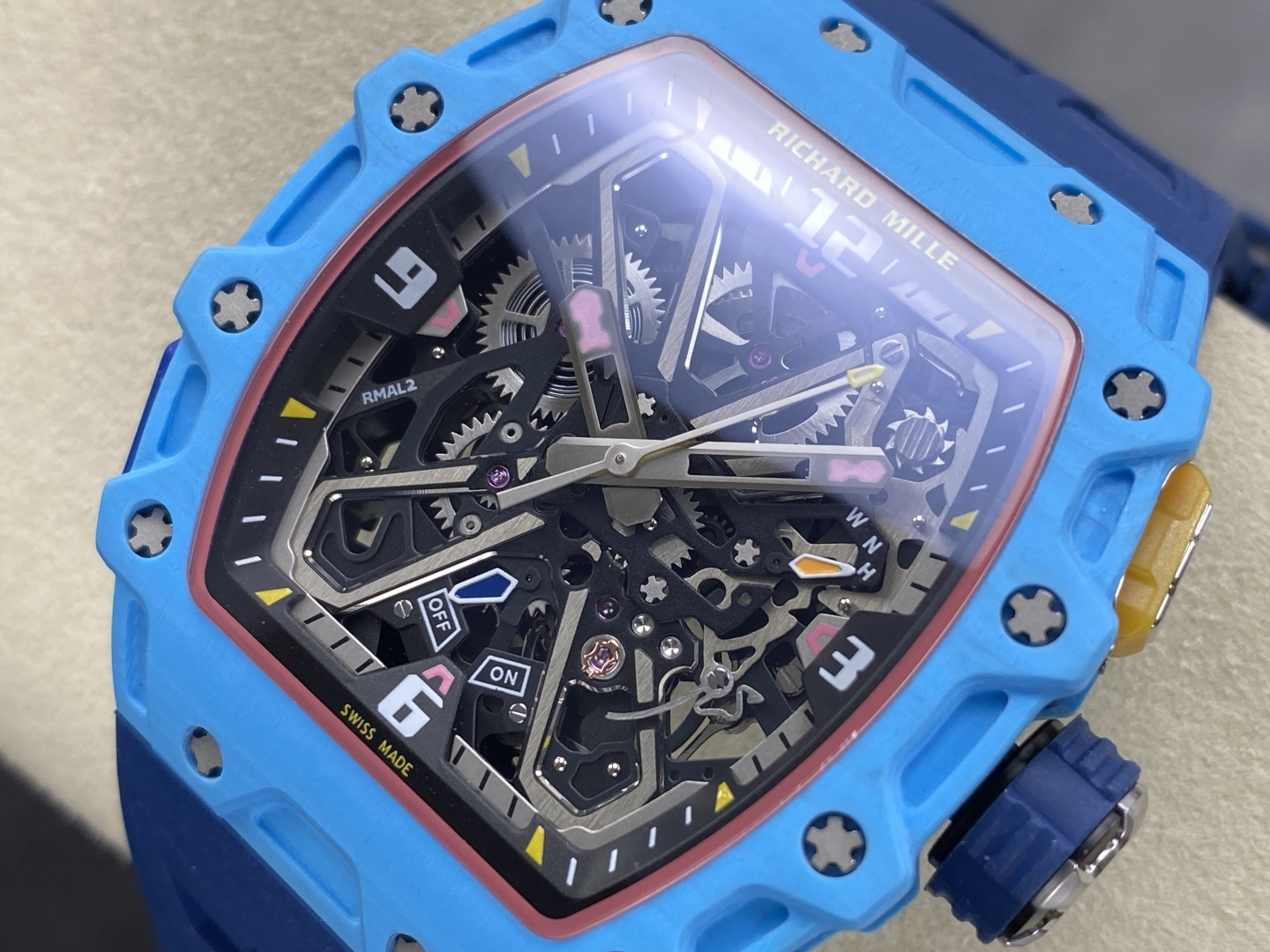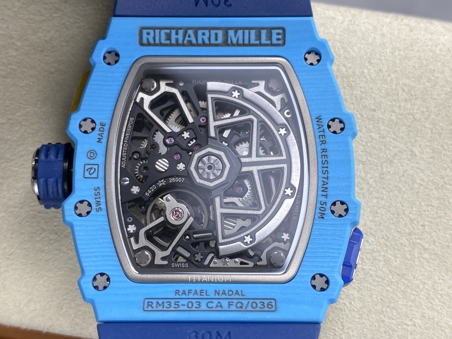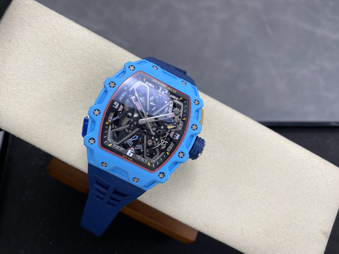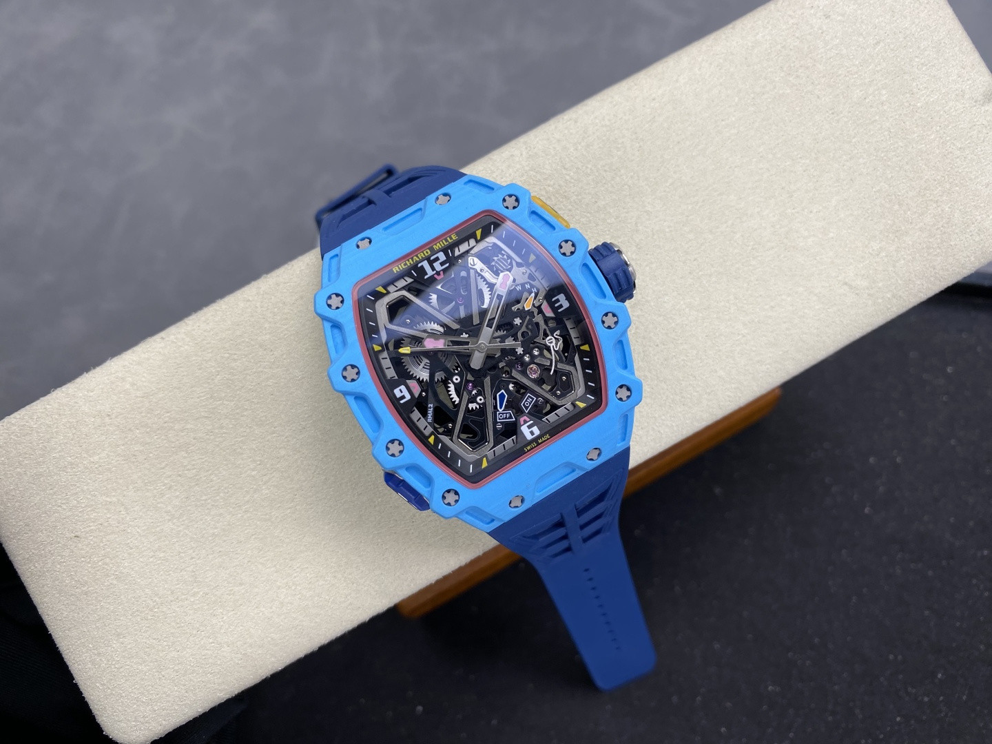 This watches is AAAAA 1:1 quality (superb). Materials used are identical to the original ones. Richard Mille trademark marks are indistinguishable to the authentic. Photos take by actual watches, what you receive will be 100% same with our photos.