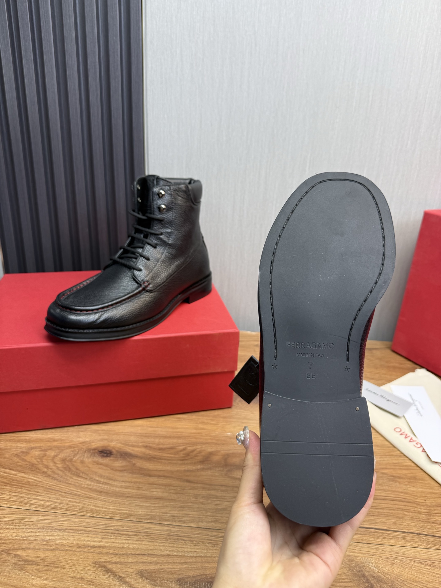 This shoes is AAAAA 1:1 quality (superb). Materials used are identical to the original ones. Salvatore Ferragamo trademark marks are indistinguishable to the authentic. Photos take by actual shoes, what you receive will be 100% same with our photos.