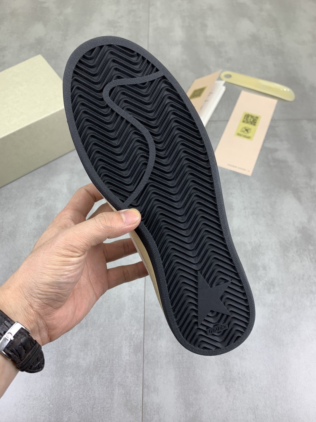 This shoes is AAAAA 1:1 quality (superb). Materials used are identical to the original ones. Golden Goose trademark marks are indistinguishable to the authentic. Photos take by actual shoes, what you receive will be 100% same with our photos.