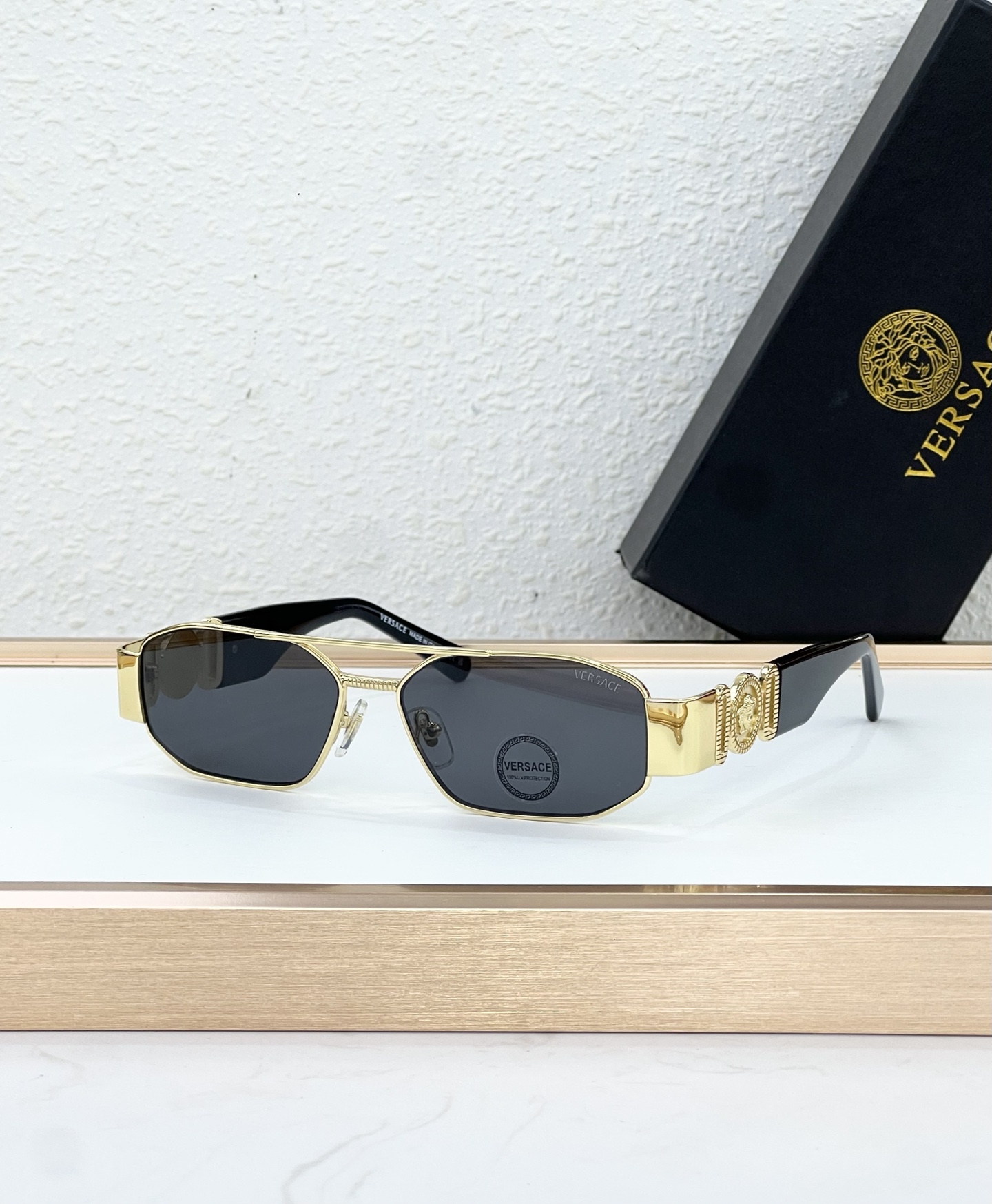 This sunglasses is AAAAA 1:1 quality (superb). Materials used are identical to the original ones. Versace trademark marks are indistinguishable to the authentic. Photos take by actual sunglasses, what you receive will be 100% same with our photos.