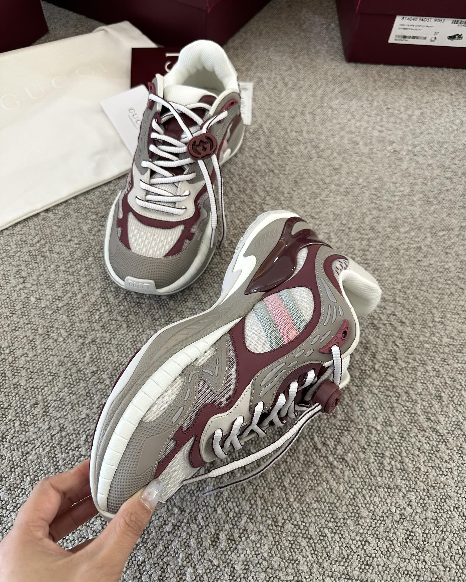 This shoes is AAAAA 1:1 quality (superb). Materials used are identical to the original ones. Gucci trademark marks are indistinguishable to the authentic. Photos take by actual shoes, what you receive will be 100% same with our photos.