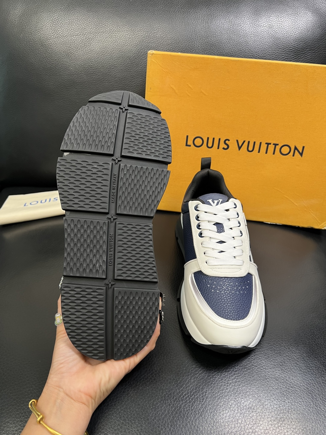 This shoes is AAAAA 1:1 quality (superb). Materials used are identical to the original ones. Louis Vuitton trademark marks are indistinguishable to the authentic. Photos take by actual shoes, what you receive will be 100% same with our photos.