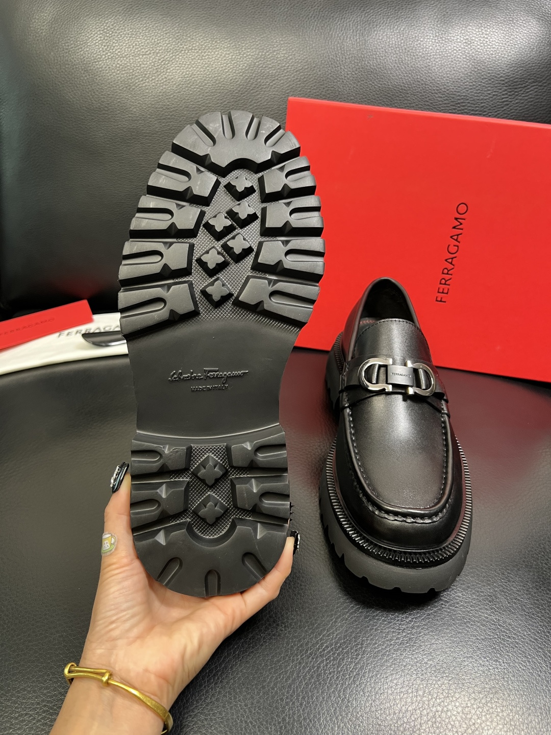 This shoes is AAAAA 1:1 quality (superb). Materials used are identical to the original ones. Salvatore Ferragamo trademark marks are indistinguishable to the authentic. Photos take by actual shoes, what you receive will be 100% same with our photos.