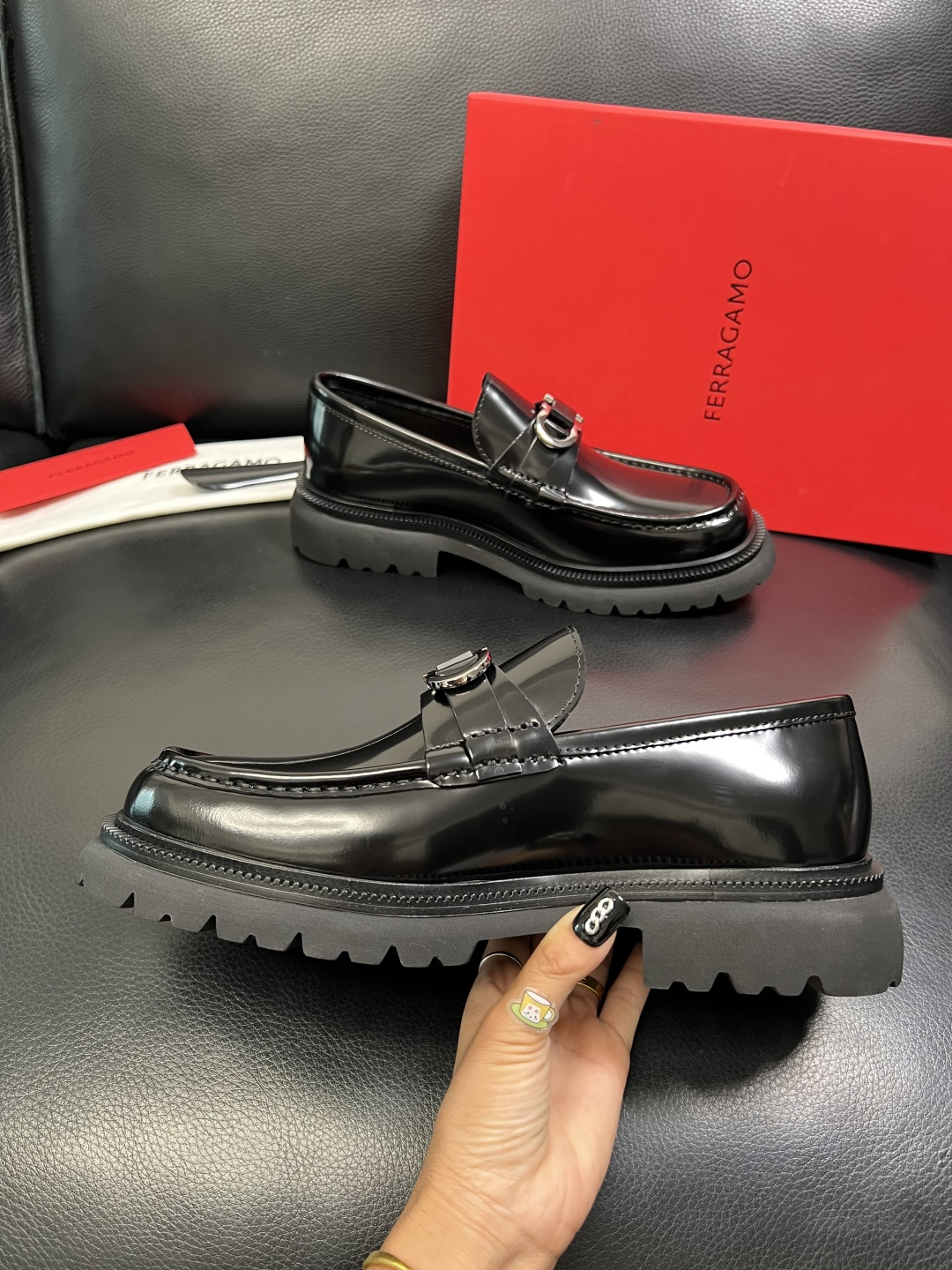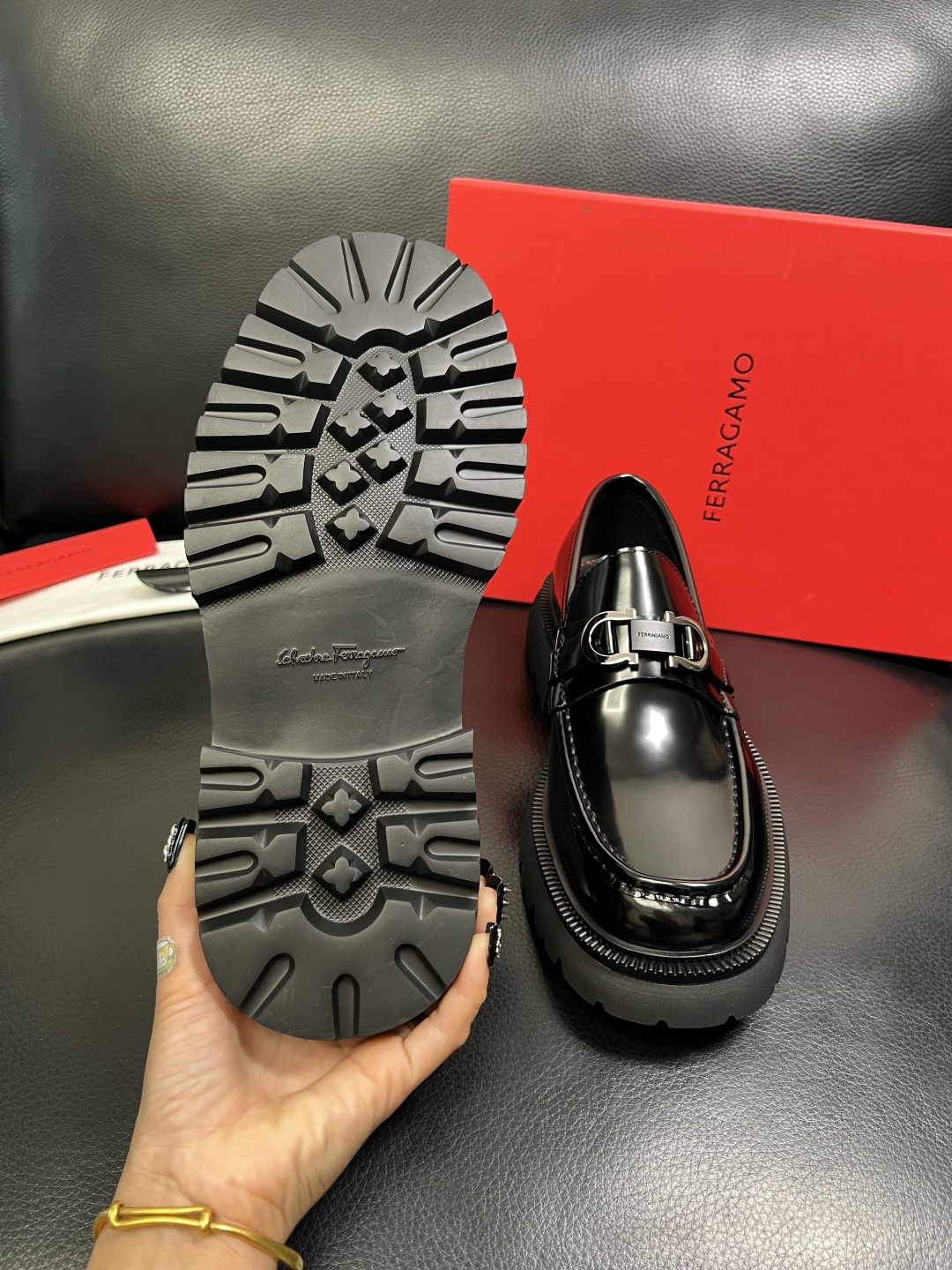 This shoes is AAAAA 1:1 quality (superb). Materials used are identical to the original ones. Salvatore Ferragamo trademark marks are indistinguishable to the authentic. Photos take by actual shoes, what you receive will be 100% same with our photos.