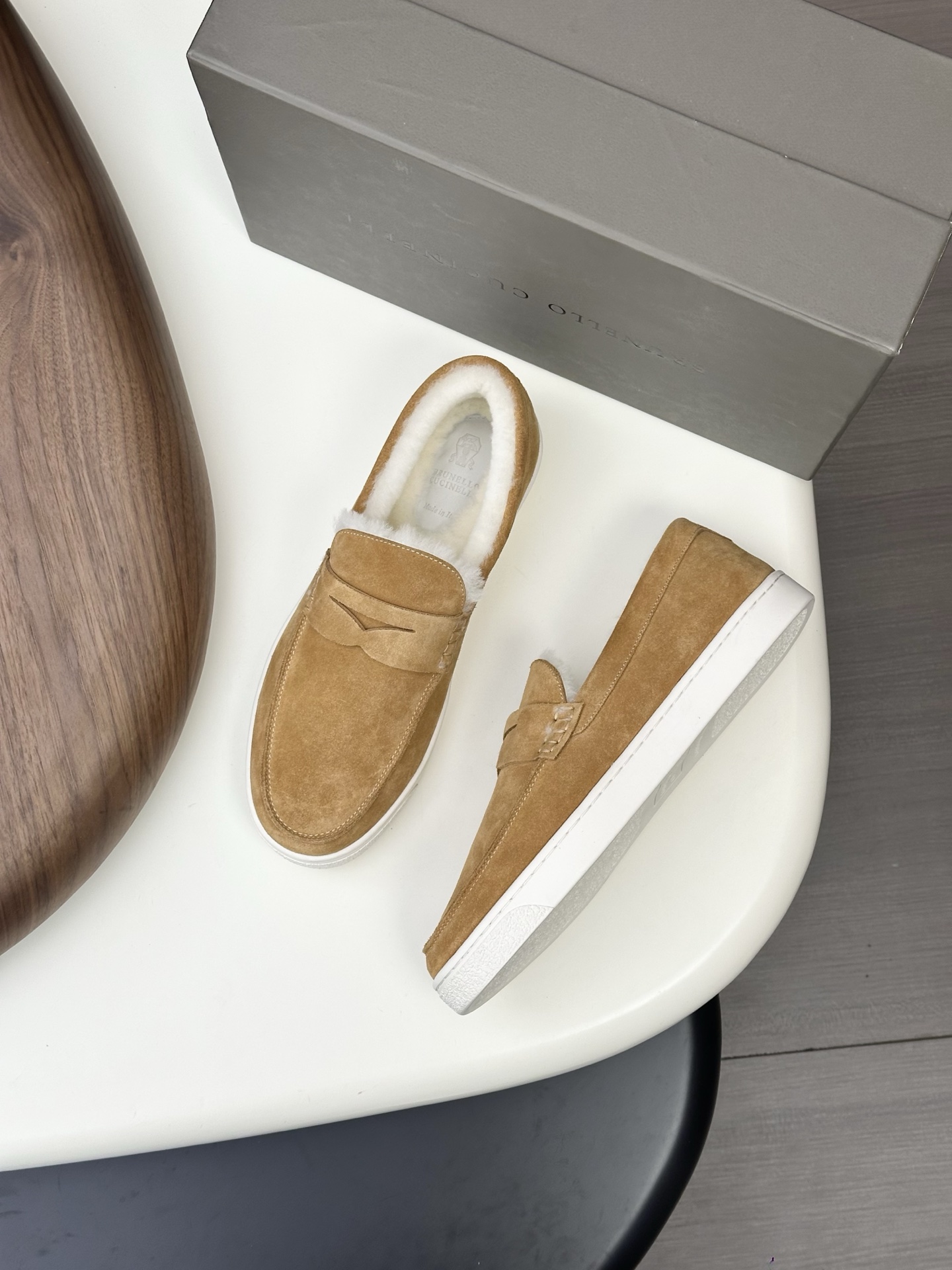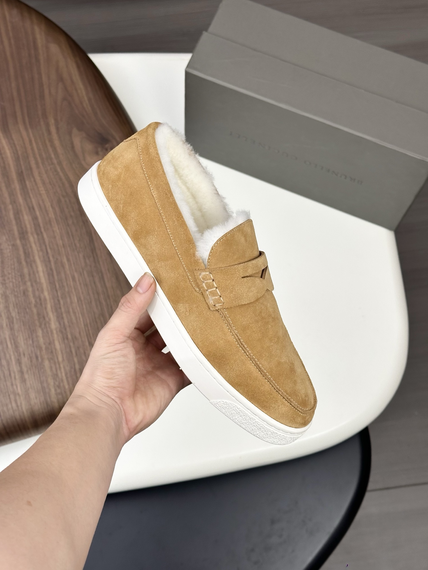 This shoes is AAAAA 1:1 quality (superb). Materials used are identical to the original ones. Brunello Cucinelli trademark marks are indistinguishable to the authentic. Photos take by actual shoes, what you receive will be 100% same with our photos.