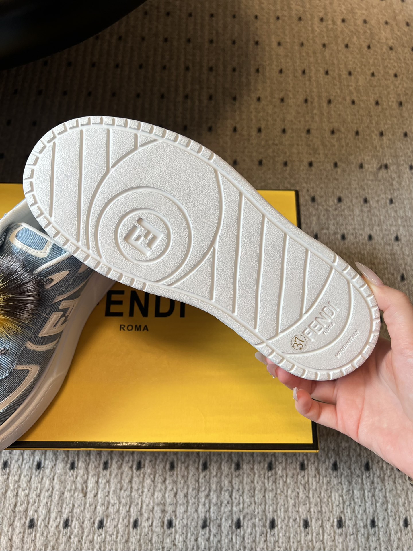 This shoes is AAAAA 1:1 quality (superb). Materials used are identical to the original ones. Fendi trademark marks are indistinguishable to the authentic. Photos take by actual shoes, what you receive will be 100% same with our photos.
