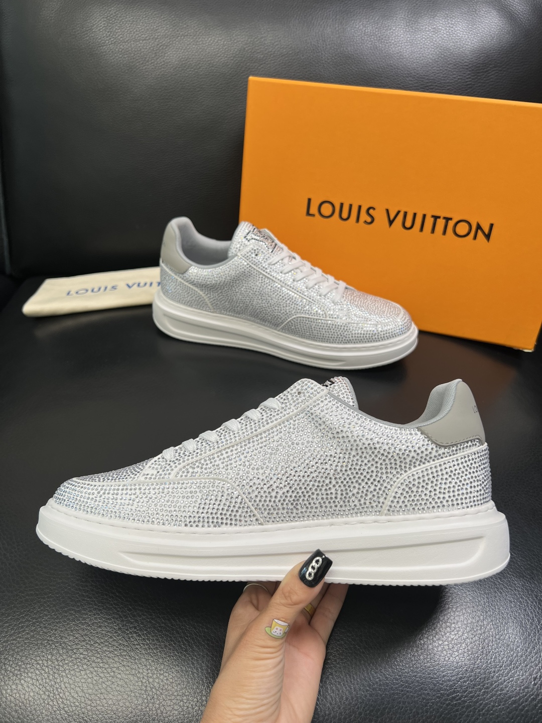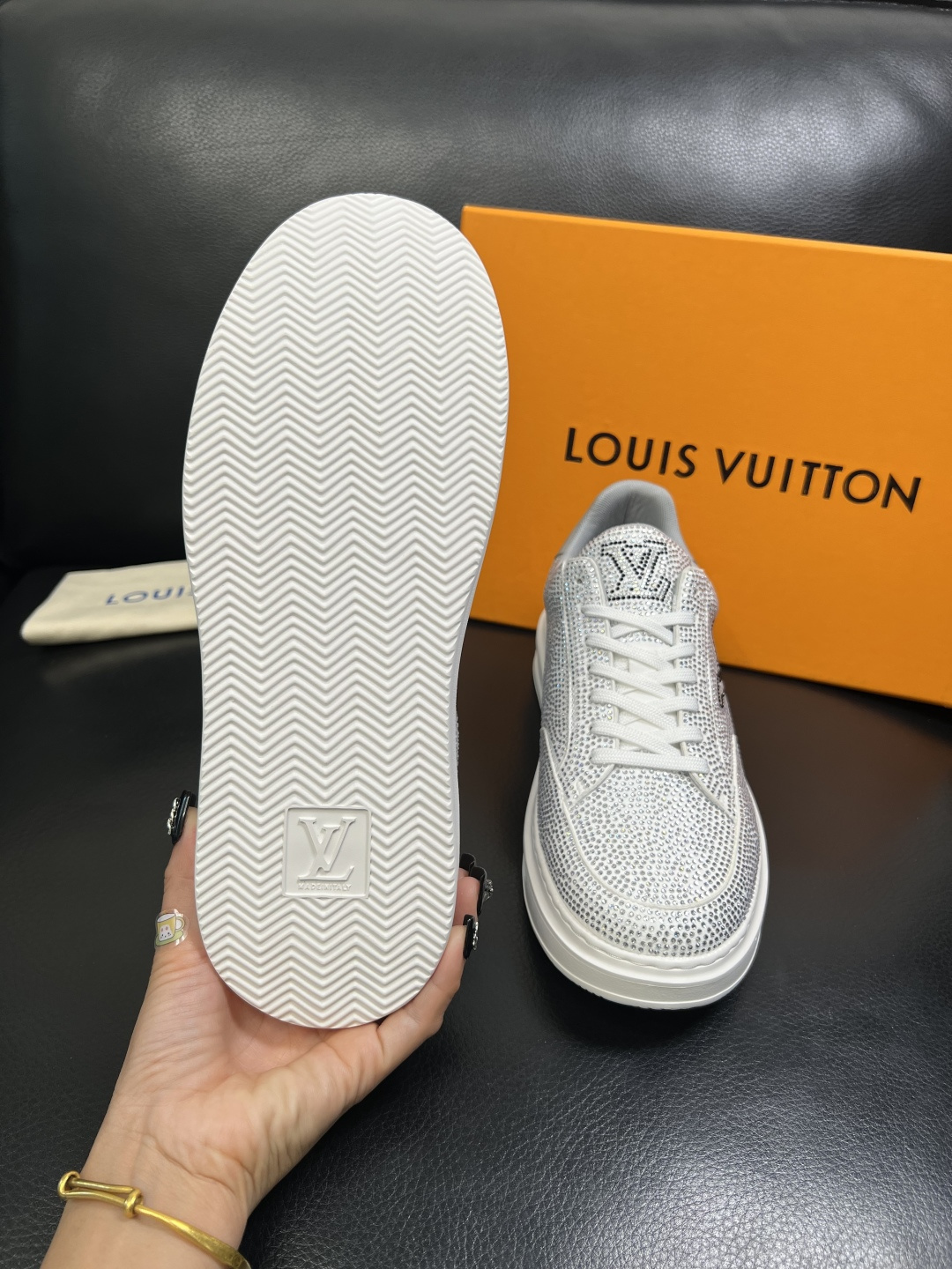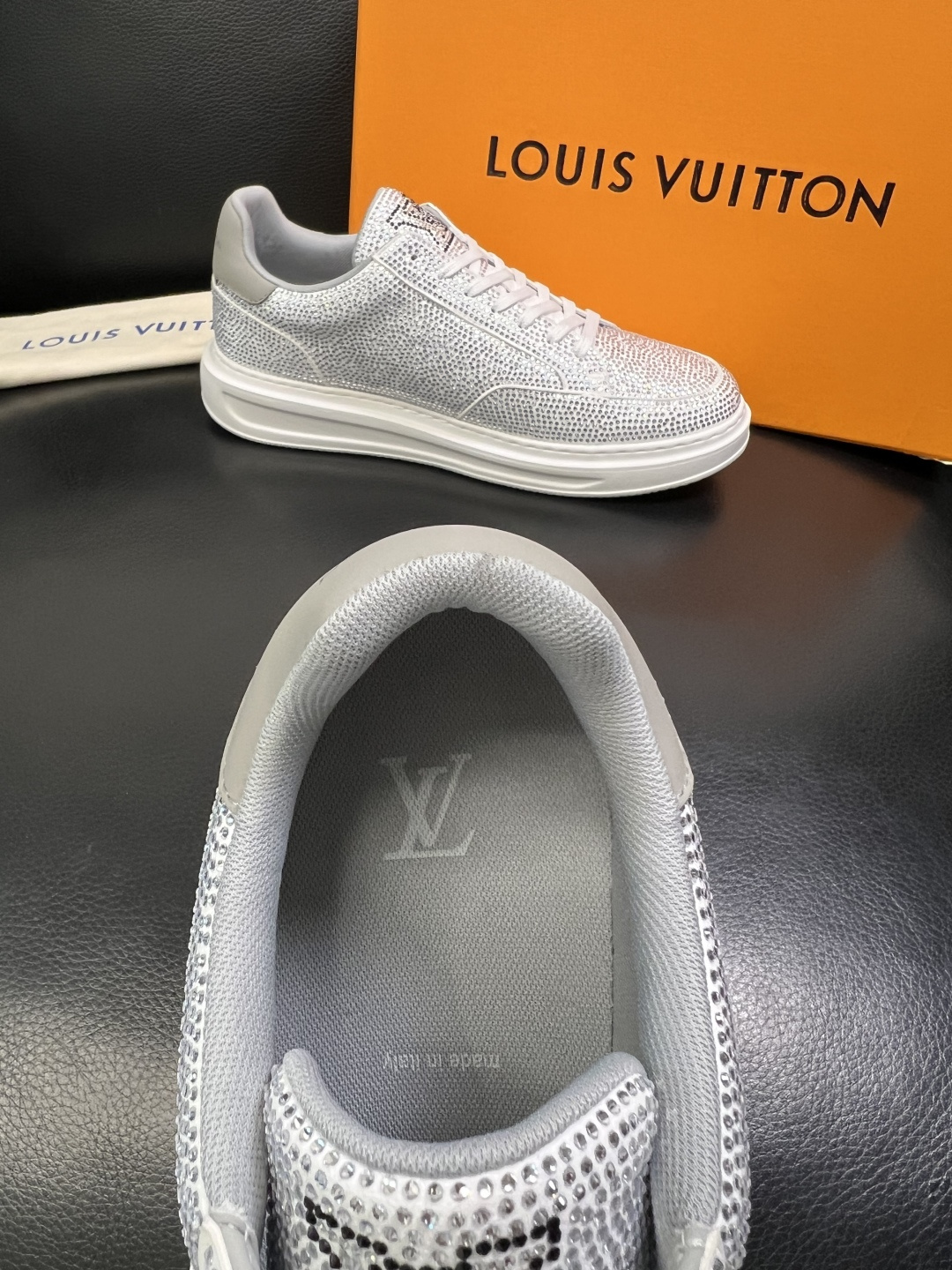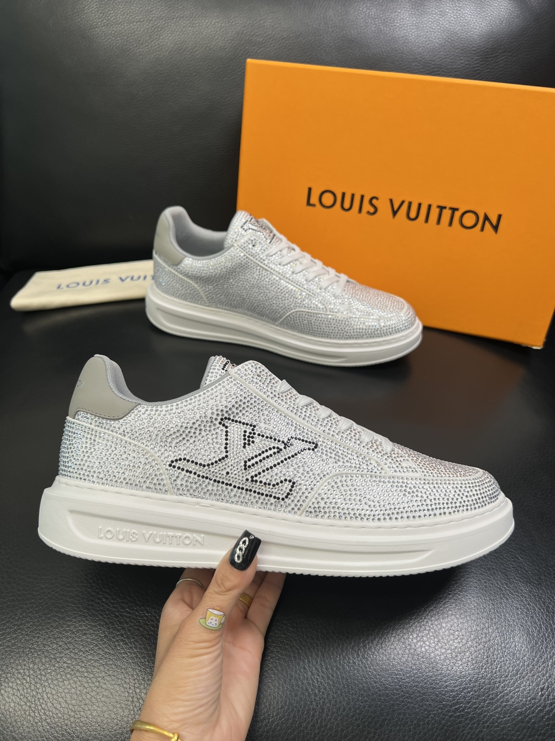 This shoes is AAAAA 1:1 quality (superb). Materials used are identical to the original ones. Louis Vuitton trademark marks are indistinguishable to the authentic. Photos take by actual shoes, what you receive will be 100% same with our photos.