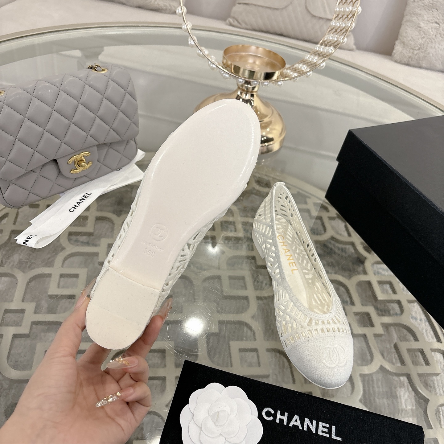 NO:4131948. The shoes is from Chanel designer.