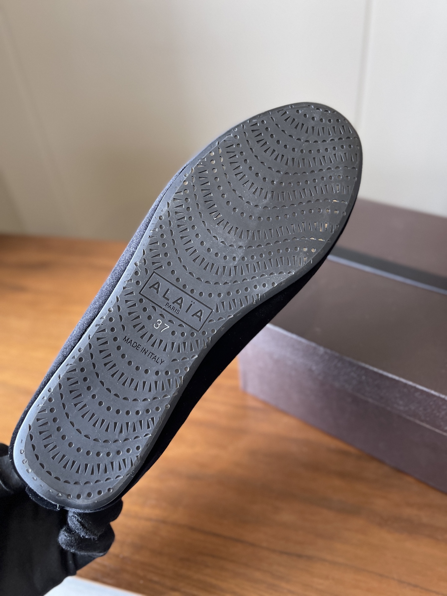 This shoes is AAAAA 1:1 quality (superb). Materials used are identical to the original ones. Alaia trademark marks are indistinguishable to the authentic. Photos take by actual shoes, what you receive will be 100% same with our photos.