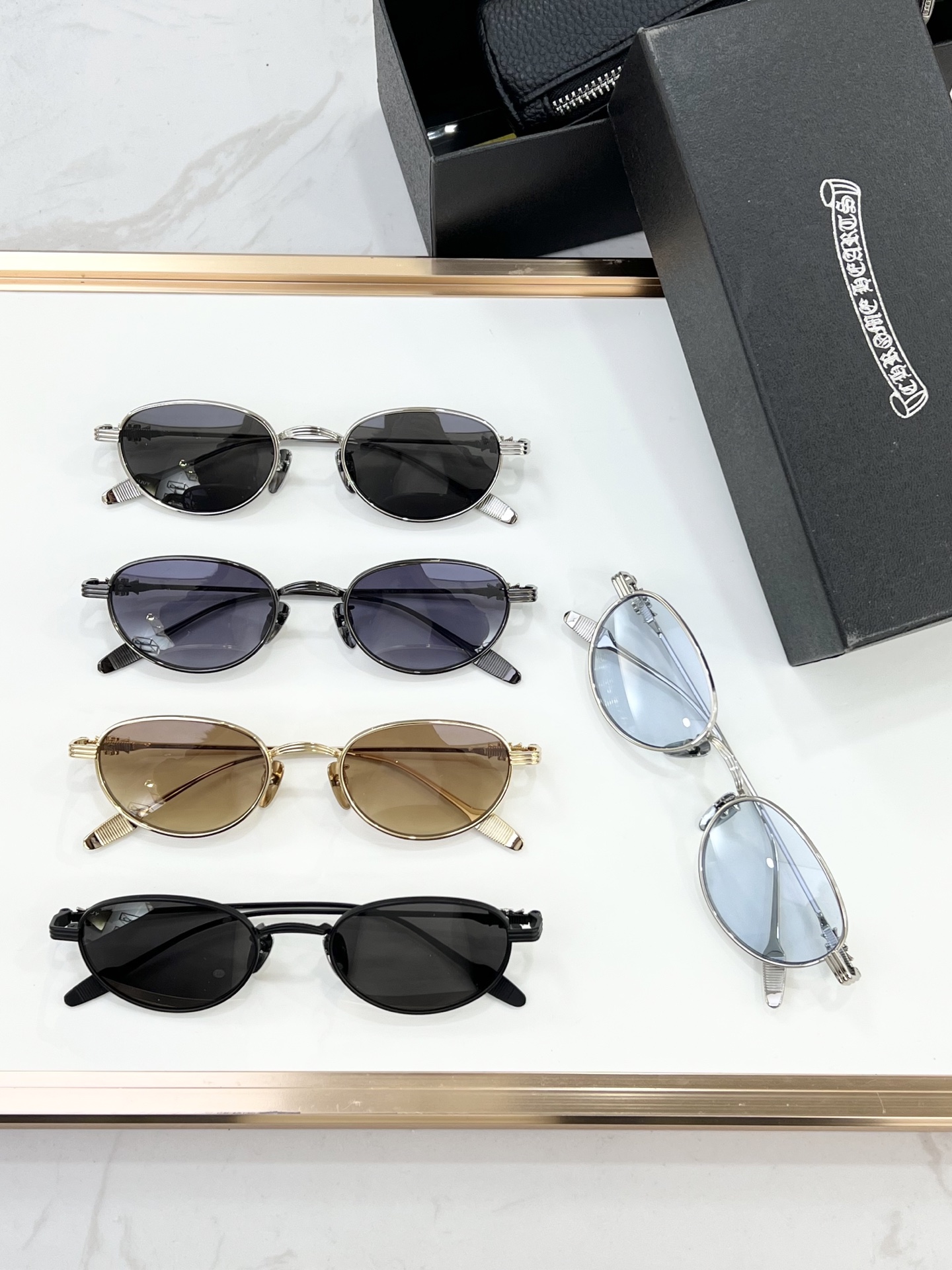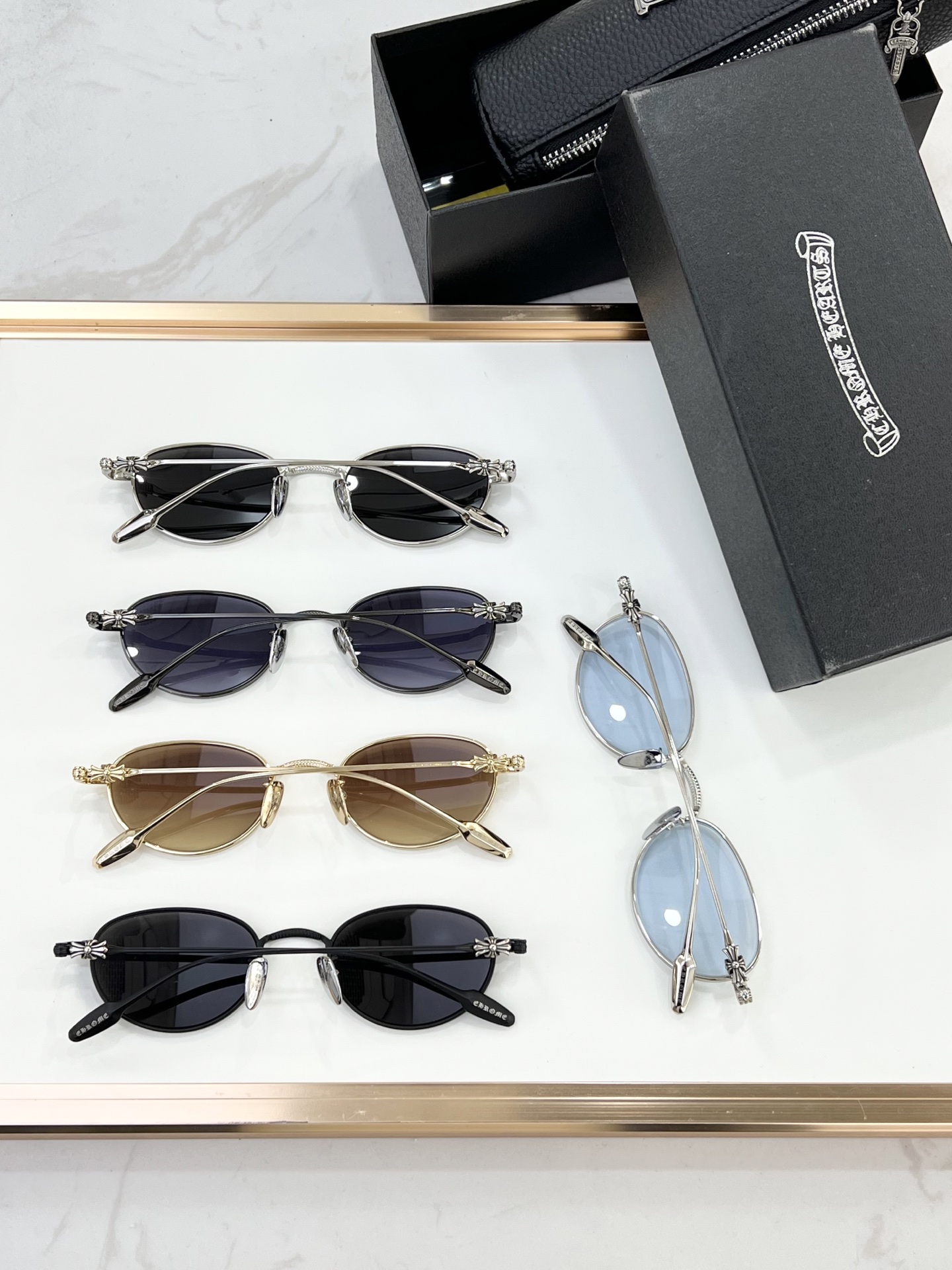 This sunglasses is AAAAA 1:1 quality (superb). Materials used are identical to the original ones. Chrome Hearts trademark marks are indistinguishable to the authentic. Photos take by actual sunglasses, what you receive will be 100% same with our photos.