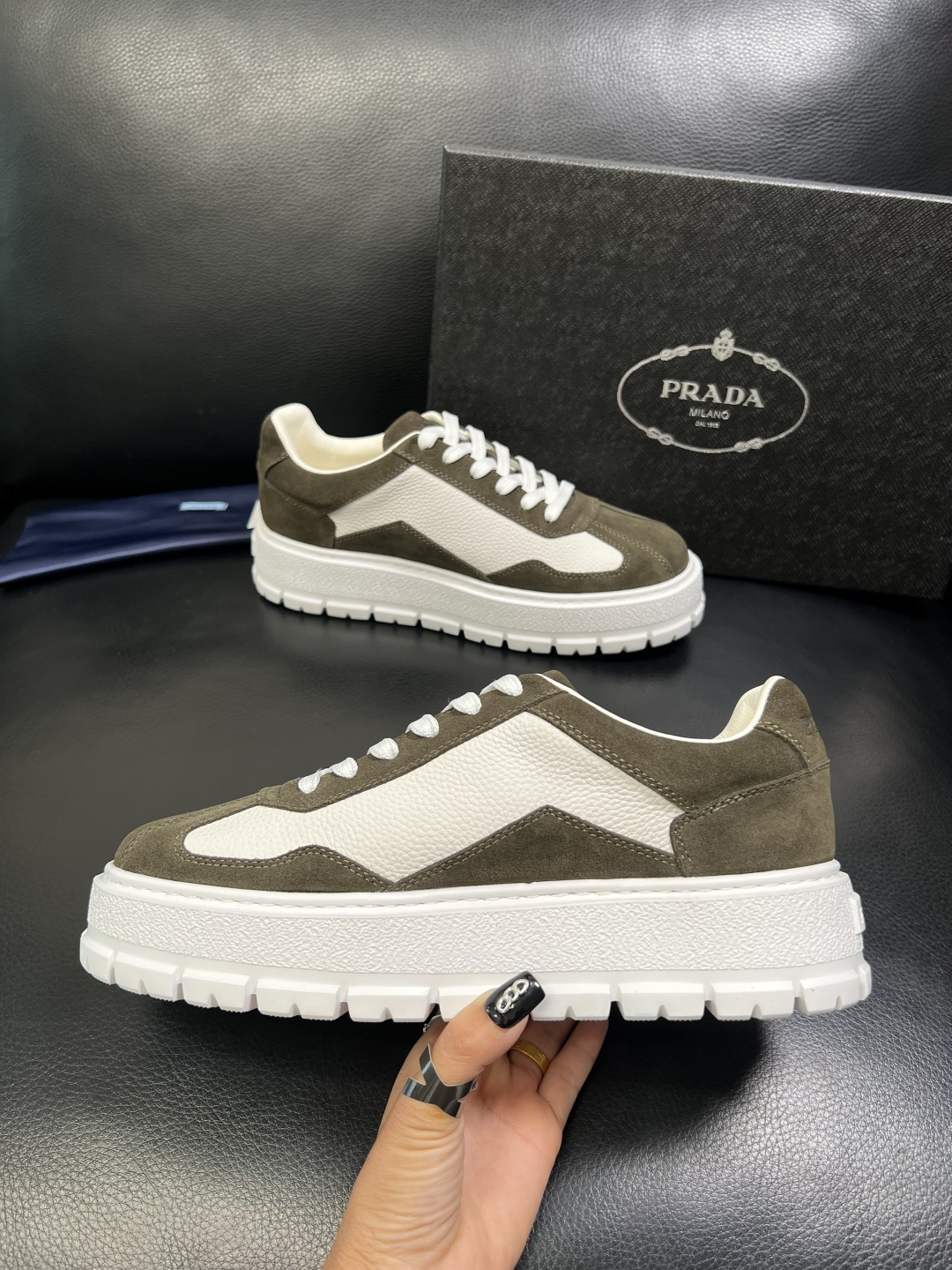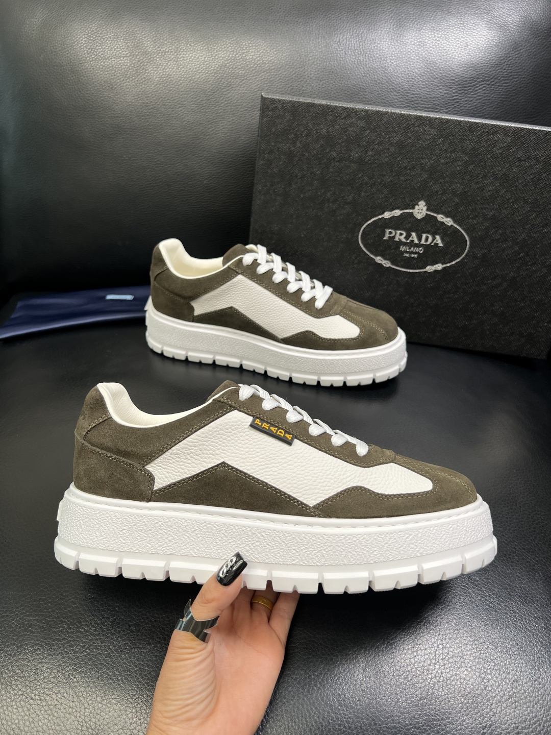 This shoes is AAAAA 1:1 quality (superb). Materials used are identical to the original ones. Prada trademark marks are indistinguishable to the authentic. Photos take by actual shoes, what you receive will be 100% same with our photos.