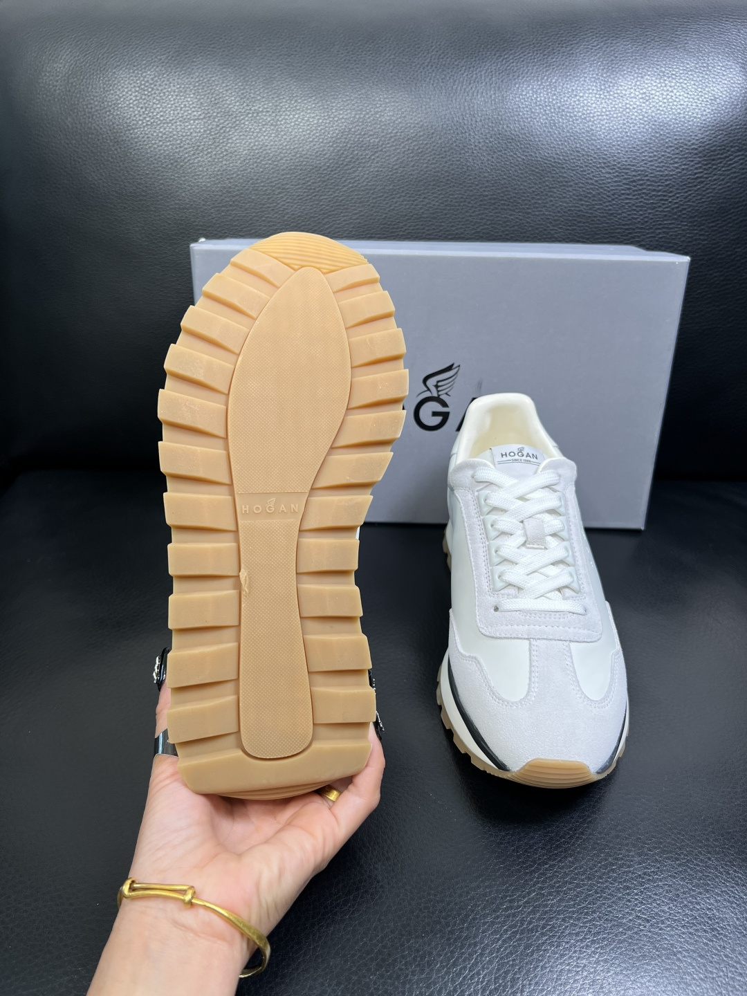 This shoes is AAAAA 1:1 quality (superb). Materials used are identical to the original ones. Hogan trademark marks are indistinguishable to the authentic. Photos take by actual shoes, what you receive will be 100% same with our photos.