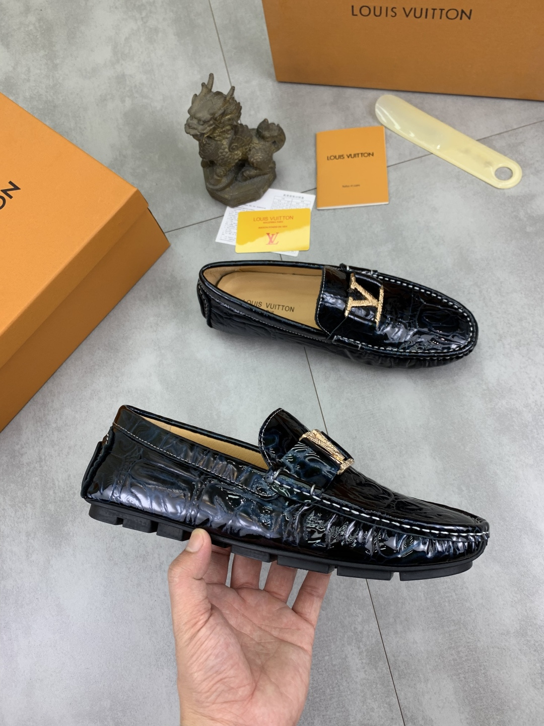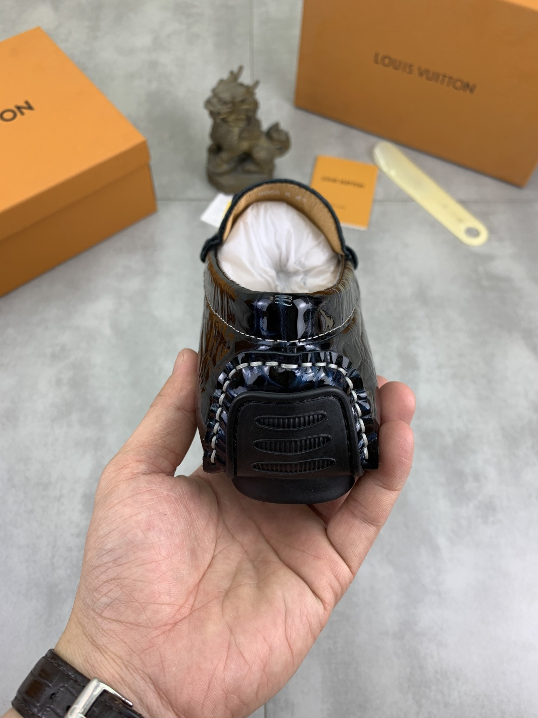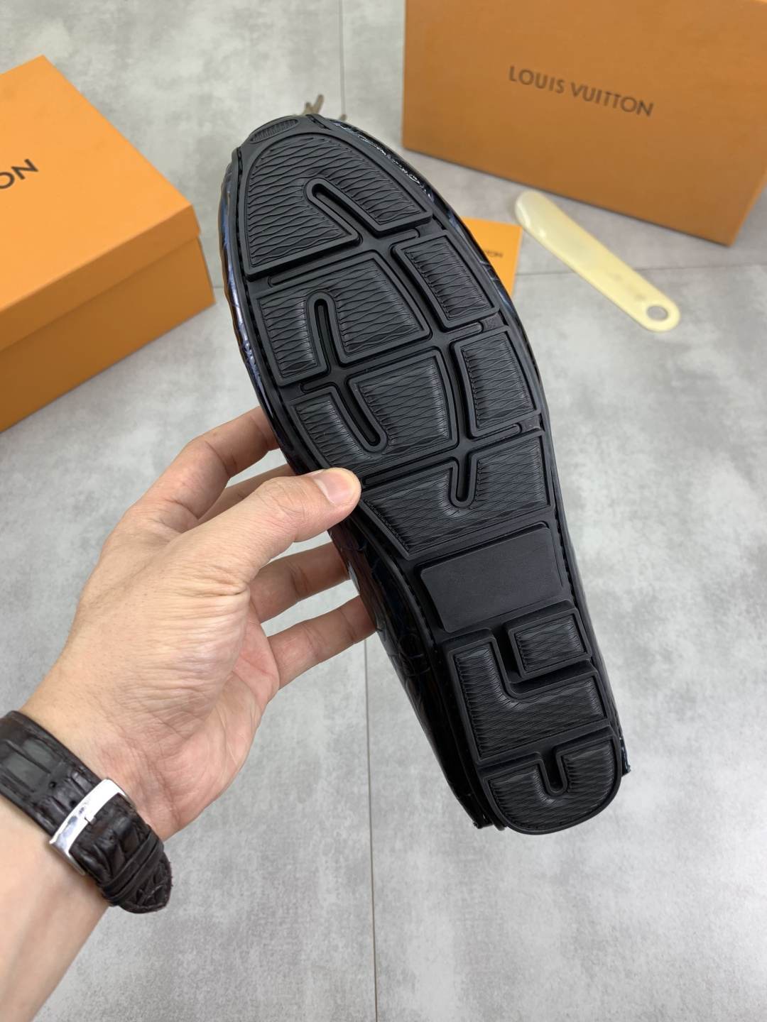 This shoes is AAAAA 1:1 quality (superb). Materials used are identical to the original ones. Louis Vuitton trademark marks are indistinguishable to the authentic. Photos take by actual shoes, what you receive will be 100% same with our photos.