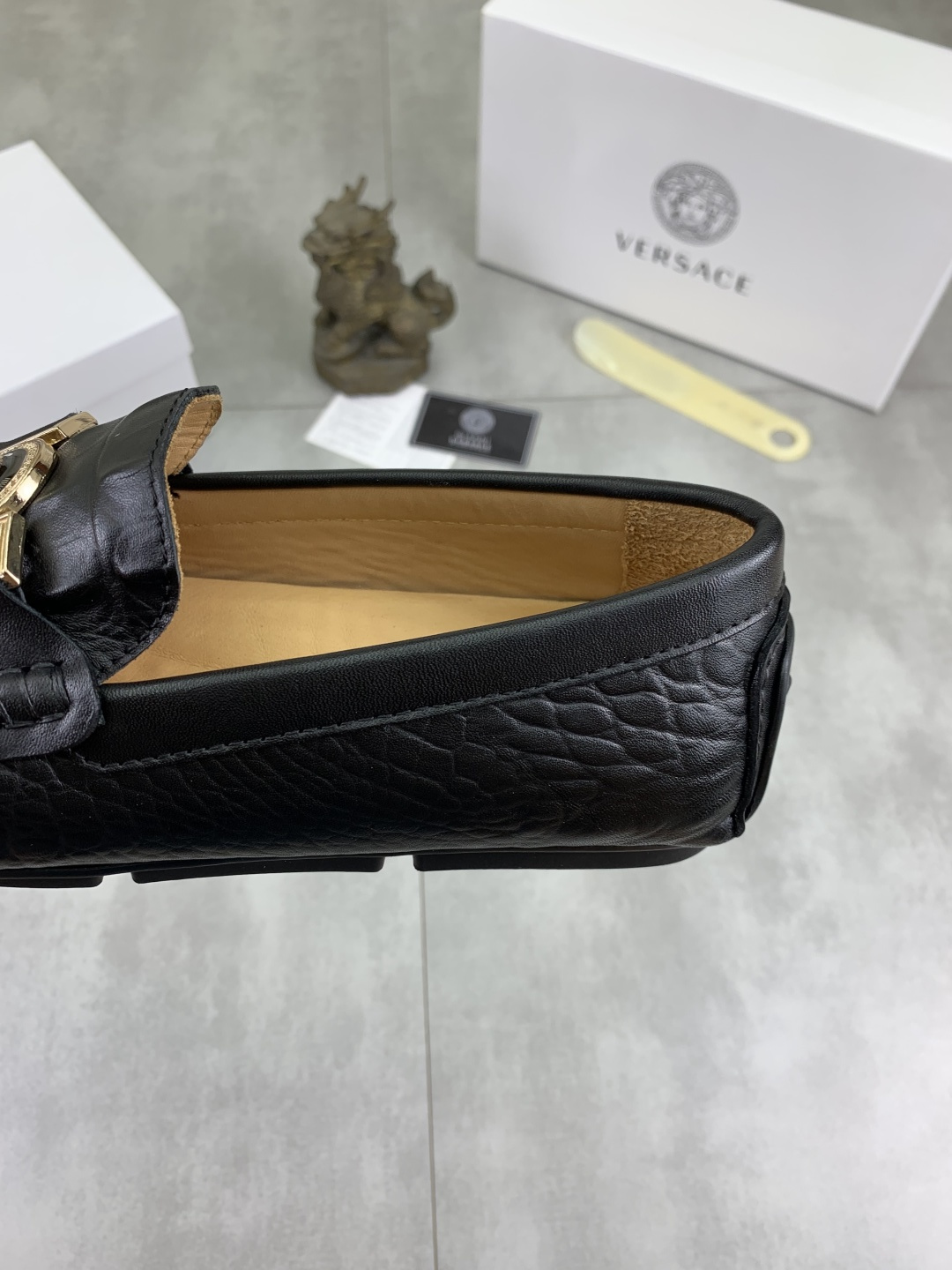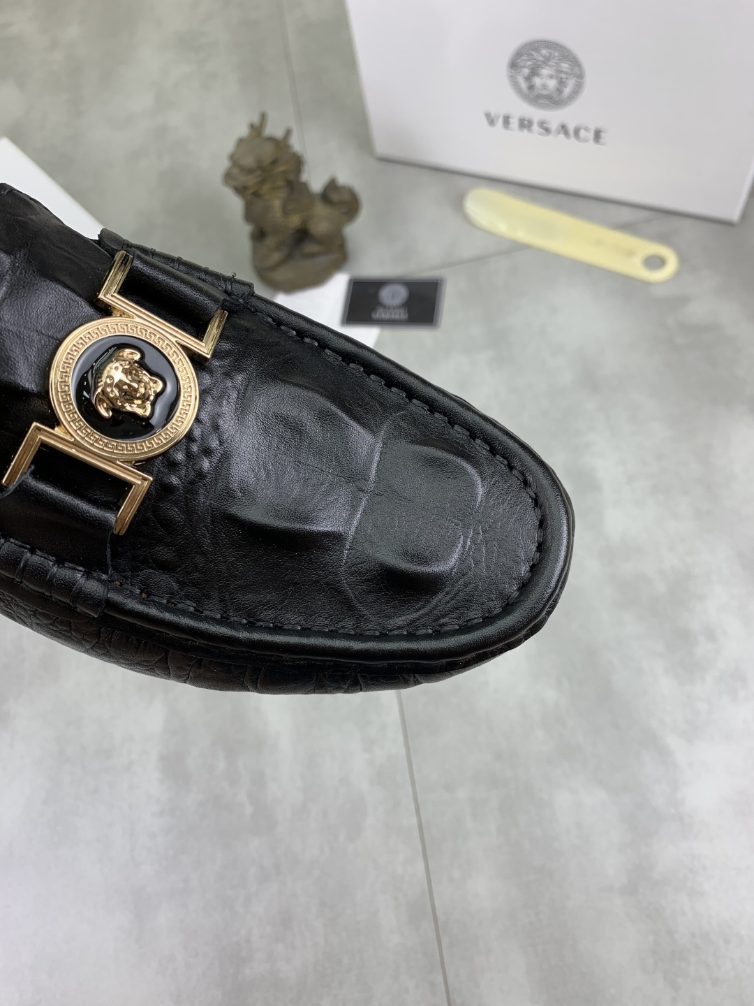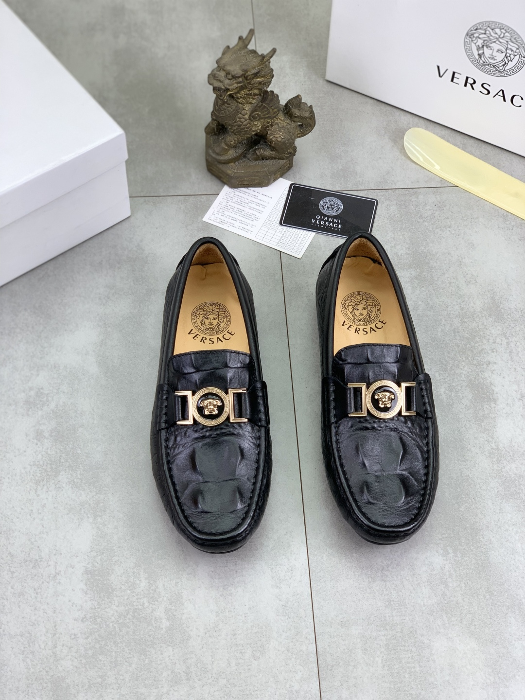 This shoes is AAAAA 1:1 quality (superb). Materials used are identical to the original ones. Versace trademark marks are indistinguishable to the authentic. Photos take by actual shoes, what you receive will be 100% same with our photos.