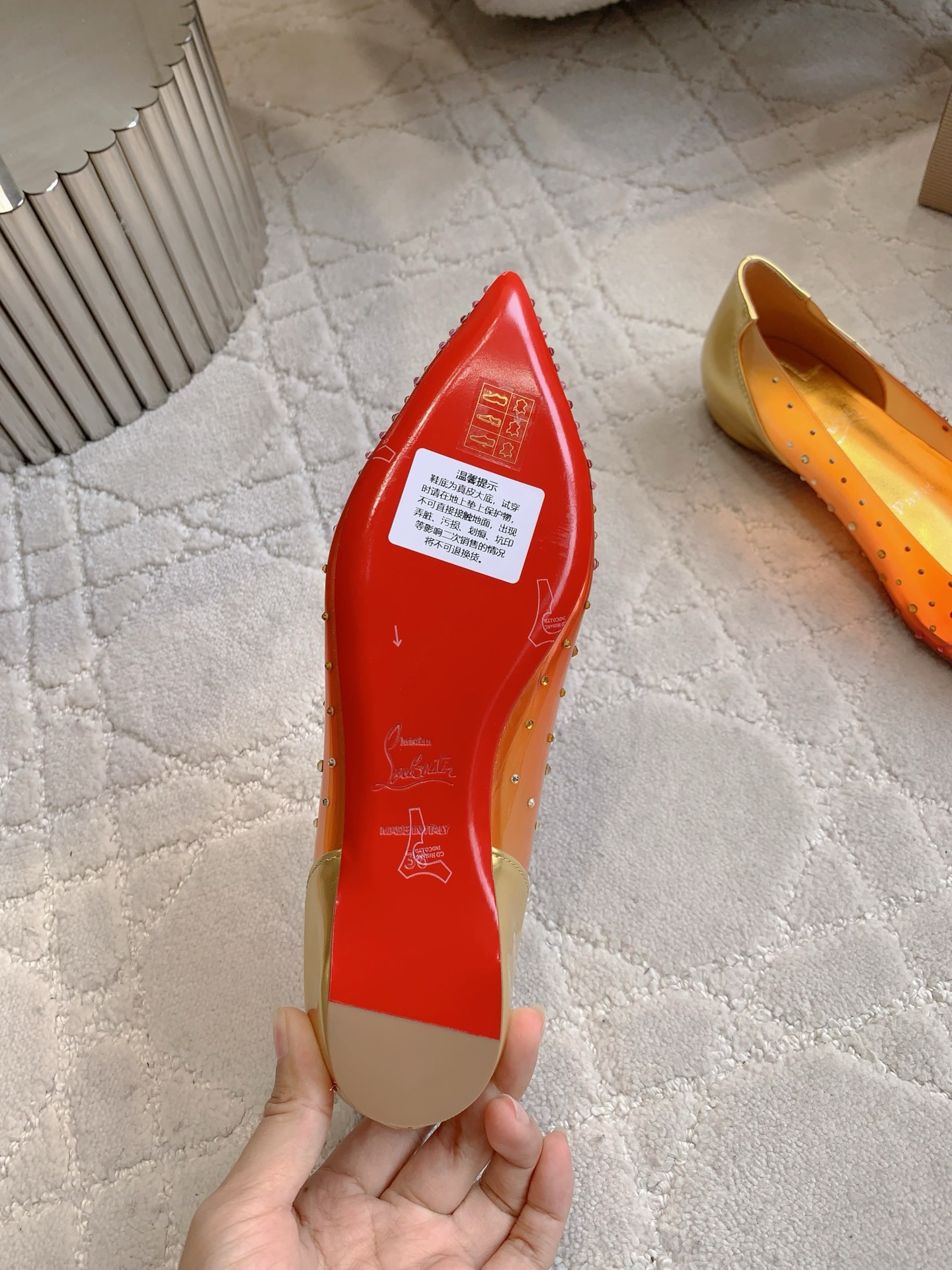 This shoes is AAAAA 1:1 quality (superb). Materials used are identical to the original ones. Stephane Christian trademark marks are indistinguishable to the authentic. Photos take by actual shoes, what you receive will be 100% same with our photos.