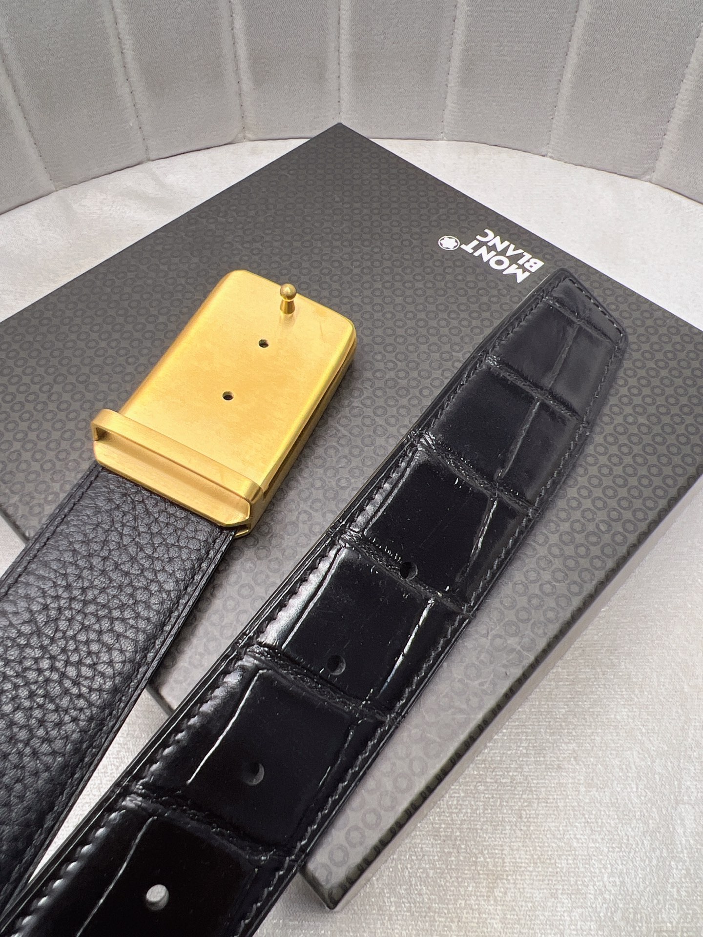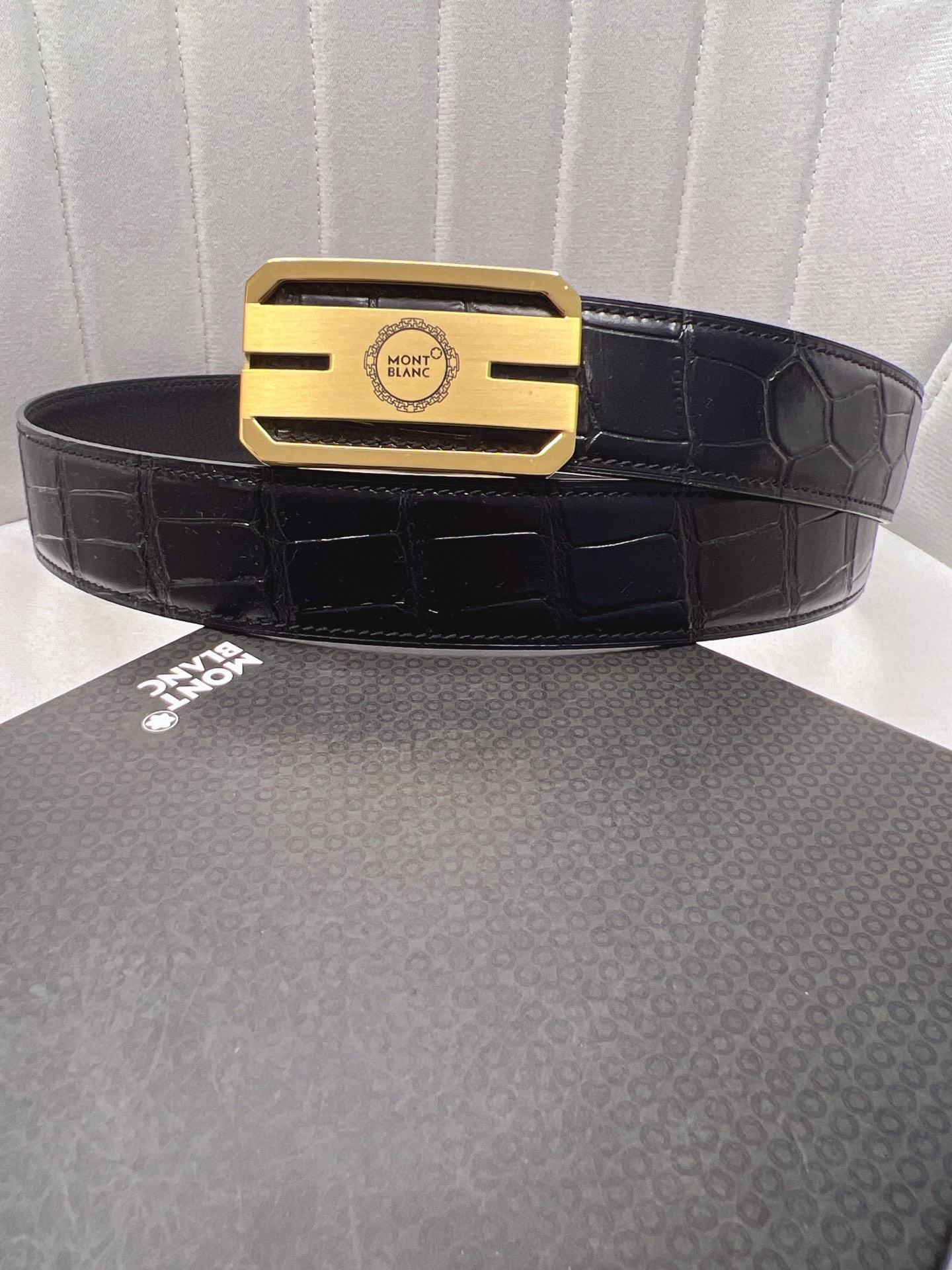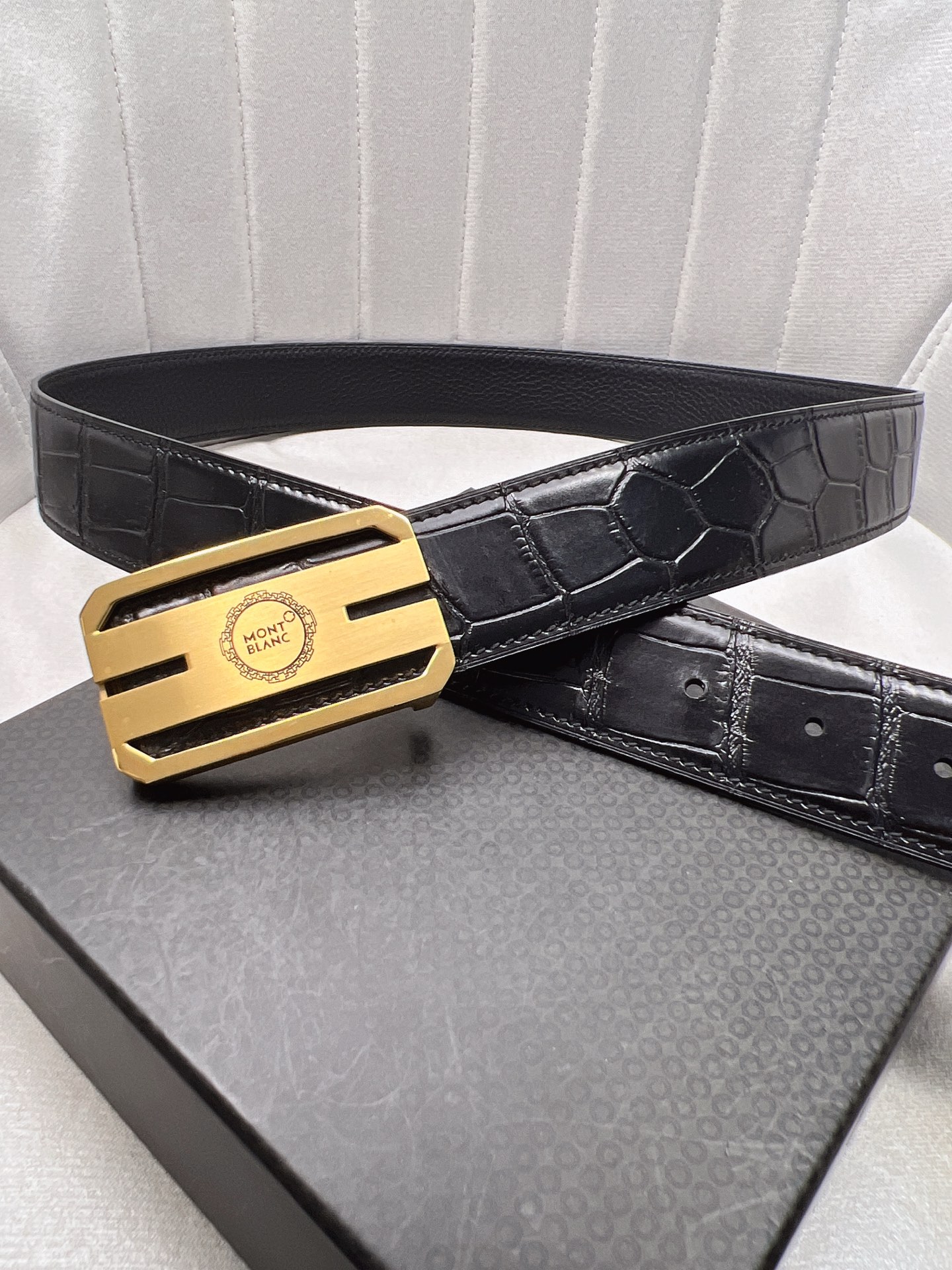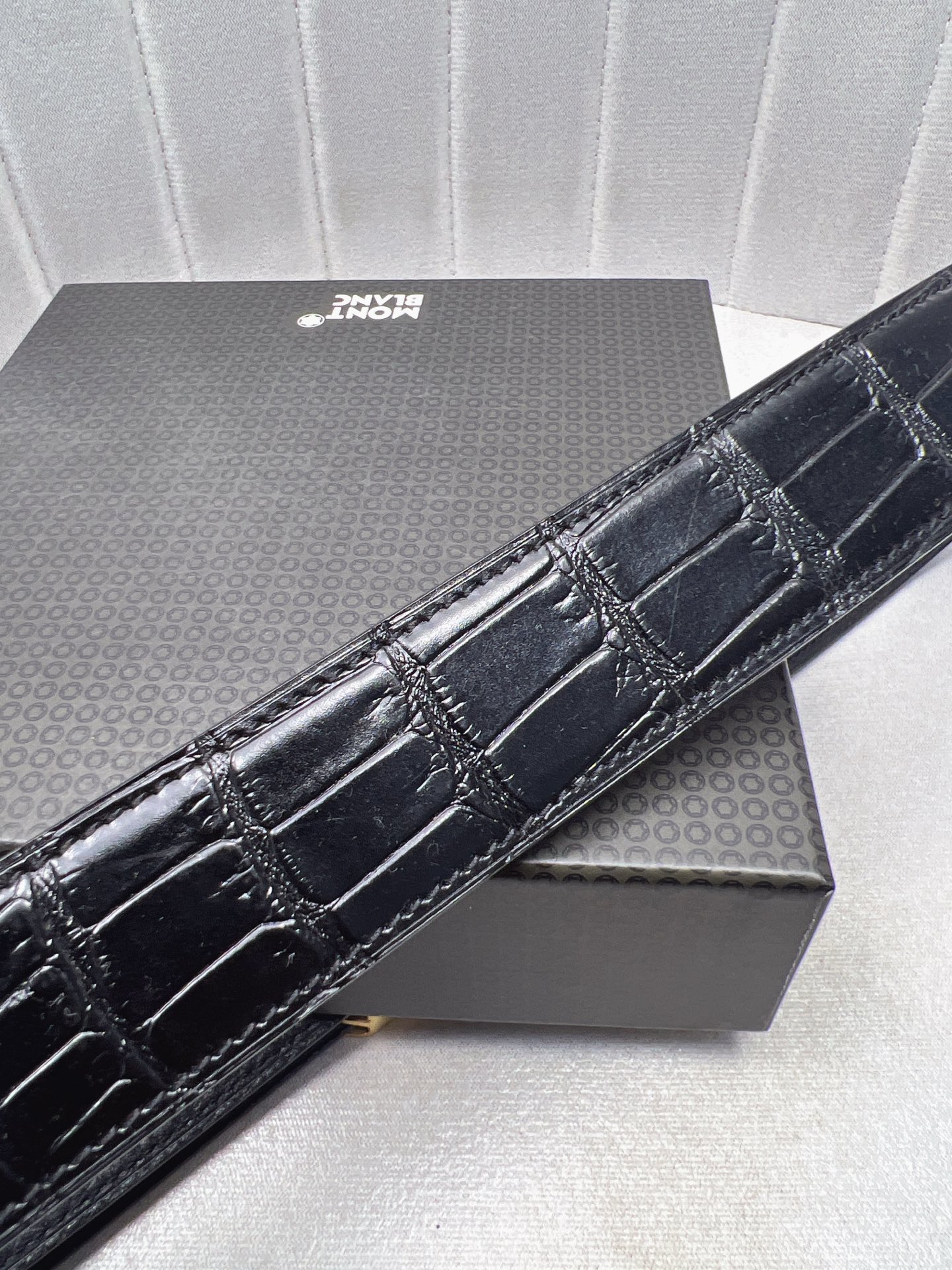 This belt is AAAAA 1:1 quality (superb). Materials used are identical to the original ones. Montblanc trademark marks are indistinguishable to the authentic. Photos take by actual belt, what you receive will be 100% same with our photos.