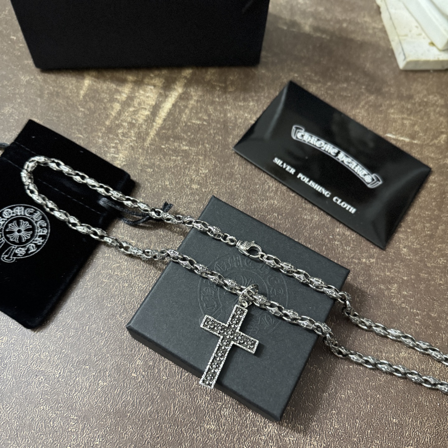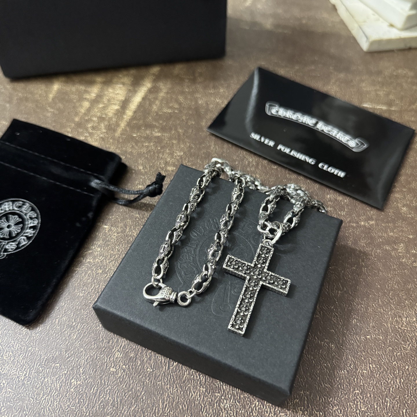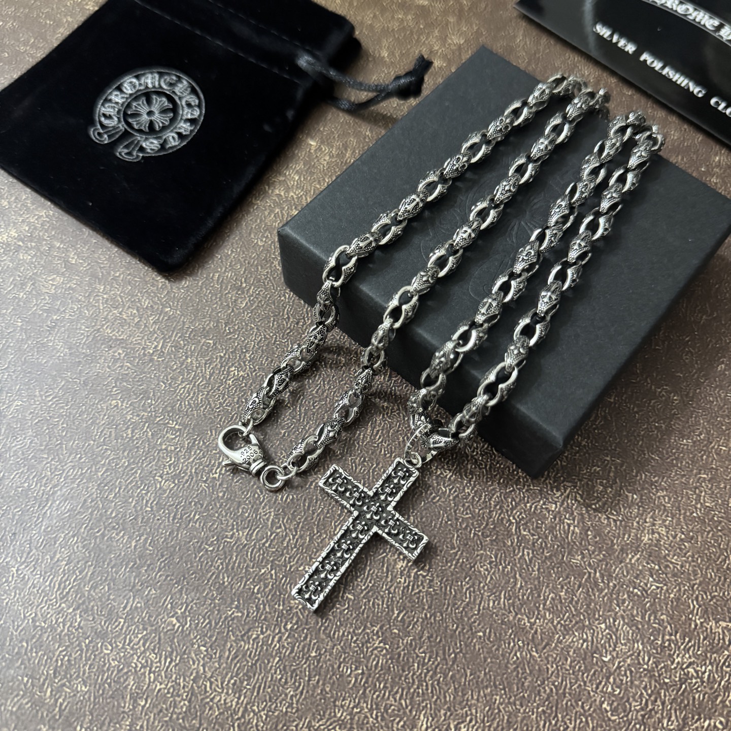 This jewelry is AAAAA 1:1 quality (superb). Materials used are identical to the original ones. Chrome Hearts trademark marks are indistinguishable to the authentic. Photos take by actual jewelry, what you receive will be 100% same with our photos.