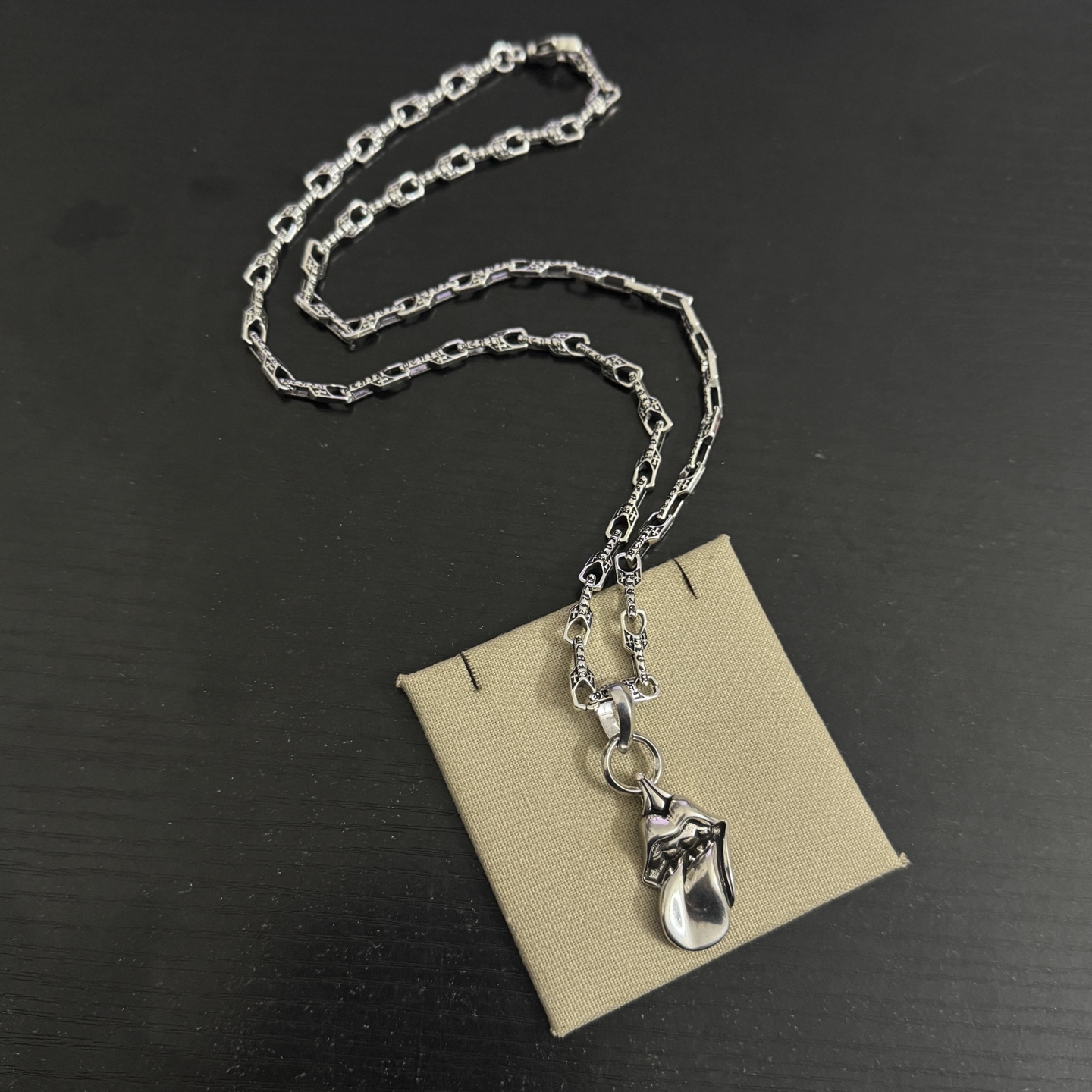 NO:4142841. The jewelry is from Chrome Hearts designer.