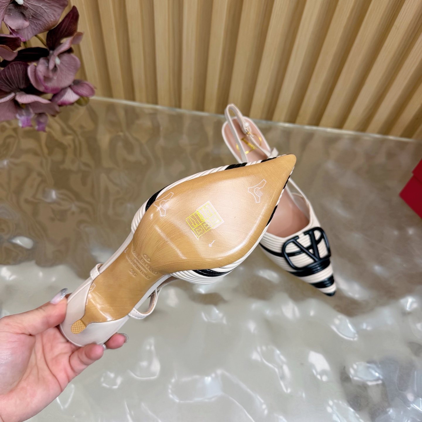 This shoes is AAAAA 1:1 quality (superb). Materials used are identical to the original ones. Valentino trademark marks are indistinguishable to the authentic. Photos take by actual shoes, what you receive will be 100% same with our photos.