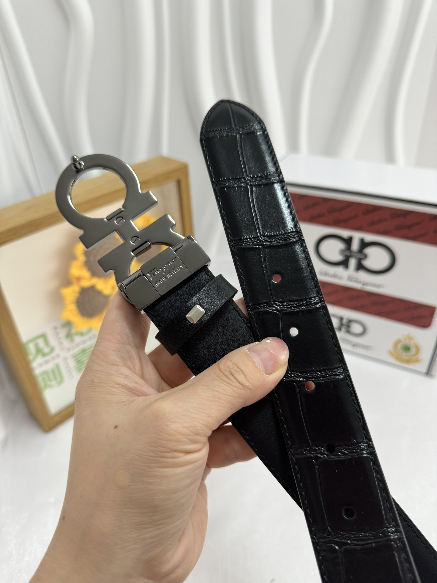 This belt is AAAAA 1:1 quality (superb). Materials used are identical to the original ones. Salvatore Ferragamo trademark marks are indistinguishable to the authentic. Photos take by actual belt, what you receive will be 100% same with our photos.