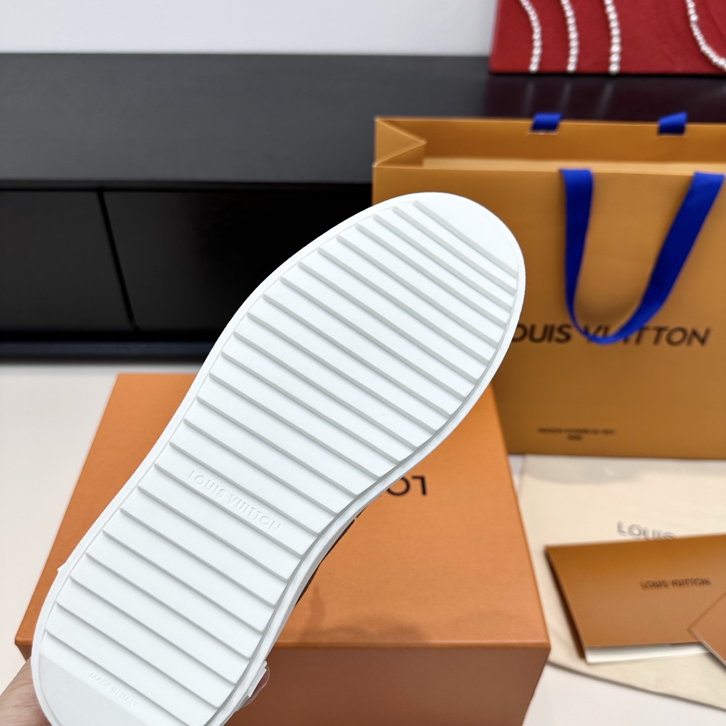 This shoes is AAAAA 1:1 quality (superb). Materials used are identical to the original ones. Louis Vuitton trademark marks are indistinguishable to the authentic. Photos take by actual shoes, what you receive will be 100% same with our photos.