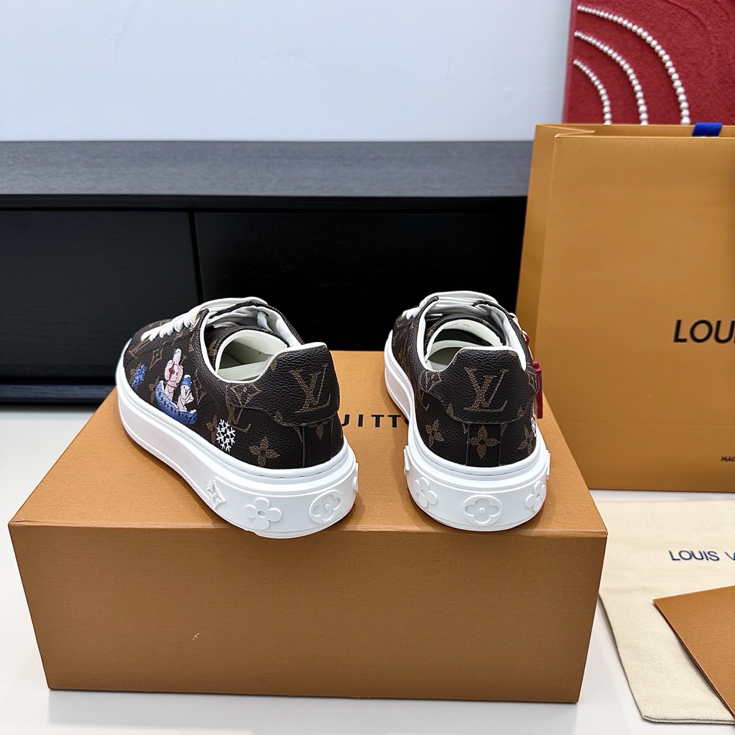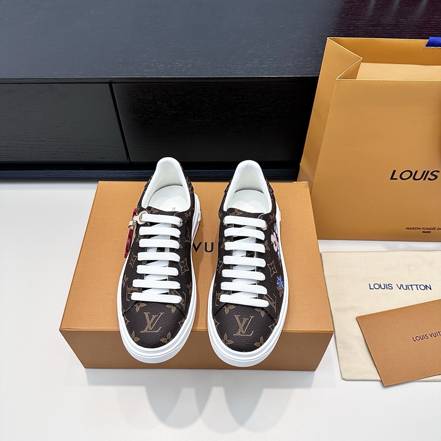This shoes is AAAAA 1:1 quality (superb). Materials used are identical to the original ones. Louis Vuitton trademark marks are indistinguishable to the authentic. Photos take by actual shoes, what you receive will be 100% same with our photos.