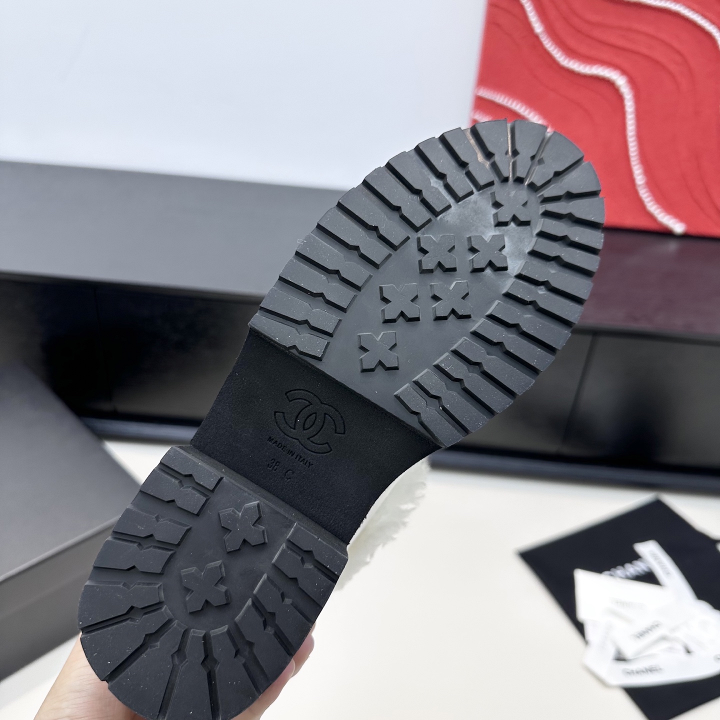 This shoes is AAAAA 1:1 quality (superb). Materials used are identical to the original ones. Chanel trademark marks are indistinguishable to the authentic. Photos take by actual shoes, what you receive will be 100% same with our photos.