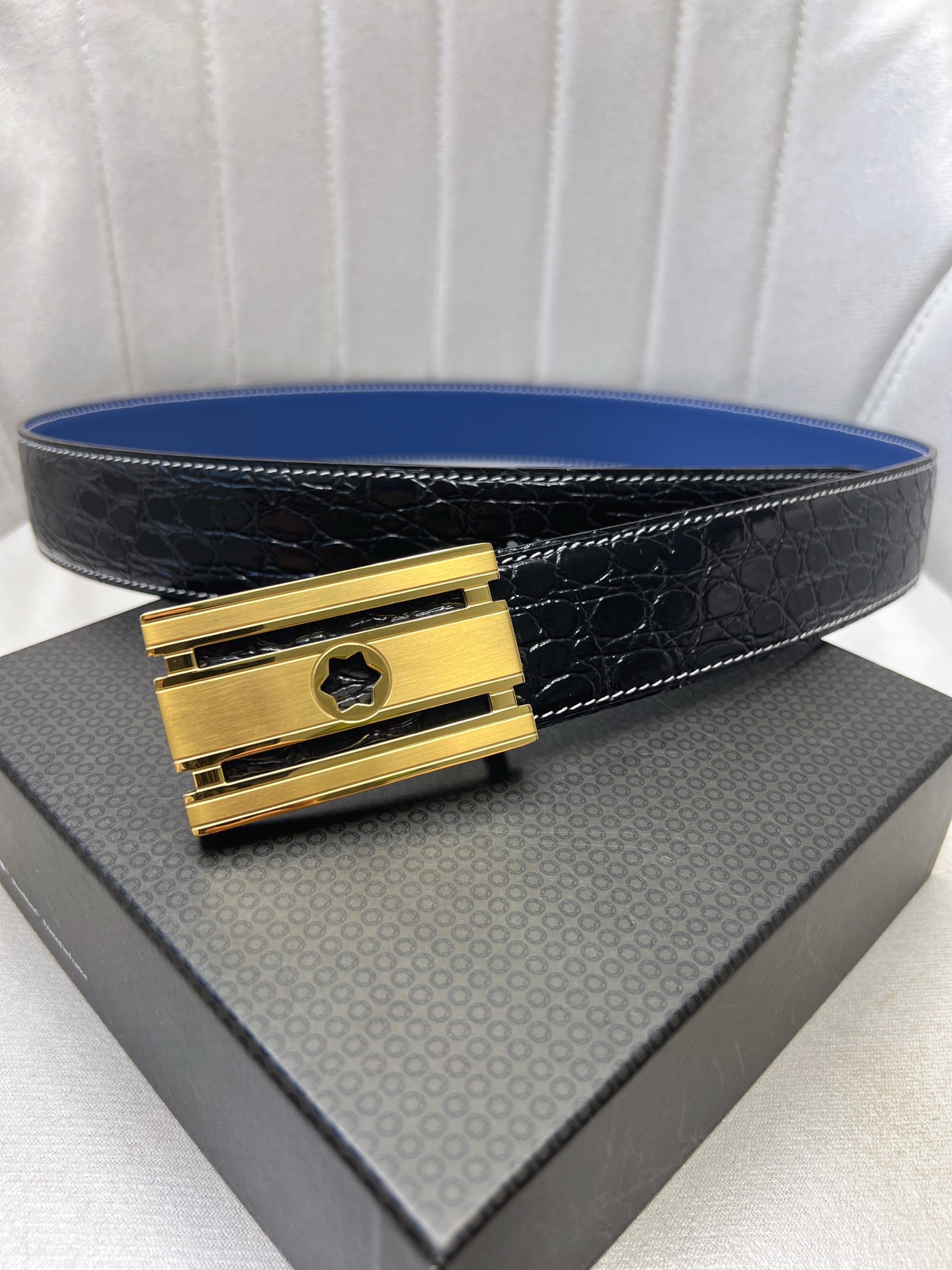 This belt is AAAAA 1:1 quality (superb). Materials used are identical to the original ones. Montblanc trademark marks are indistinguishable to the authentic. Photos take by actual belt, what you receive will be 100% same with our photos.