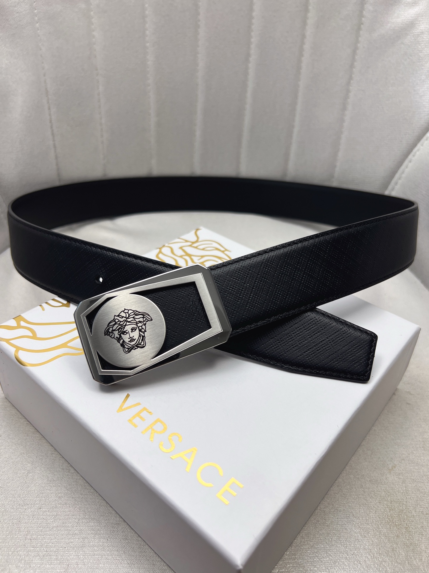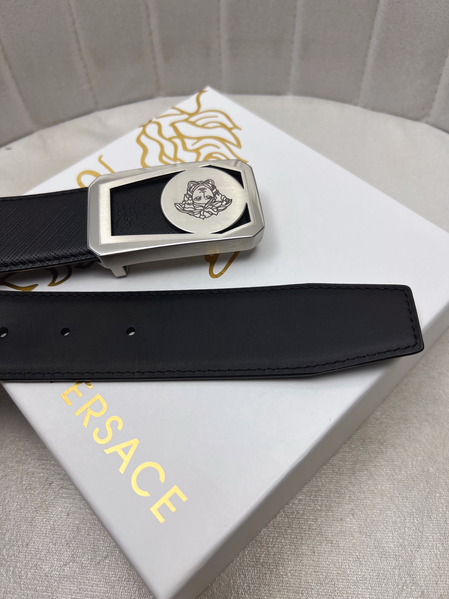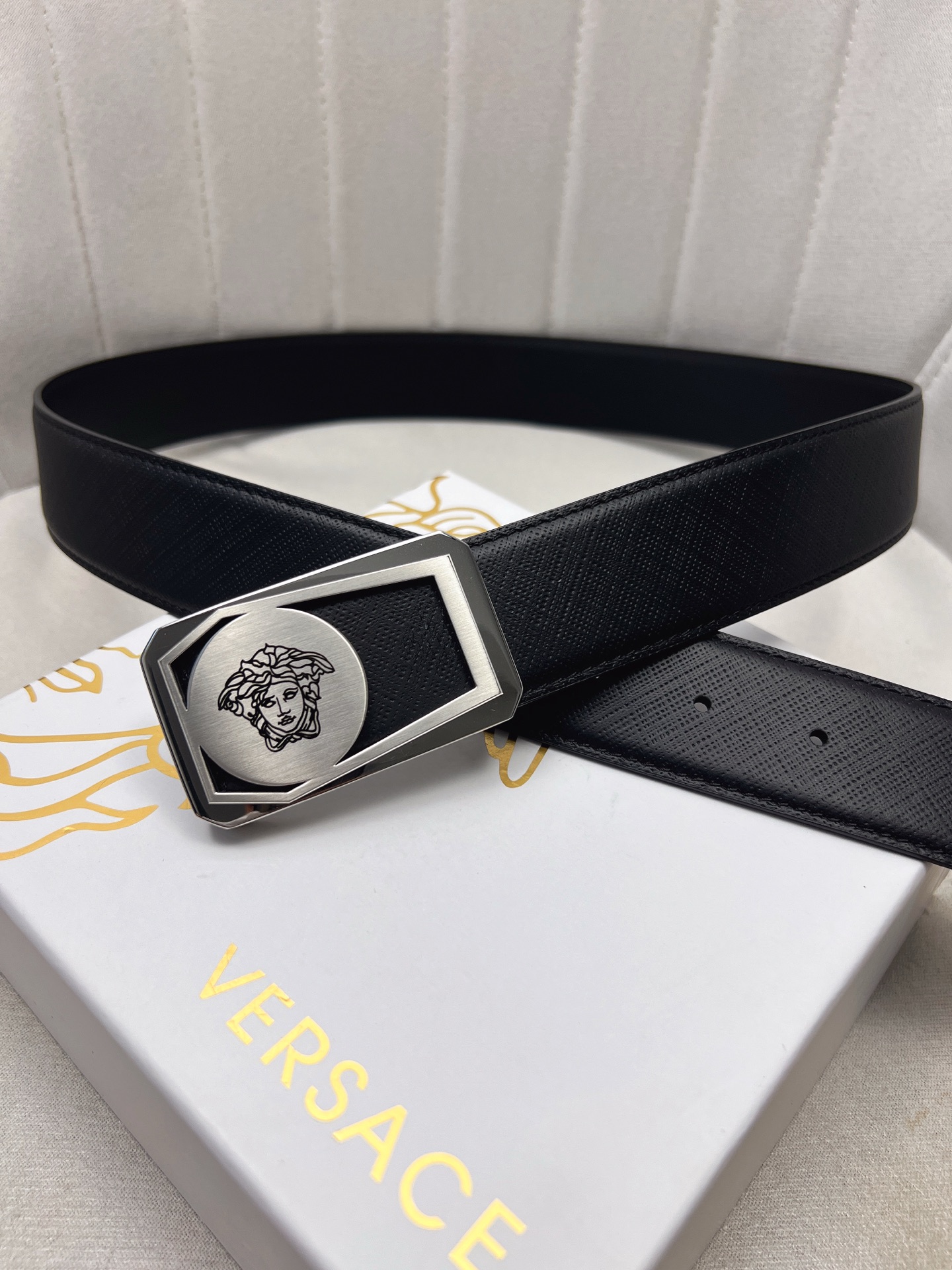 This belt is AAAAA 1:1 quality (superb). Materials used are identical to the original ones. Versace trademark marks are indistinguishable to the authentic. Photos take by actual belt, what you receive will be 100% same with our photos.