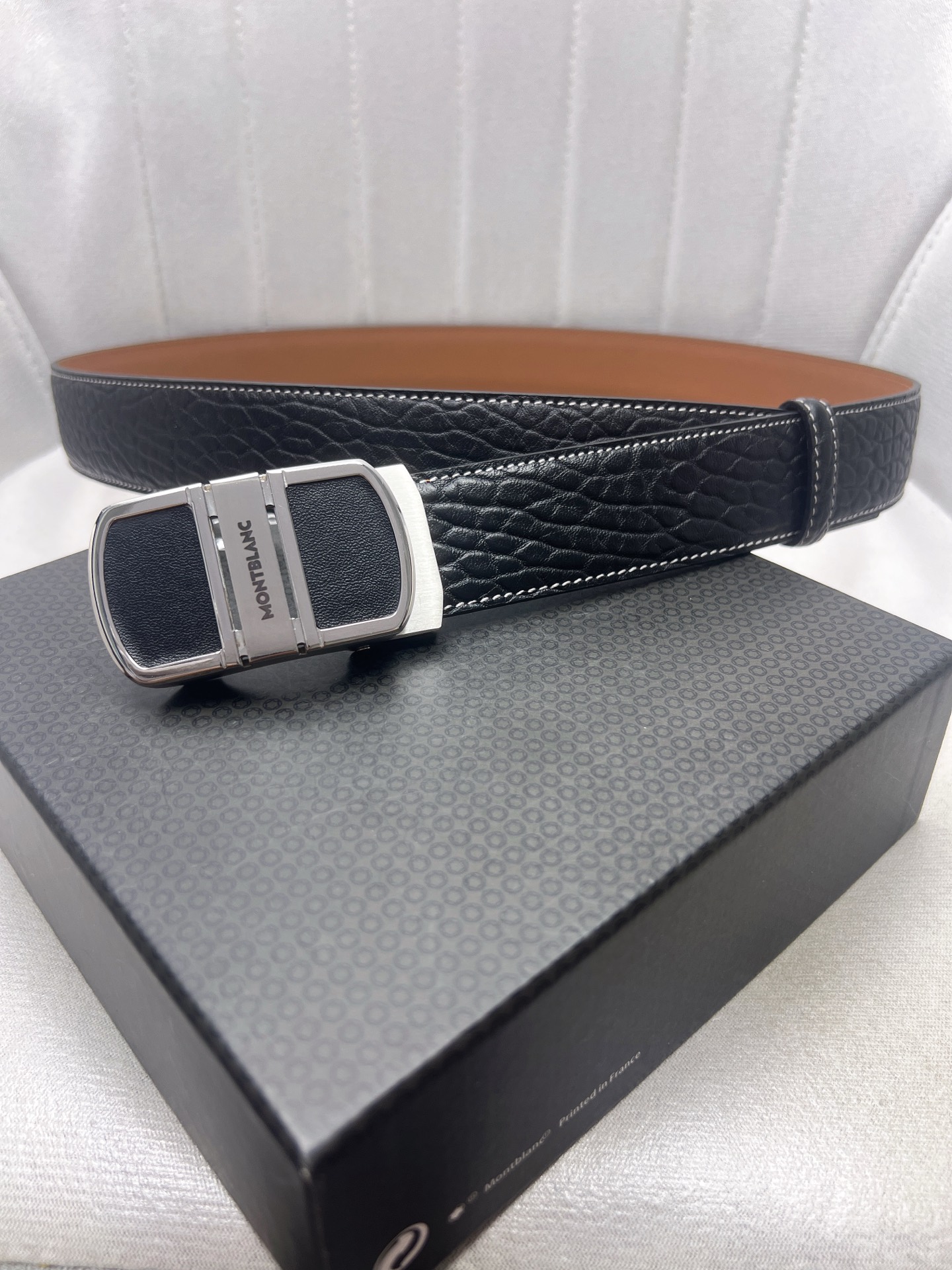 This belt is AAAAA 1:1 quality (superb). Materials used are identical to the original ones. Montblanc trademark marks are indistinguishable to the authentic. Photos take by actual belt, what you receive will be 100% same with our photos.