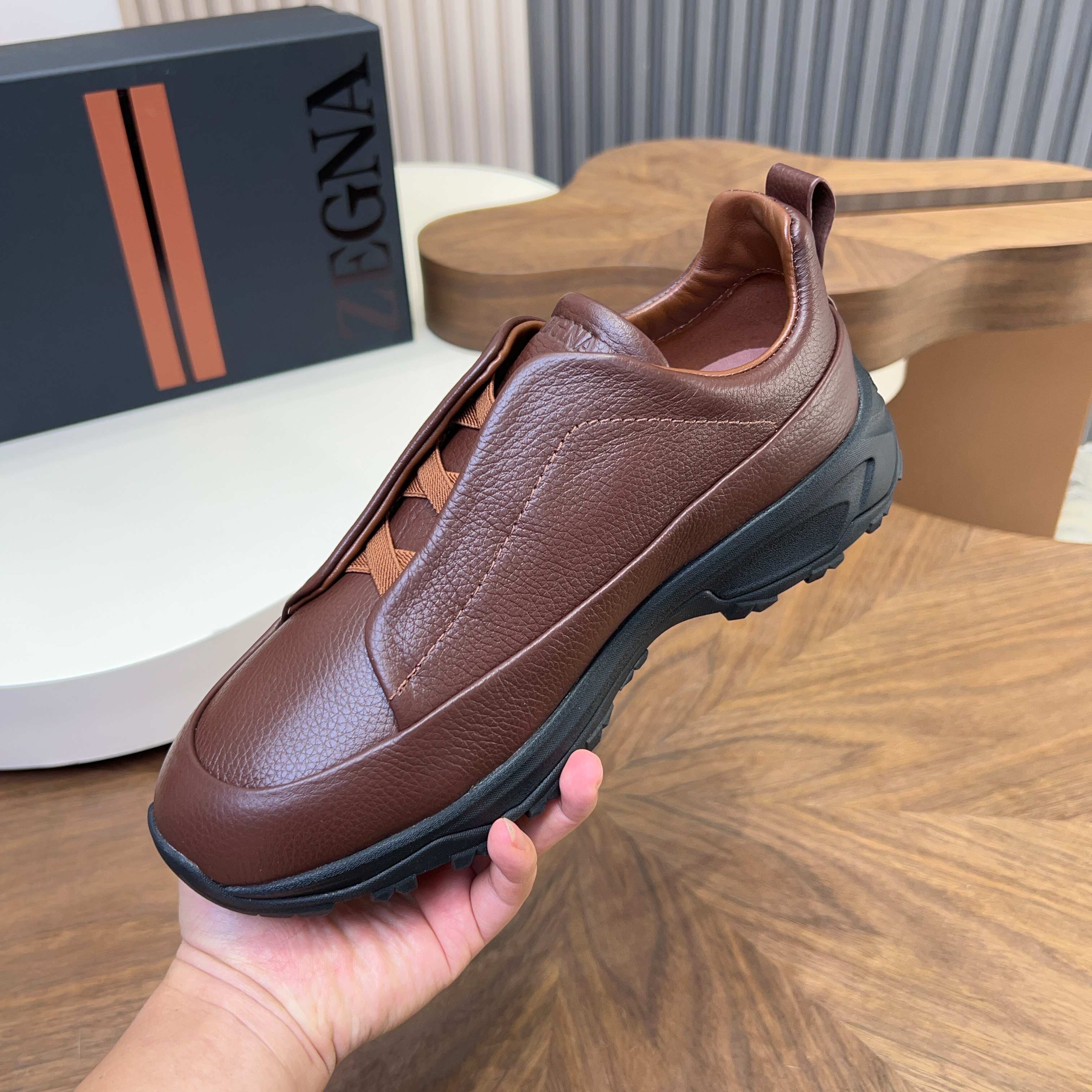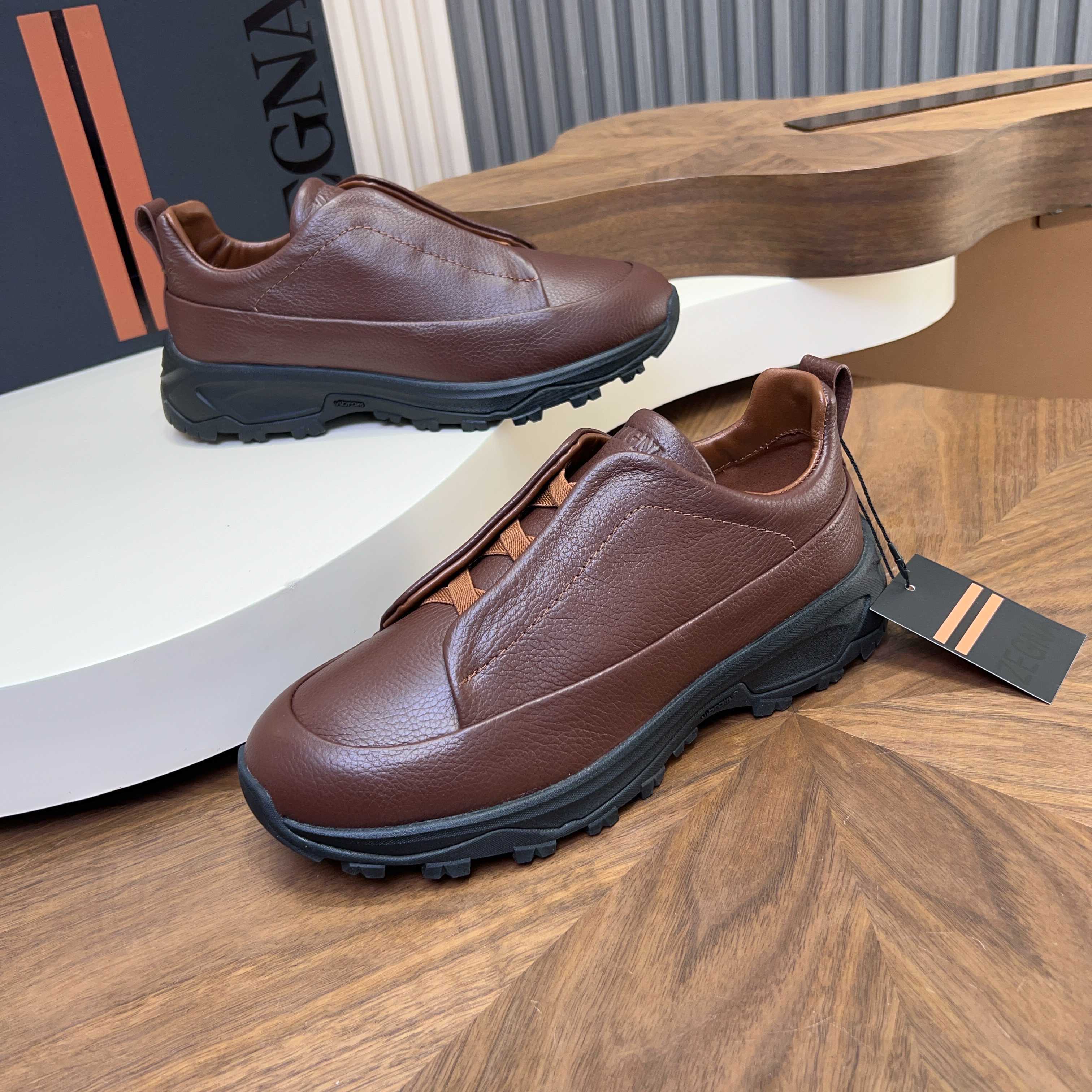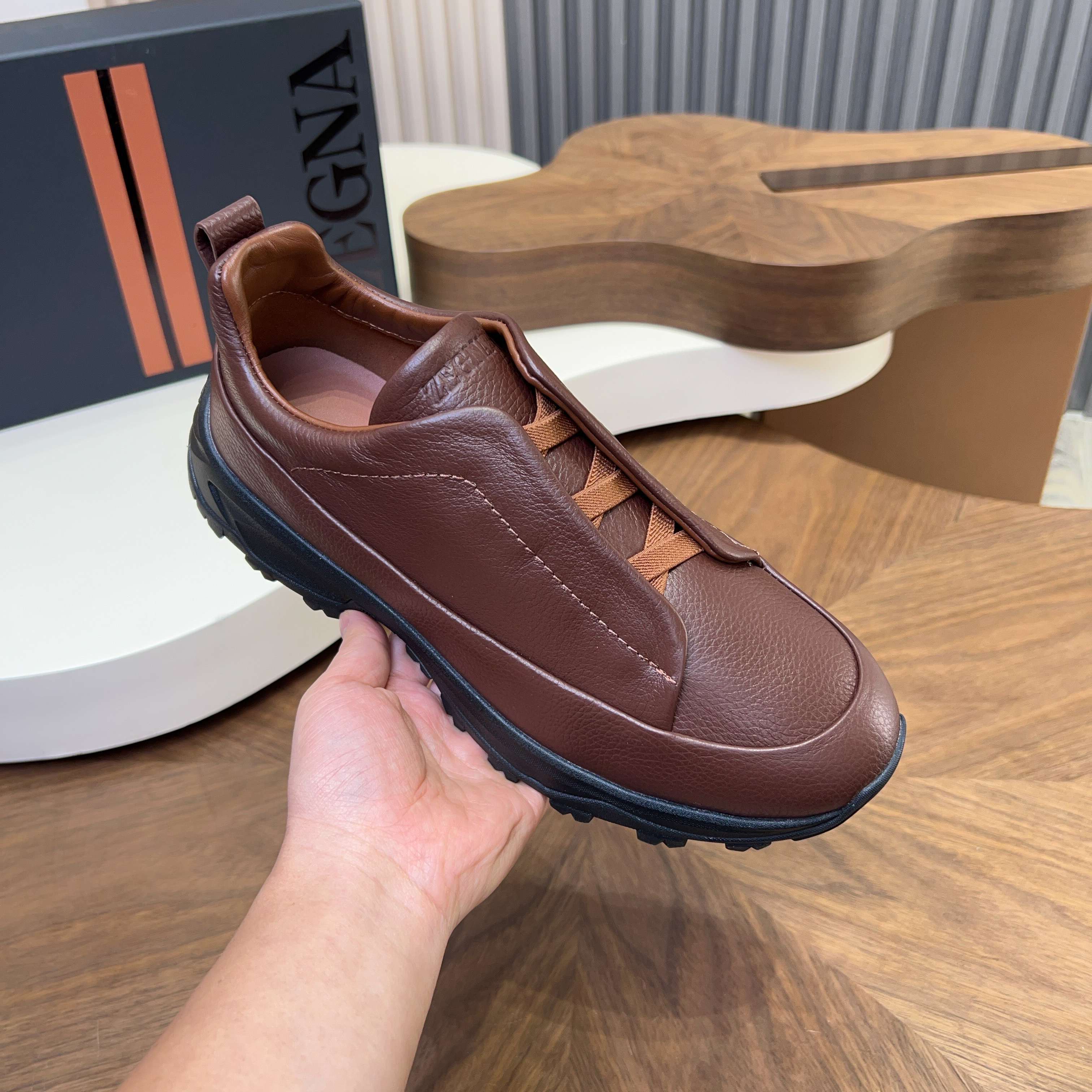 This shoes is AAAAA 1:1 quality (superb). Materials used are identical to the original ones. Zegna trademark marks are indistinguishable to the authentic. Photos take by actual shoes, what you receive will be 100% same with our photos.