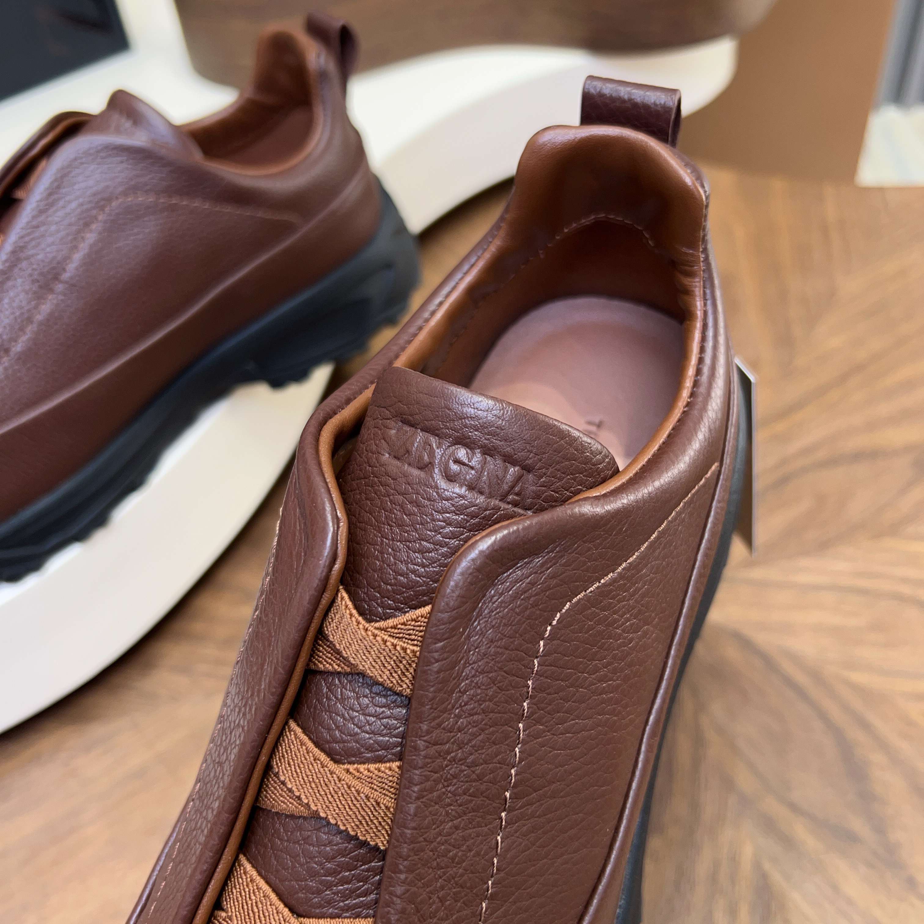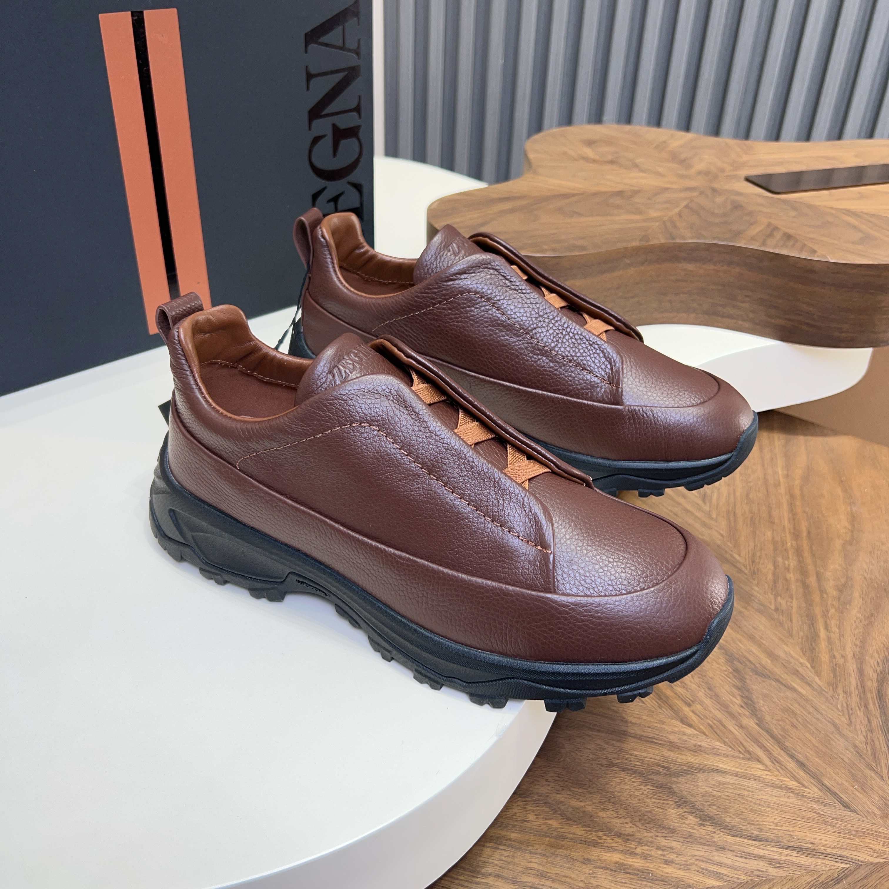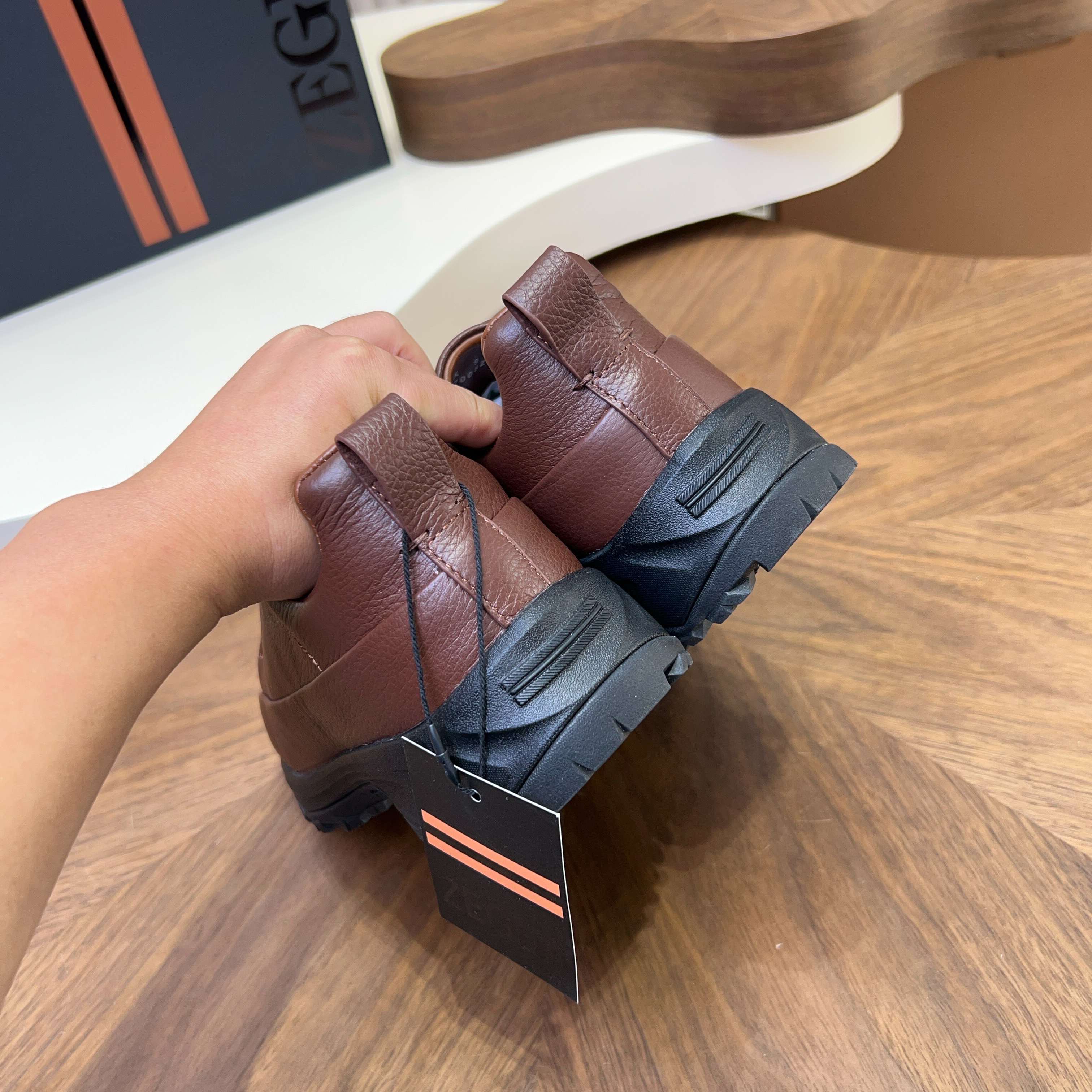 This shoes is AAAAA 1:1 quality (superb). Materials used are identical to the original ones. Zegna trademark marks are indistinguishable to the authentic. Photos take by actual shoes, what you receive will be 100% same with our photos.
