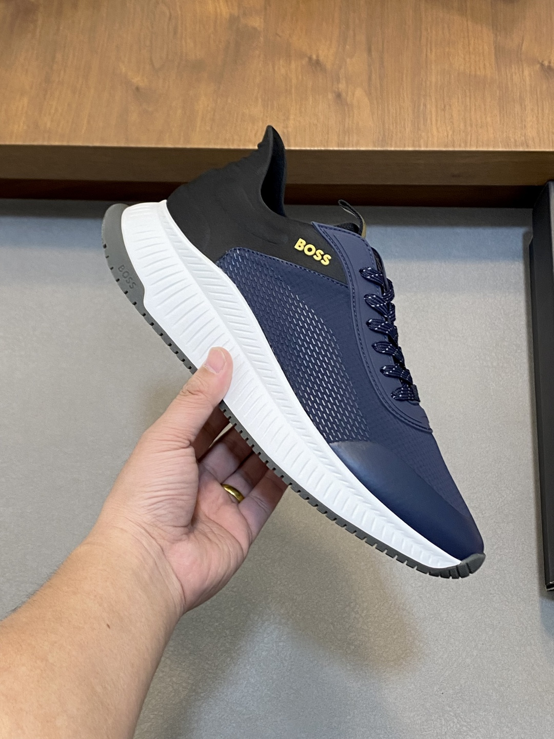 This shoes is AAAAA 1:1 quality (superb). Materials used are identical to the original ones. BOSS trademark marks are indistinguishable to the authentic. Photos take by actual shoes, what you receive will be 100% same with our photos.