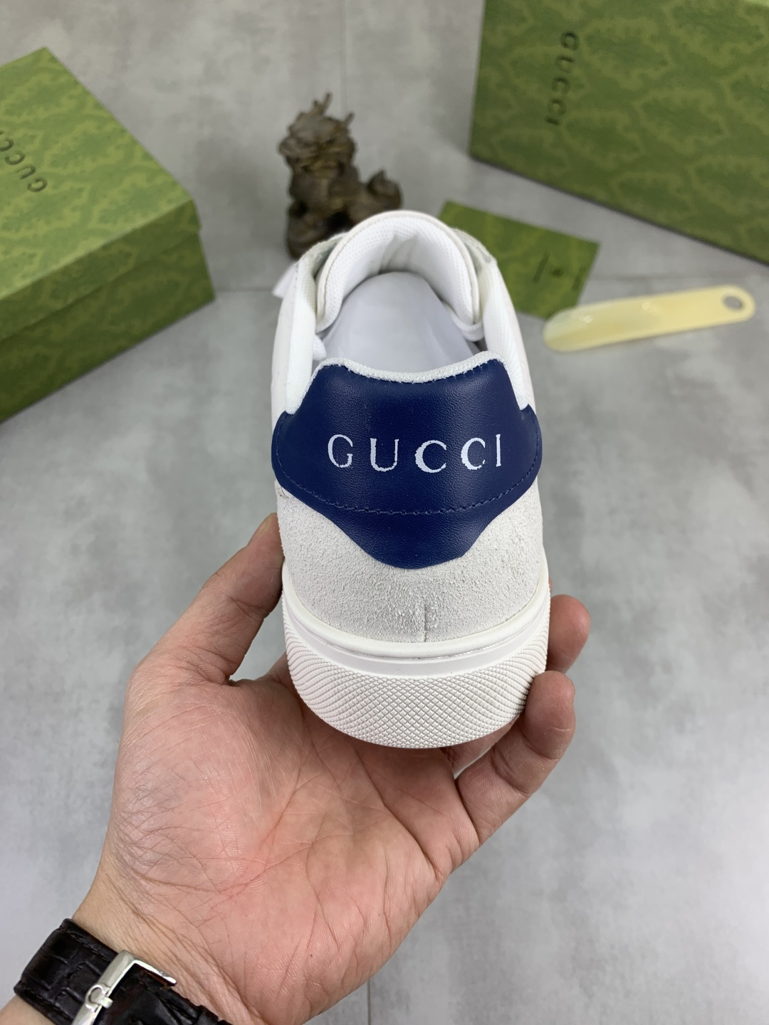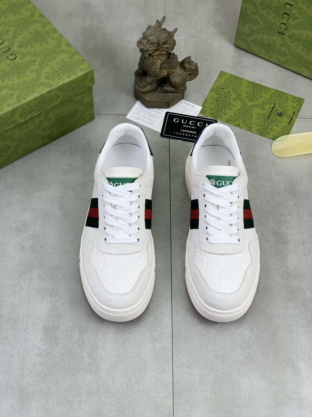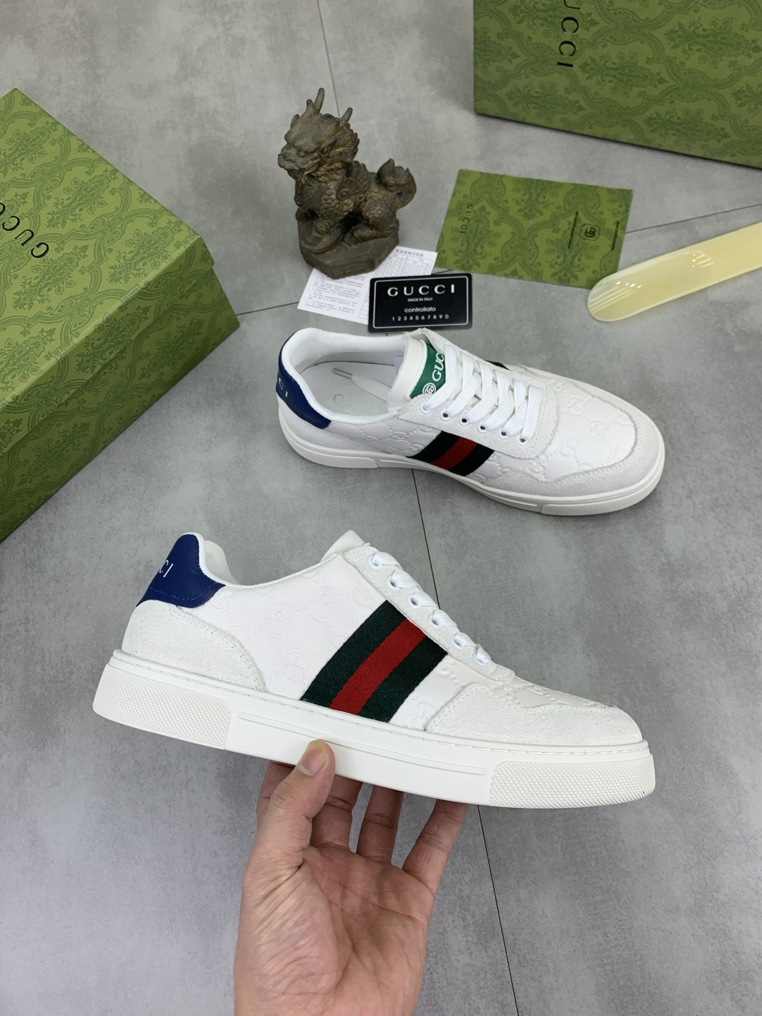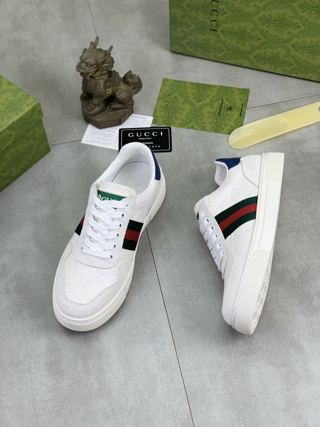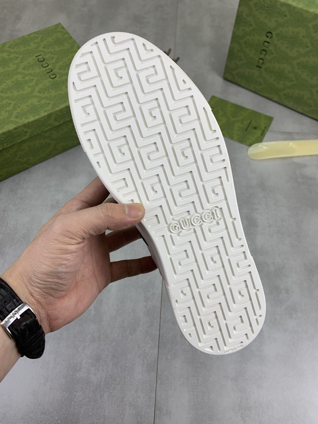 This shoes is AAAAA 1:1 quality (superb). Materials used are identical to the original ones. Gucci trademark marks are indistinguishable to the authentic. Photos take by actual shoes, what you receive will be 100% same with our photos.