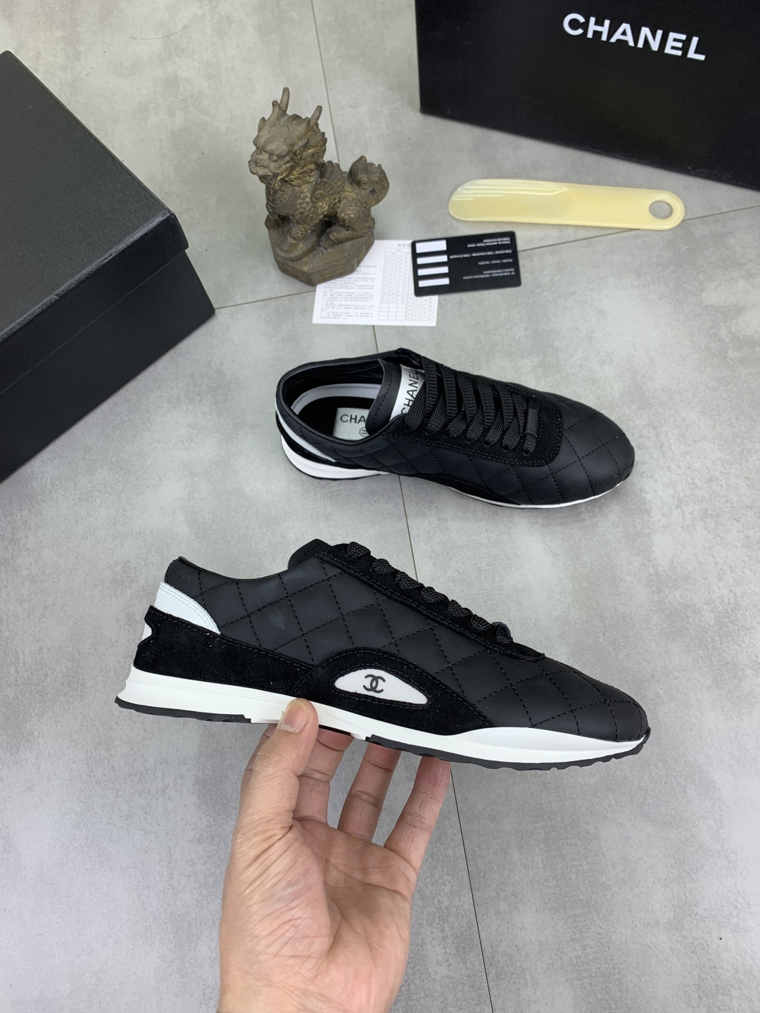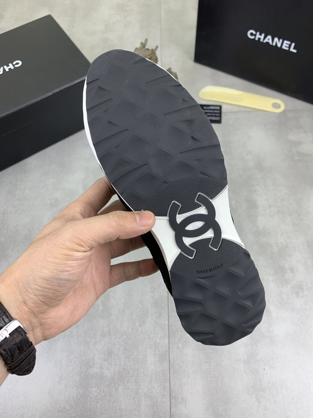 This shoes is AAAAA 1:1 quality (superb). Materials used are identical to the original ones. Chanel trademark marks are indistinguishable to the authentic. Photos take by actual shoes, what you receive will be 100% same with our photos.