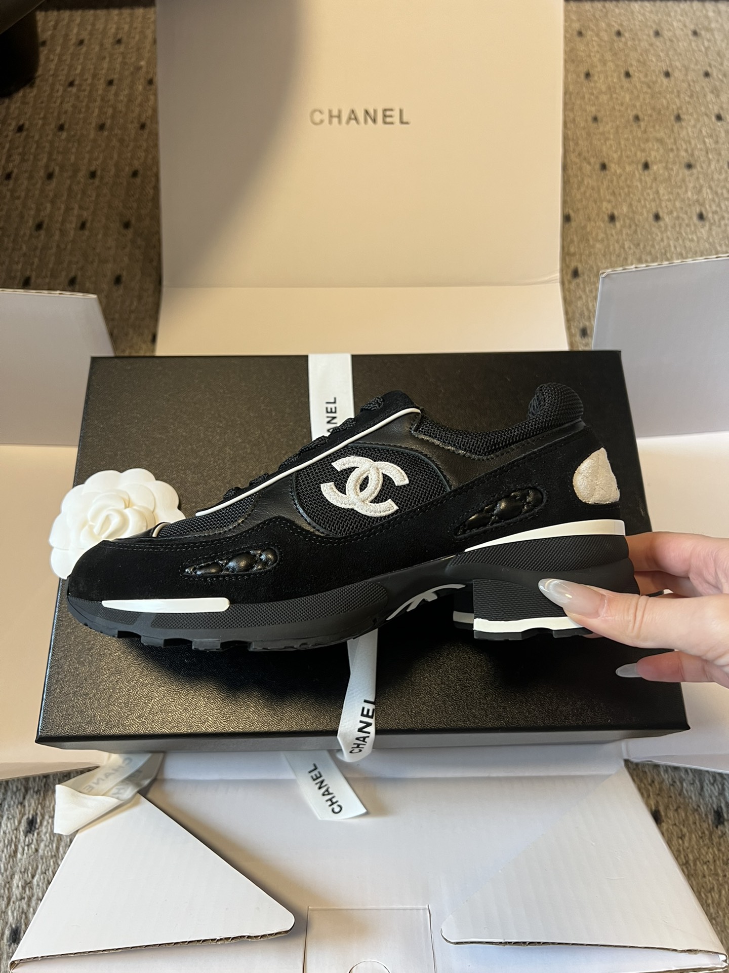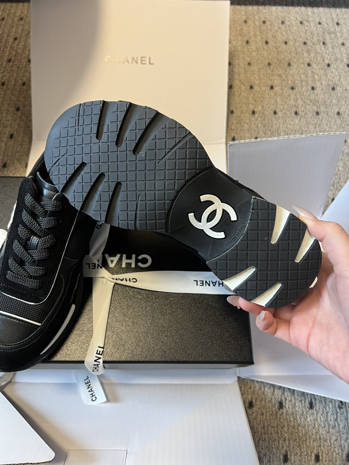 This shoes is AAAAA 1:1 quality (superb). Materials used are identical to the original ones. Chanel trademark marks are indistinguishable to the authentic. Photos take by actual shoes, what you receive will be 100% same with our photos.