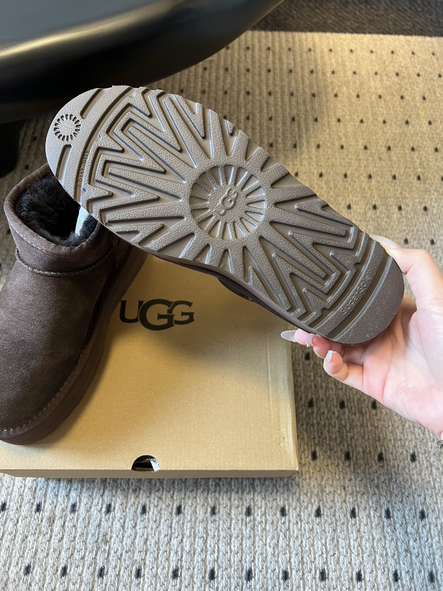 This shoes is AAAAA 1:1 quality (superb). Materials used are identical to the original ones. UGG trademark marks are indistinguishable to the authentic. Photos take by actual shoes, what you receive will be 100% same with our photos.