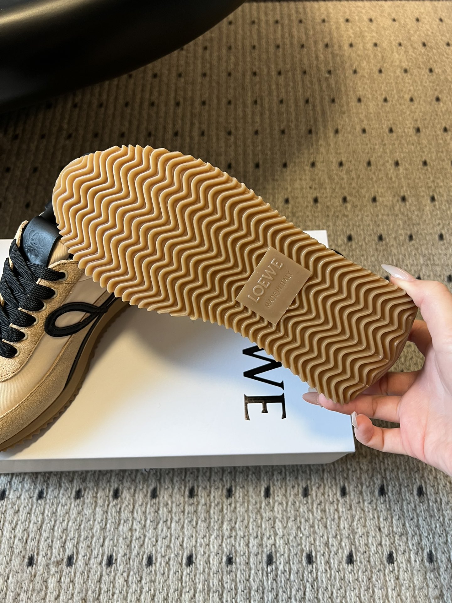 This shoes is AAAAA 1:1 quality (superb). Materials used are identical to the original ones. Loewe trademark marks are indistinguishable to the authentic. Photos take by actual shoes, what you receive will be 100% same with our photos.
