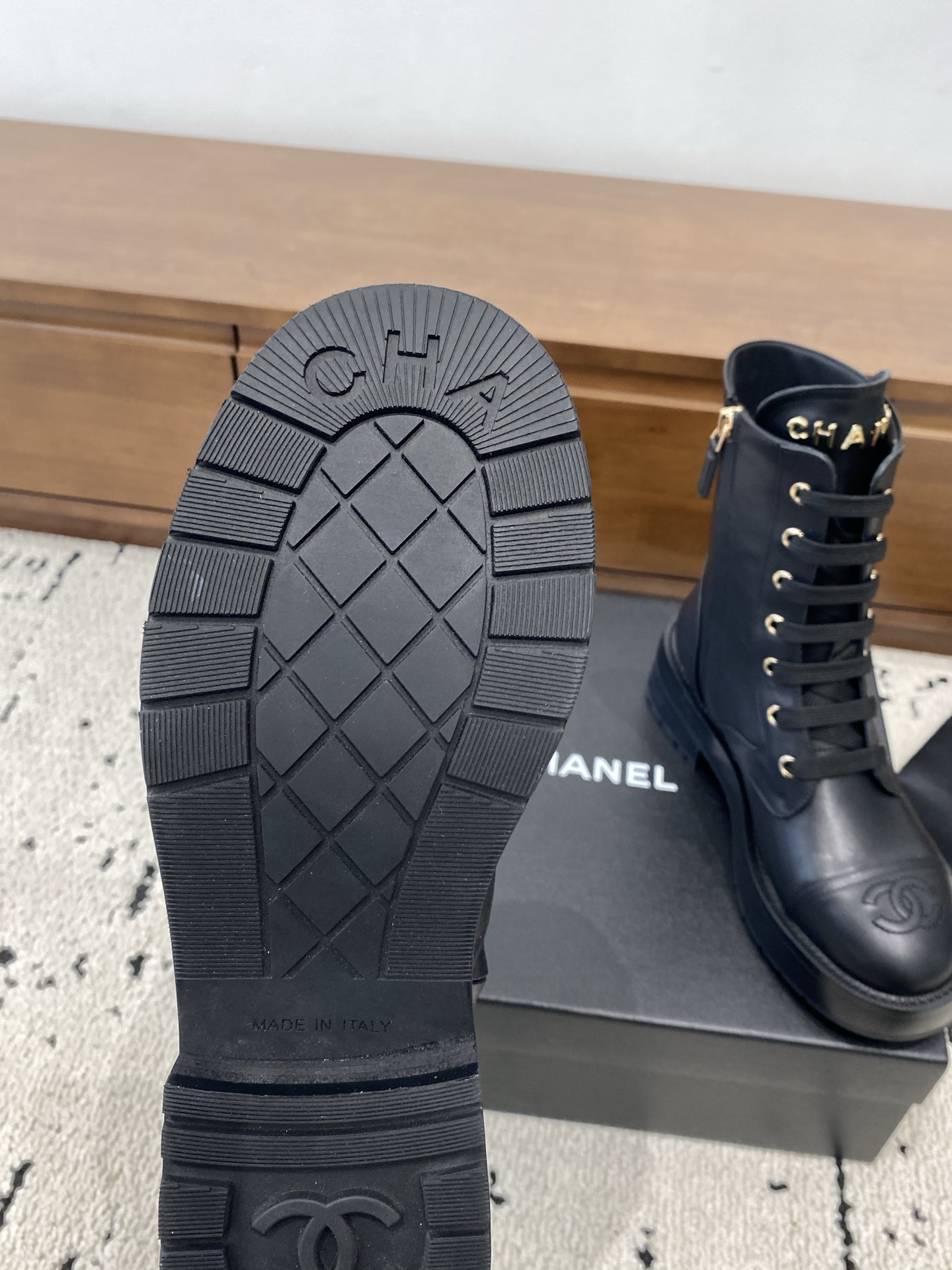 This shoes is AAAAA 1:1 quality (superb). Materials used are identical to the original ones. Chanel trademark marks are indistinguishable to the authentic. Photos take by actual shoes, what you receive will be 100% same with our photos.