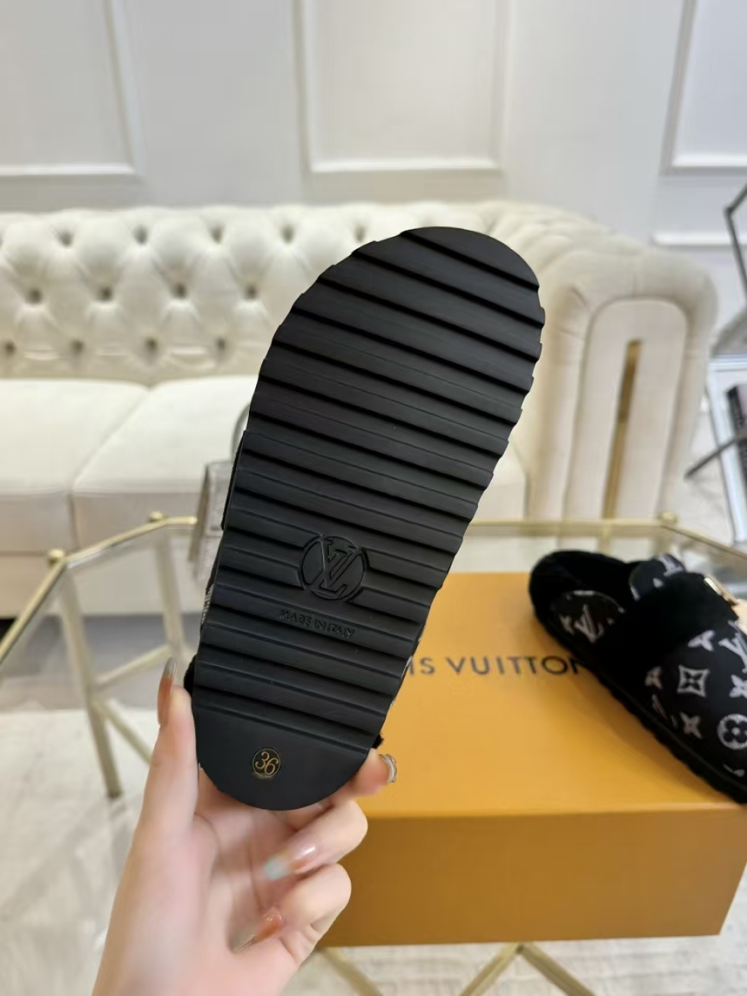This shoes is AAAAA 1:1 quality (superb). Materials used are identical to the original ones. Louis Vuitton trademark marks are indistinguishable to the authentic. Photos take by actual shoes, what you receive will be 100% same with our photos.