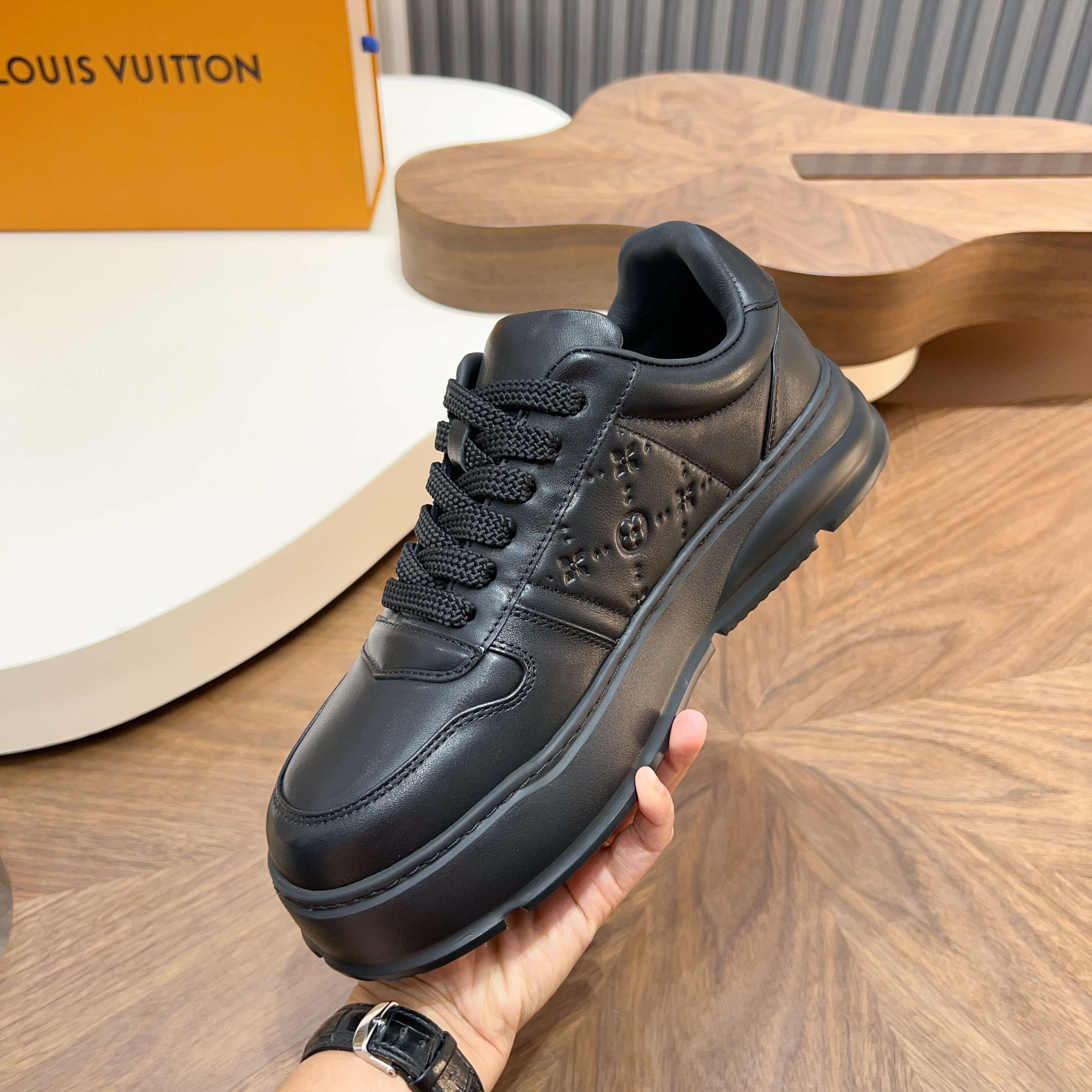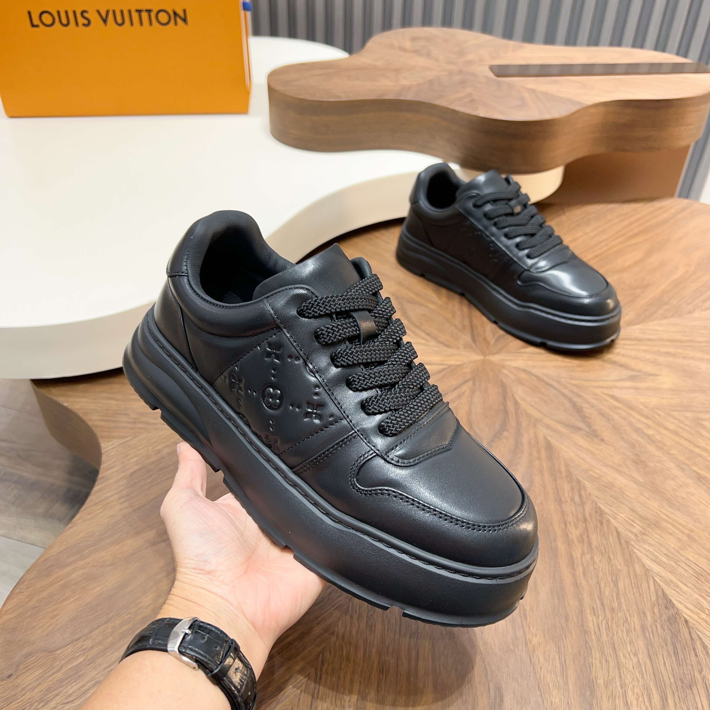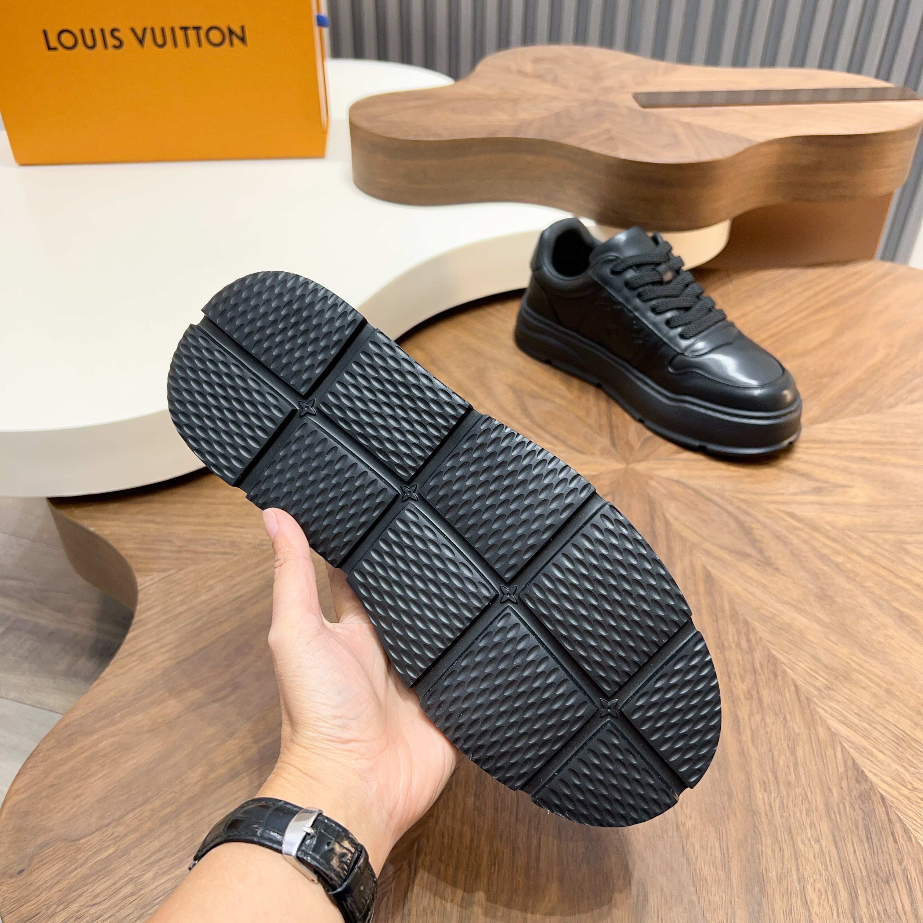 This shoes is AAAAA 1:1 quality (superb). Materials used are identical to the original ones. Louis Vuitton trademark marks are indistinguishable to the authentic. Photos take by actual shoes, what you receive will be 100% same with our photos.