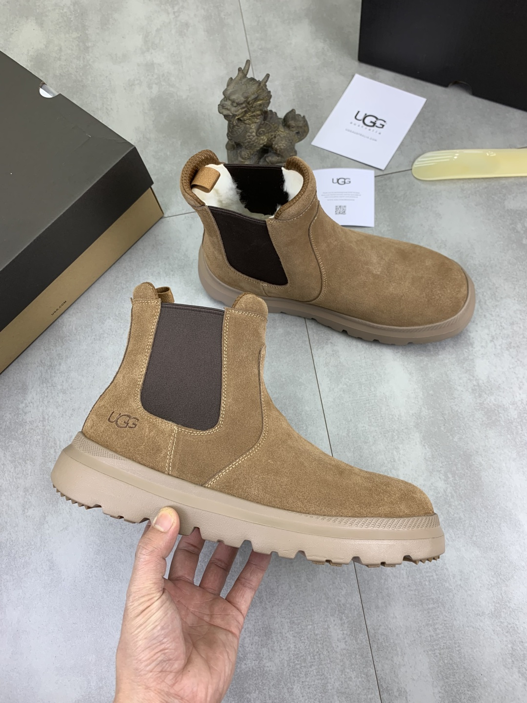 This shoes is AAAAA 1:1 quality (superb). Materials used are identical to the original ones. UGG trademark marks are indistinguishable to the authentic. Photos take by actual shoes, what you receive will be 100% same with our photos.