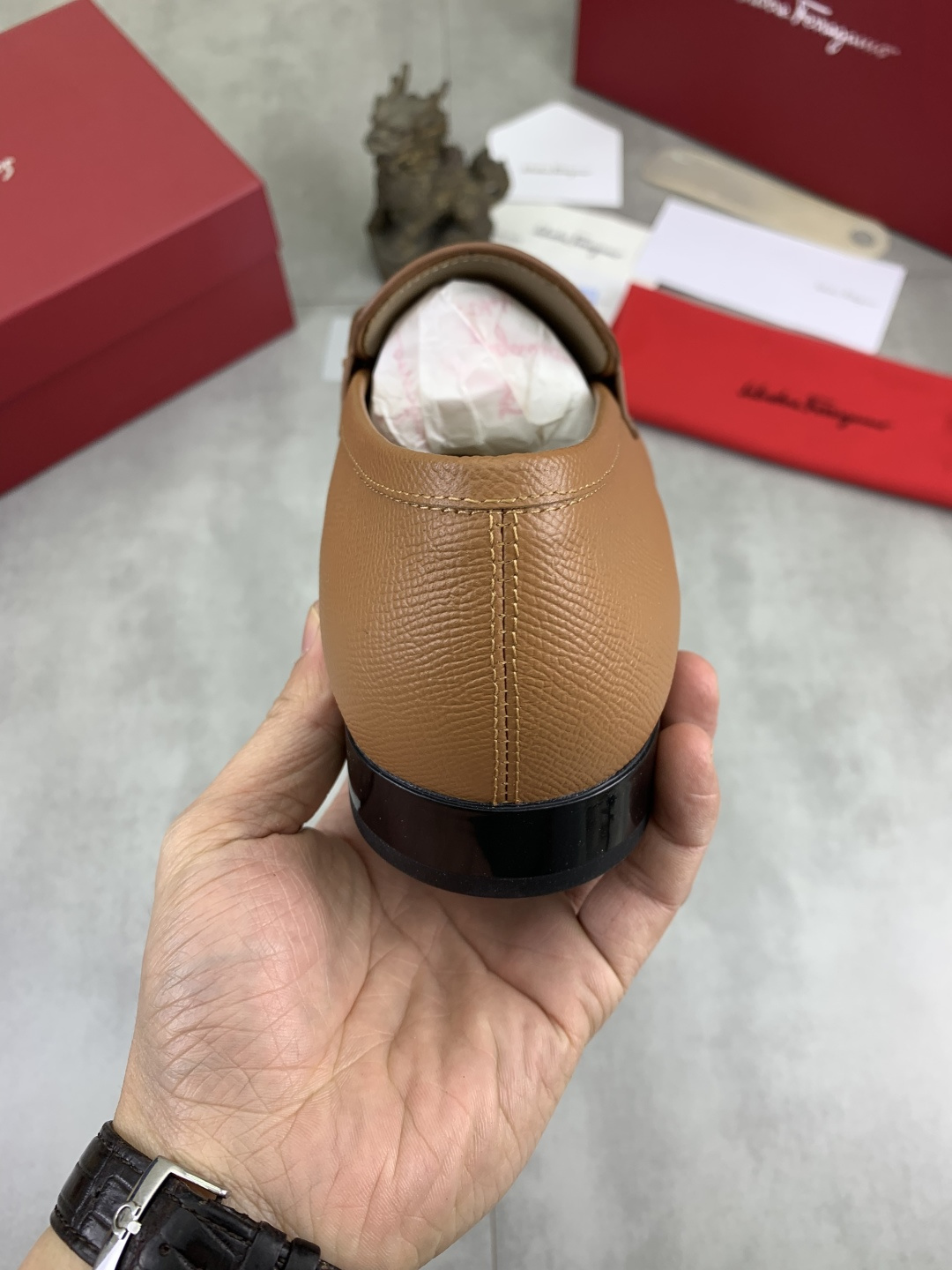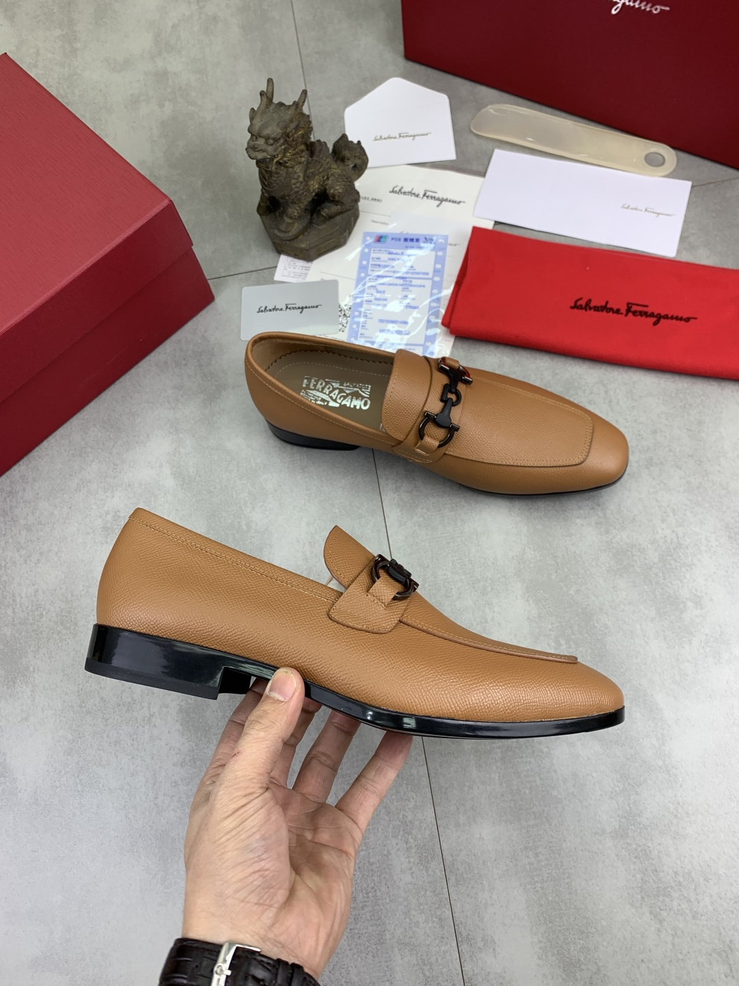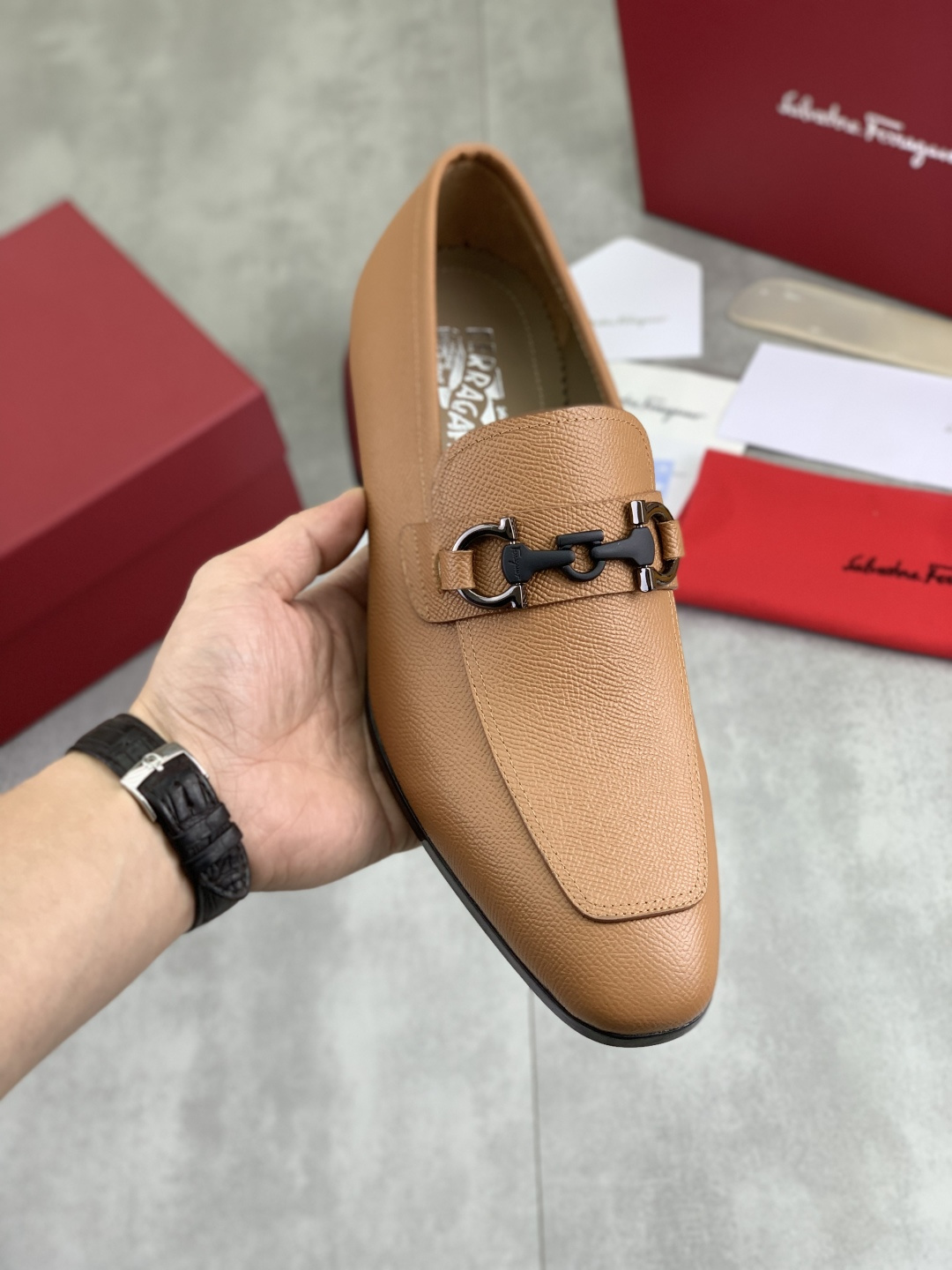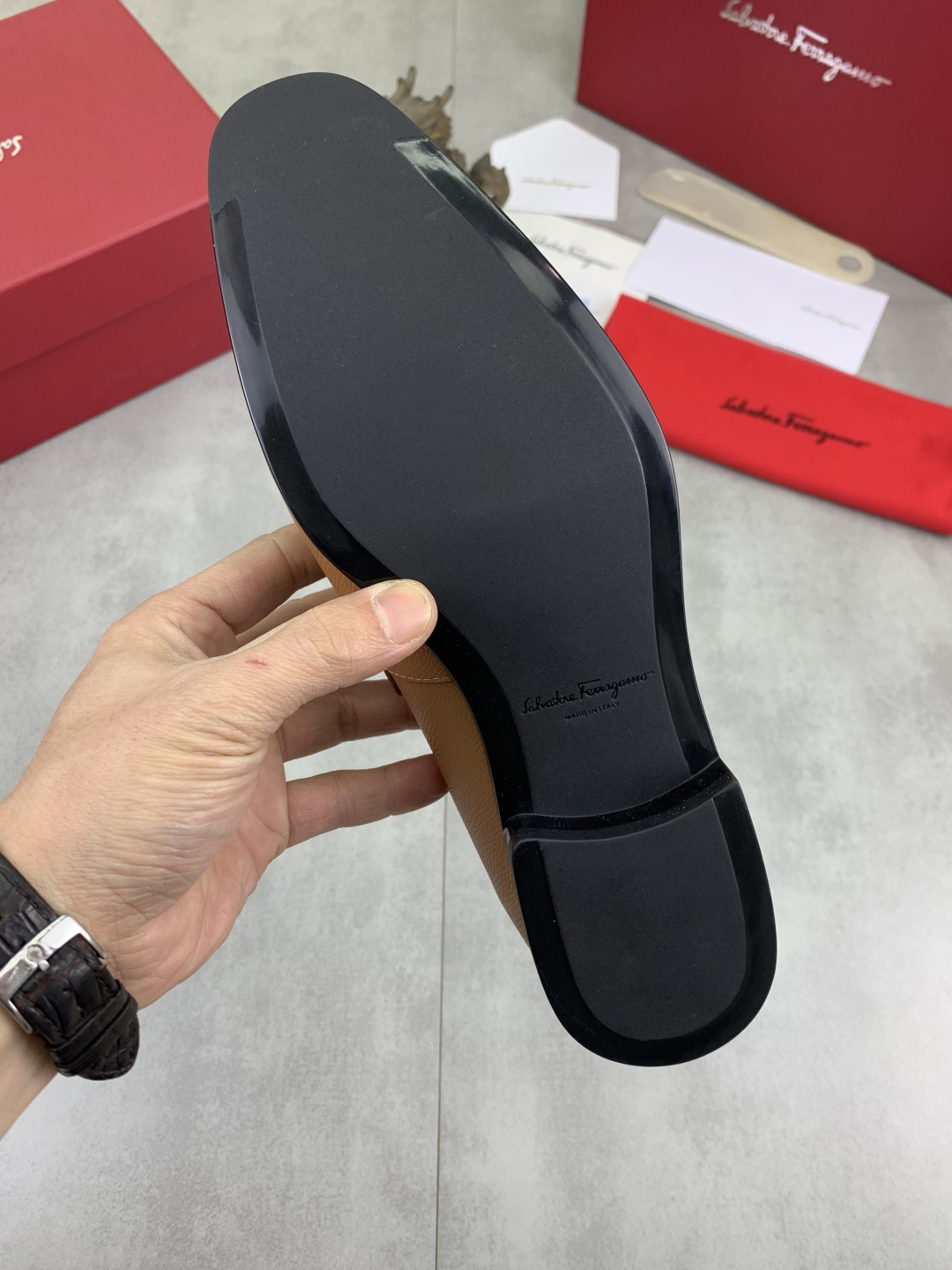 This shoes is AAAAA 1:1 quality (superb). Materials used are identical to the original ones. Salvatore Ferragamo trademark marks are indistinguishable to the authentic. Photos take by actual shoes, what you receive will be 100% same with our photos.
