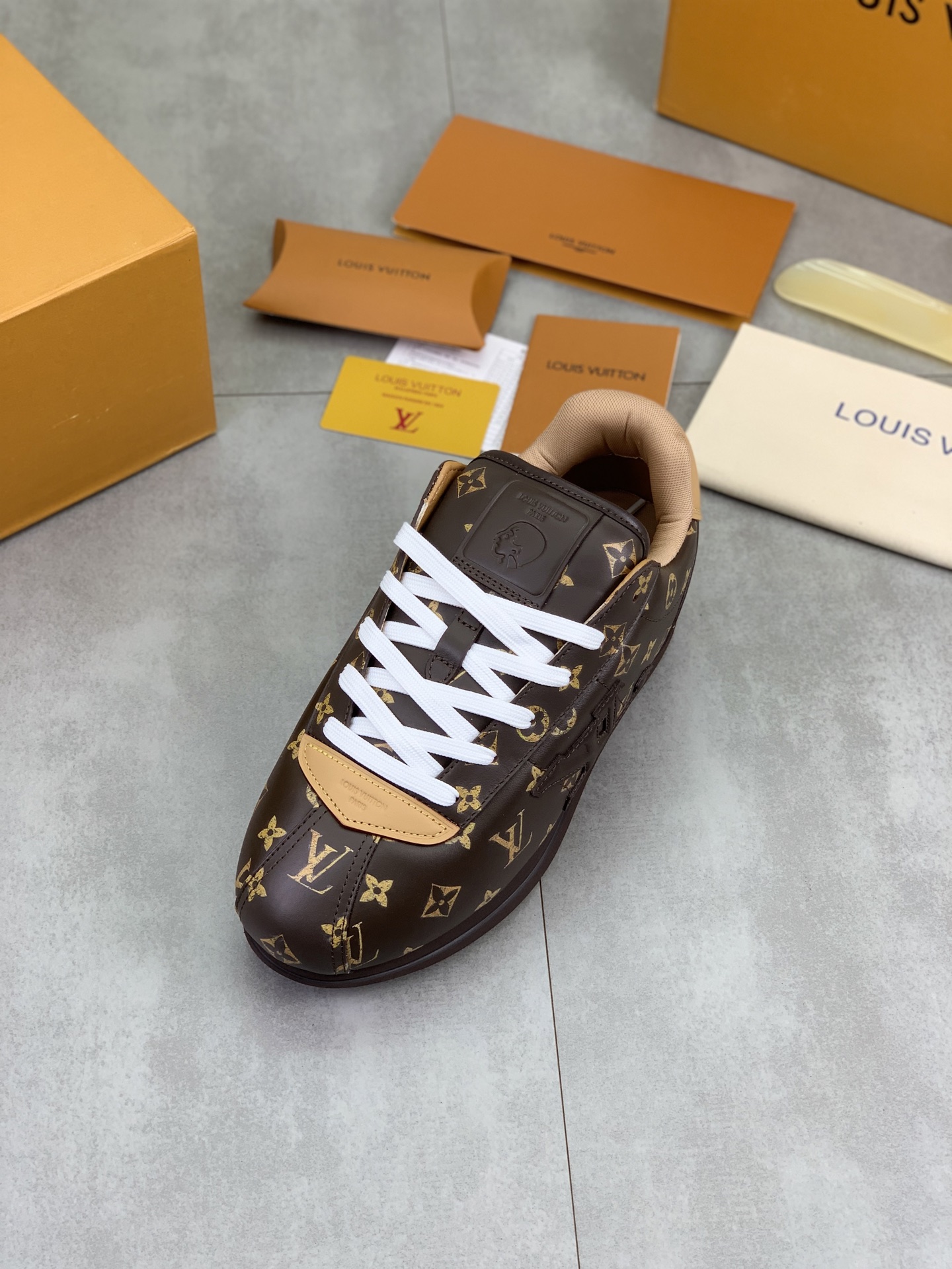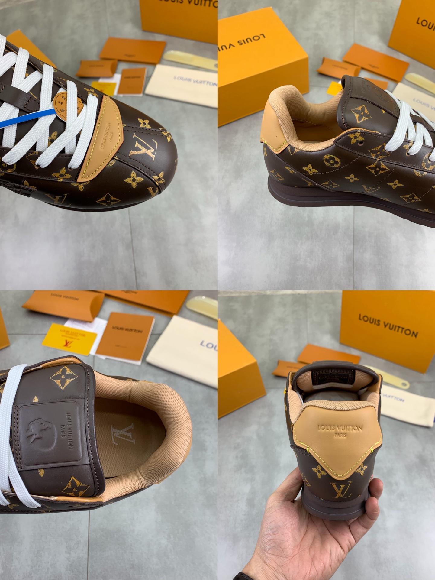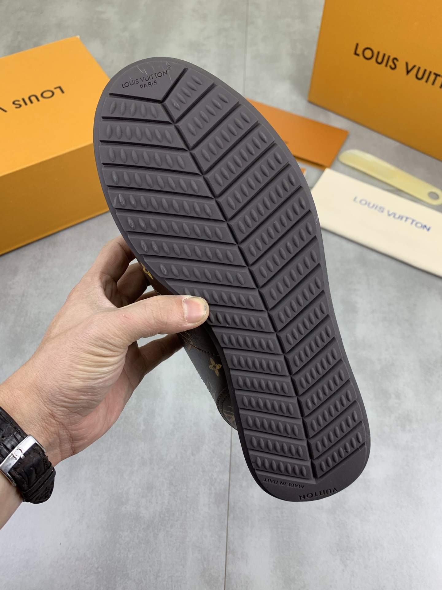 This shoes is AAAAA 1:1 quality (superb). Materials used are identical to the original ones. Louis Vuitton trademark marks are indistinguishable to the authentic. Photos take by actual shoes, what you receive will be 100% same with our photos.
