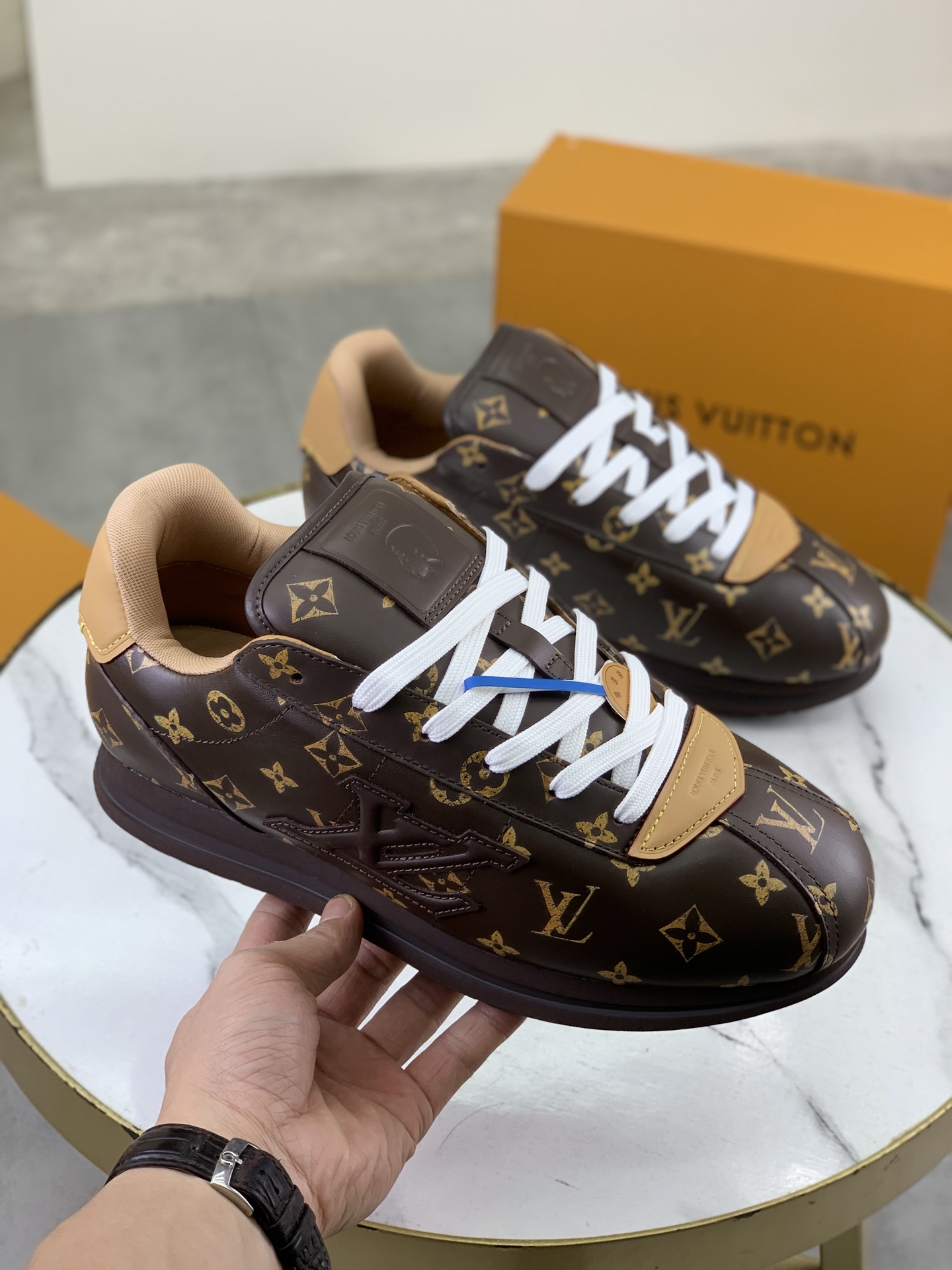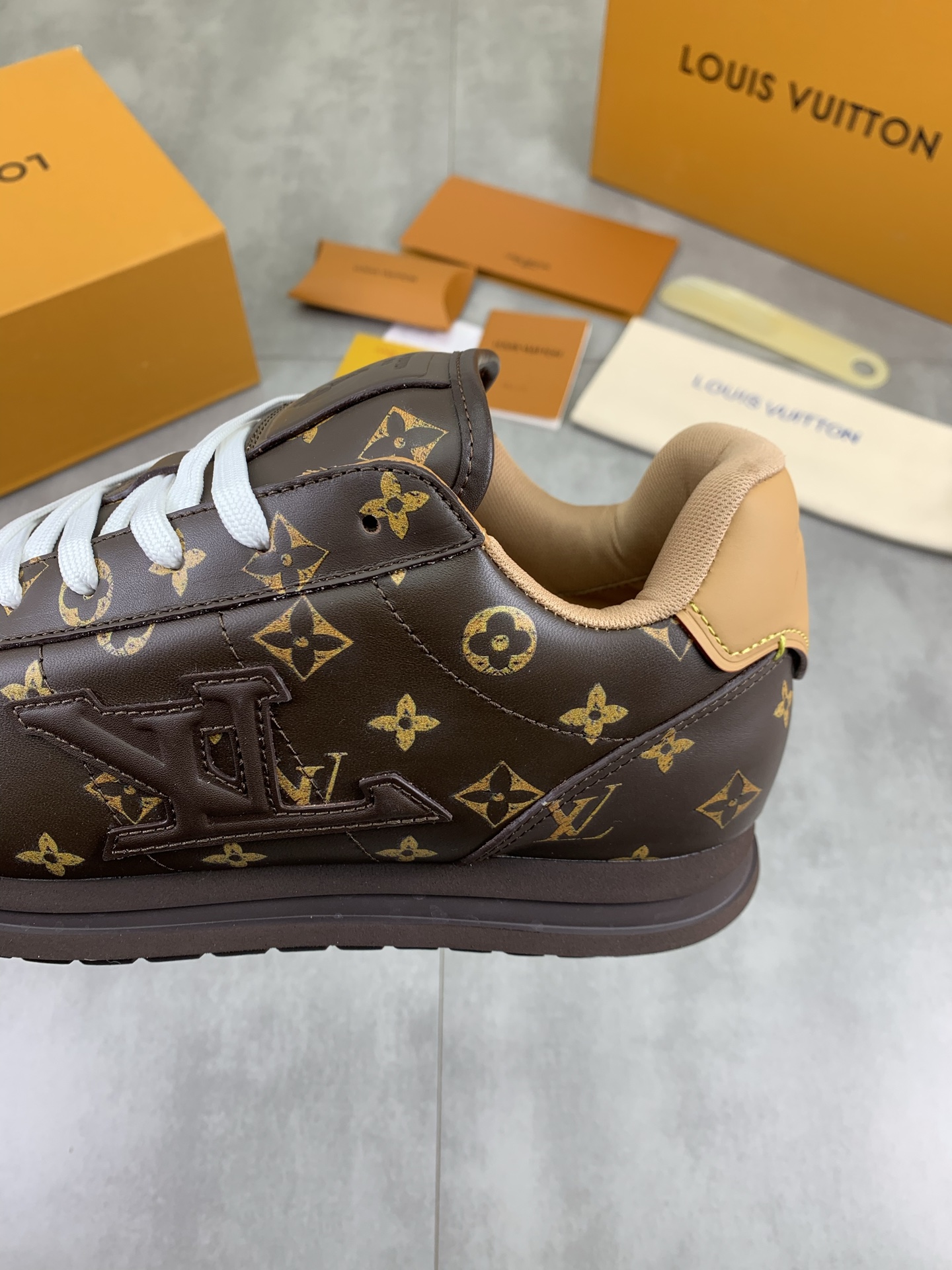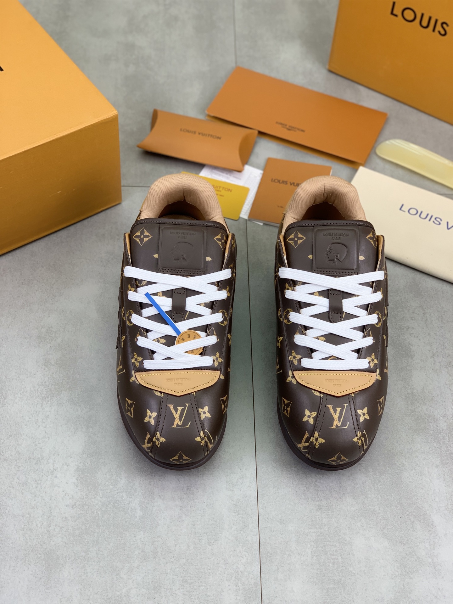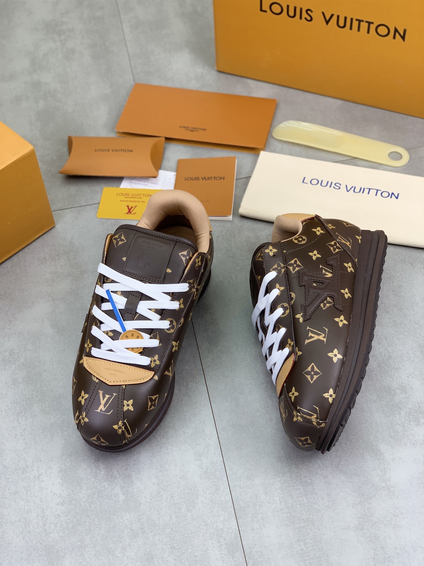This shoes is AAAAA 1:1 quality (superb). Materials used are identical to the original ones. Louis Vuitton trademark marks are indistinguishable to the authentic. Photos take by actual shoes, what you receive will be 100% same with our photos.
