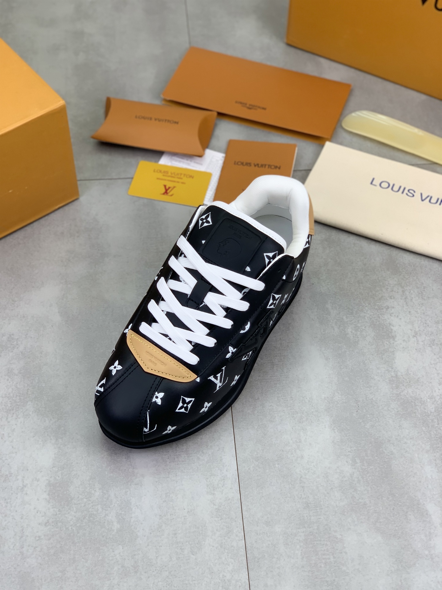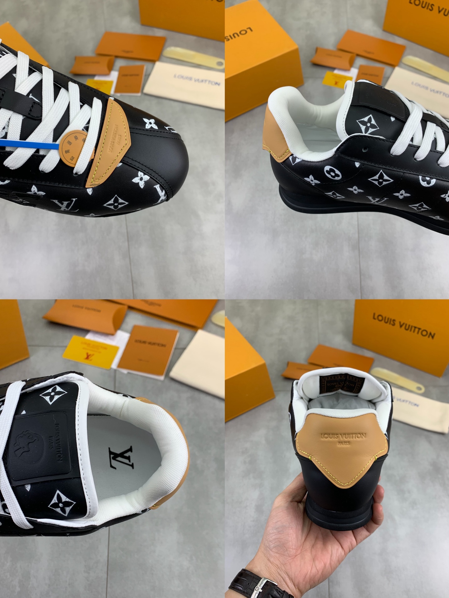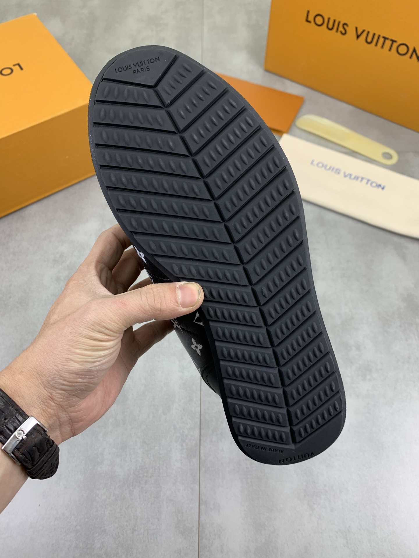 This shoes is AAAAA 1:1 quality (superb). Materials used are identical to the original ones. Louis Vuitton trademark marks are indistinguishable to the authentic. Photos take by actual shoes, what you receive will be 100% same with our photos.