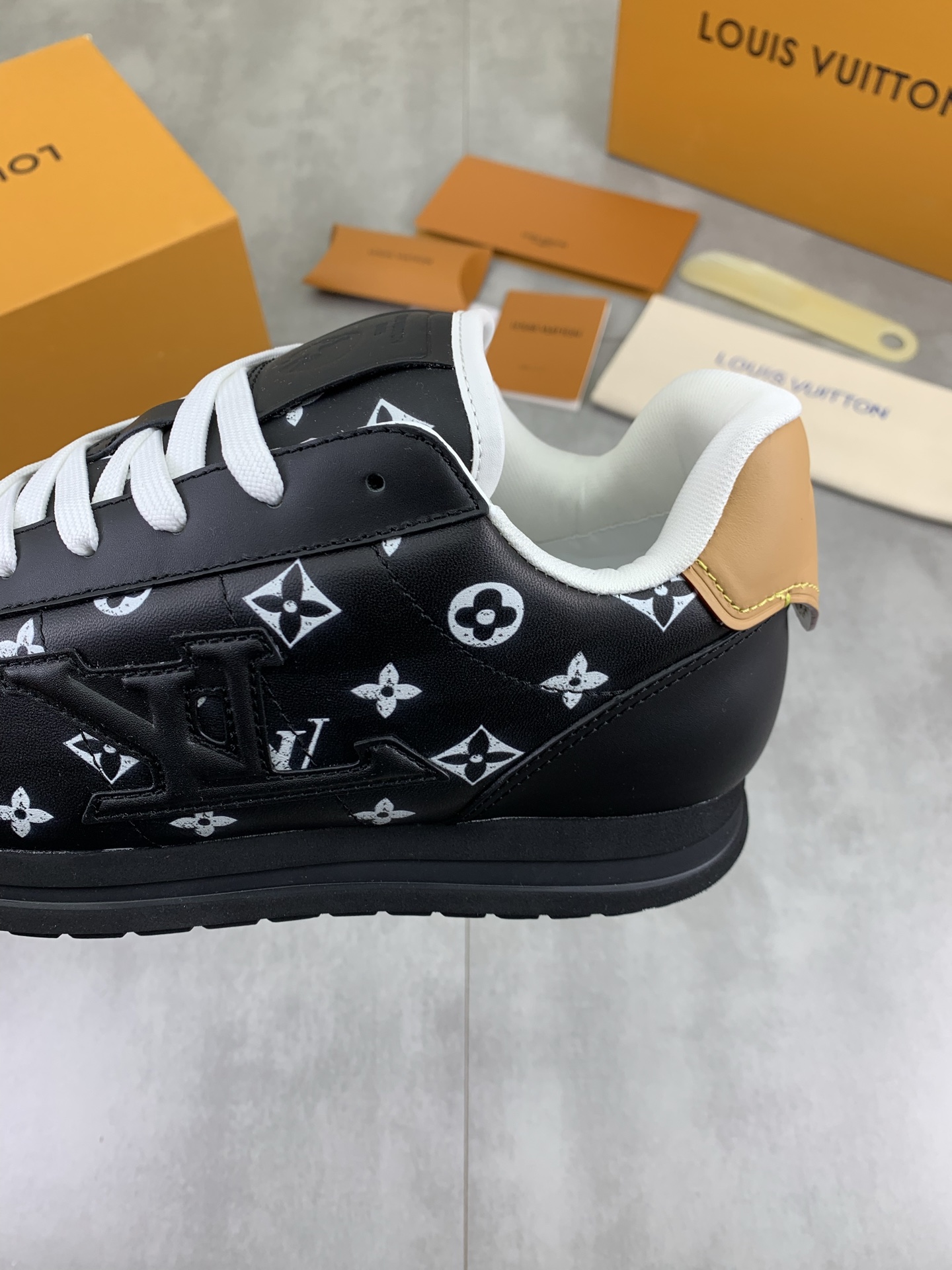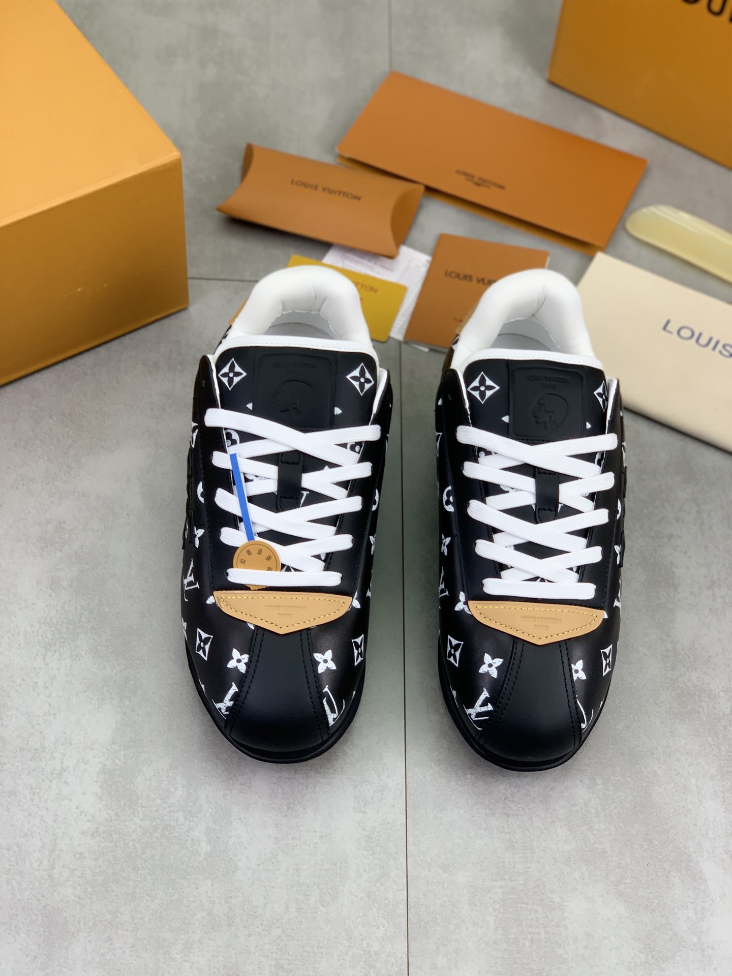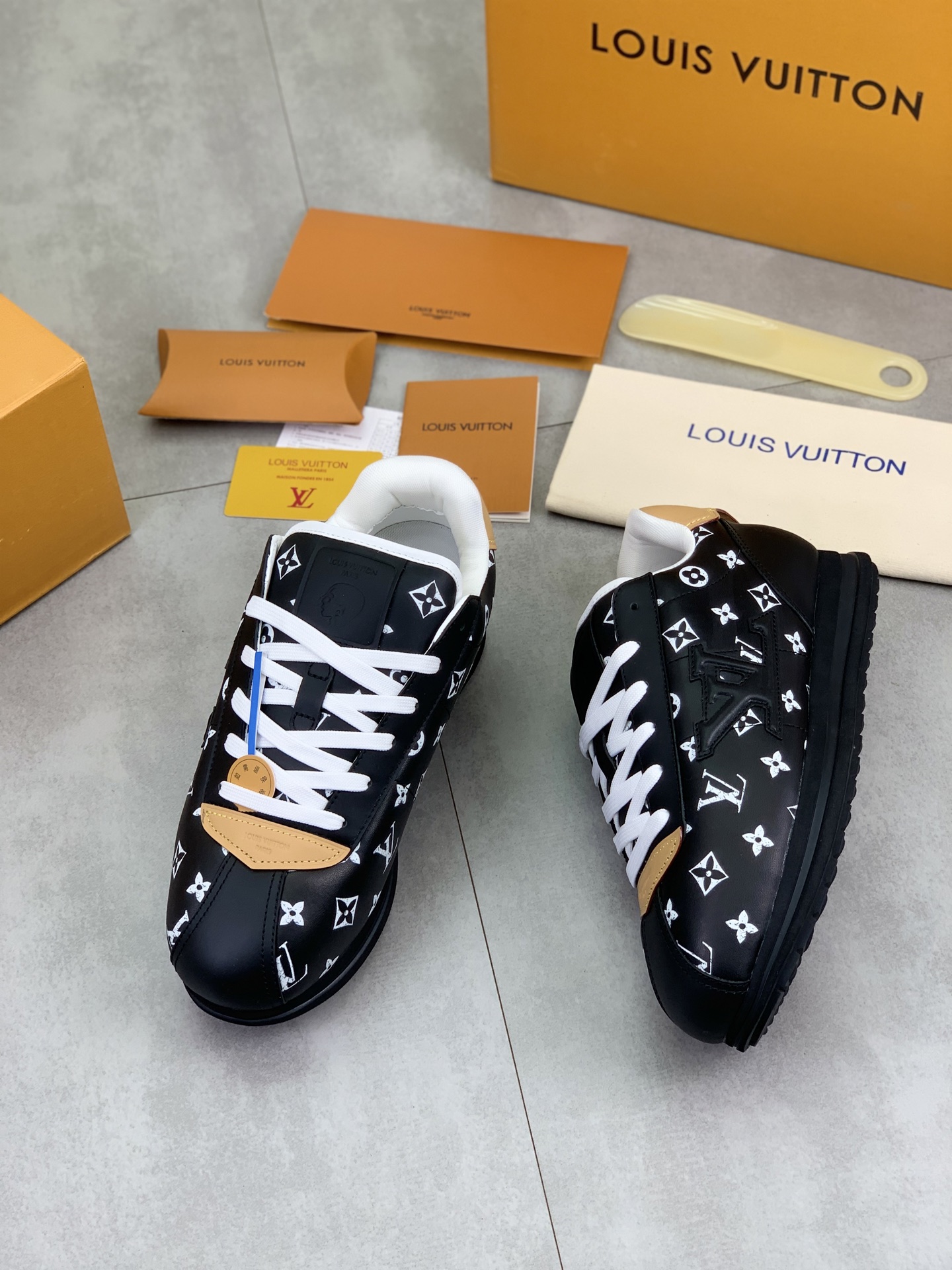 This shoes is AAAAA 1:1 quality (superb). Materials used are identical to the original ones. Louis Vuitton trademark marks are indistinguishable to the authentic. Photos take by actual shoes, what you receive will be 100% same with our photos.