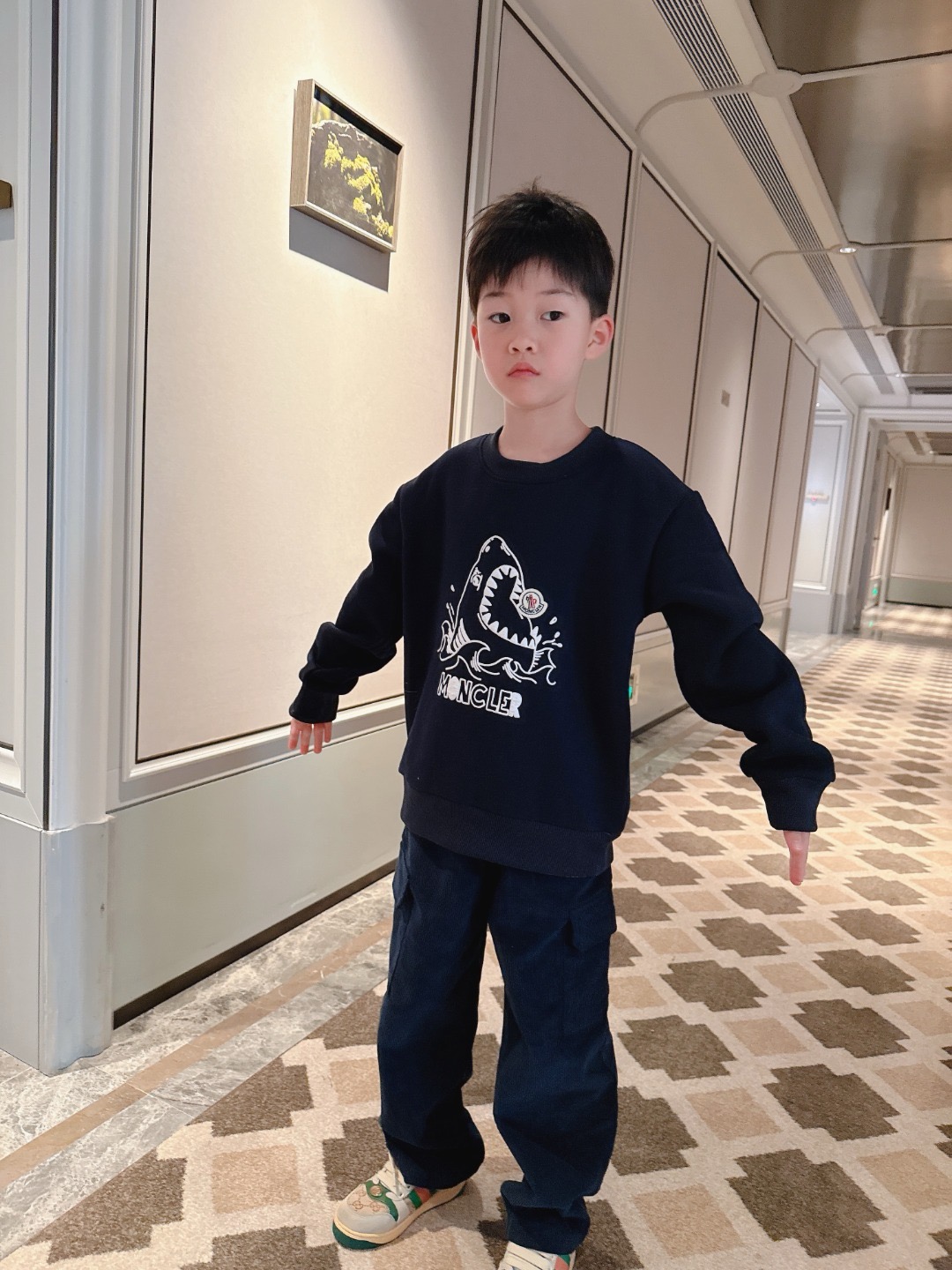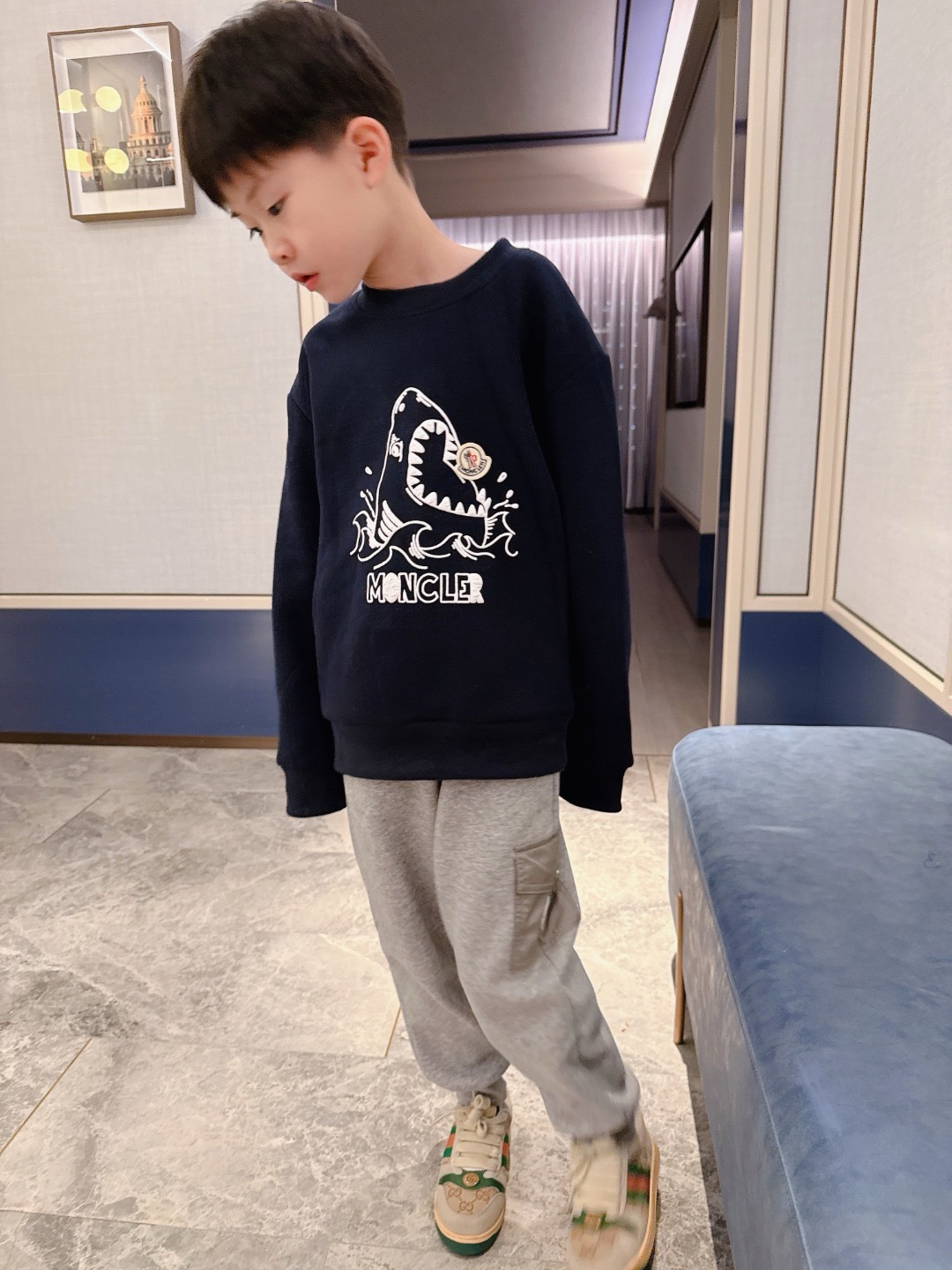This children's clothes is AAAAA 1:1 quality (superb). Materials used are identical to the original ones. trademark marks are indistinguishable to the authentic. Photos take by actual children's clothes, what you receive will be 100% same with our photos.