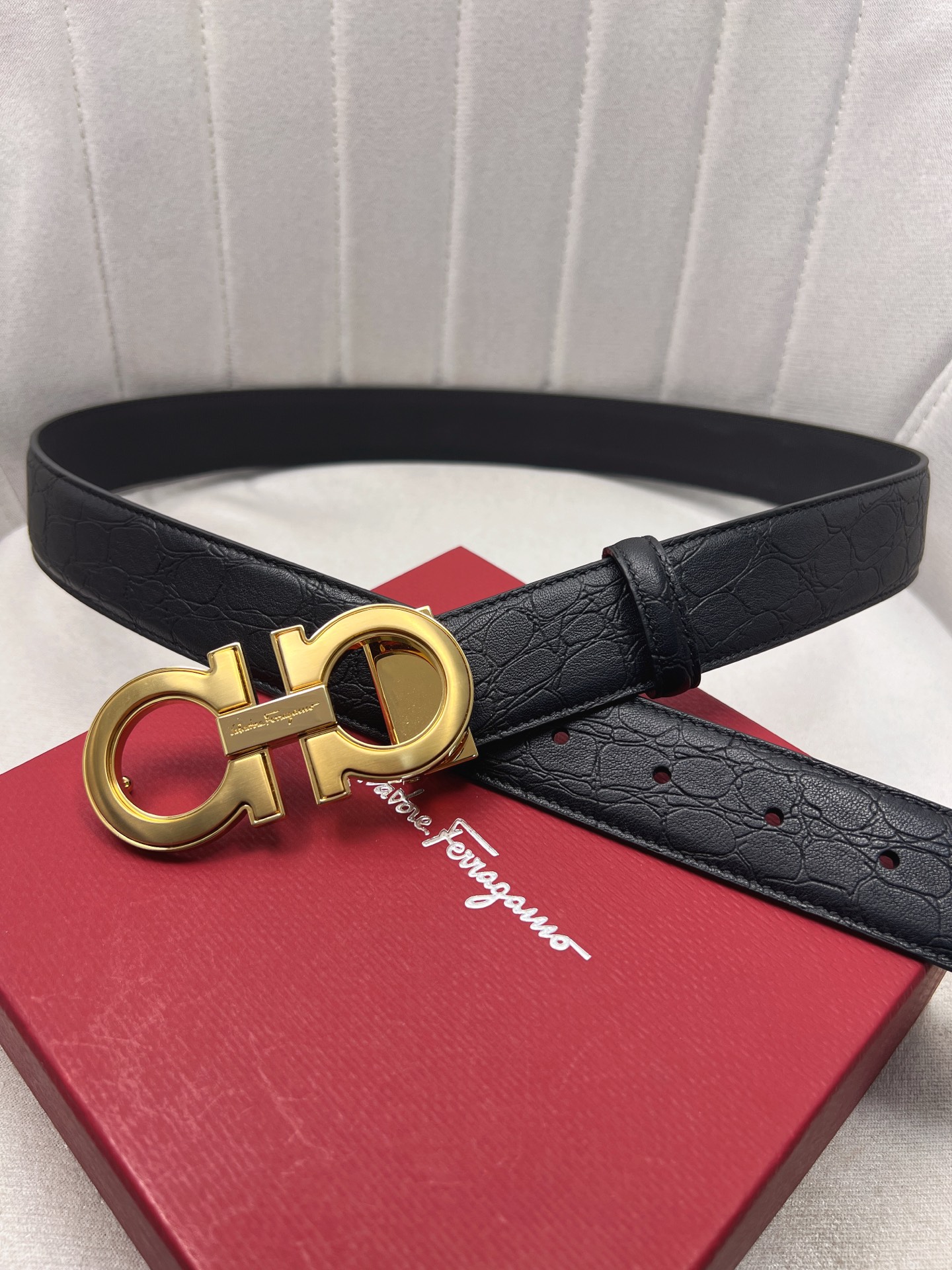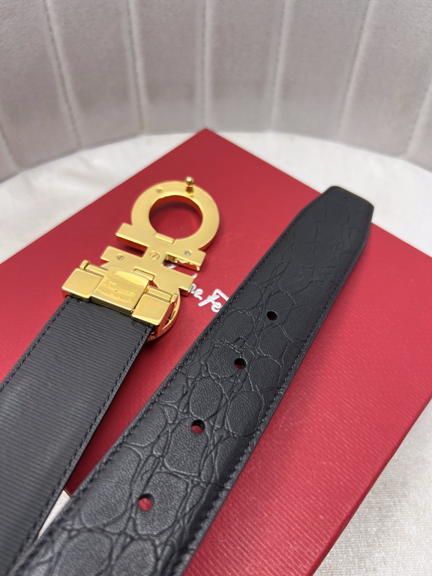 This belt is AAAAA 1:1 quality (superb). Materials used are identical to the original ones. Salvatore Ferragamo trademark marks are indistinguishable to the authentic. Photos take by actual belt, what you receive will be 100% same with our photos.