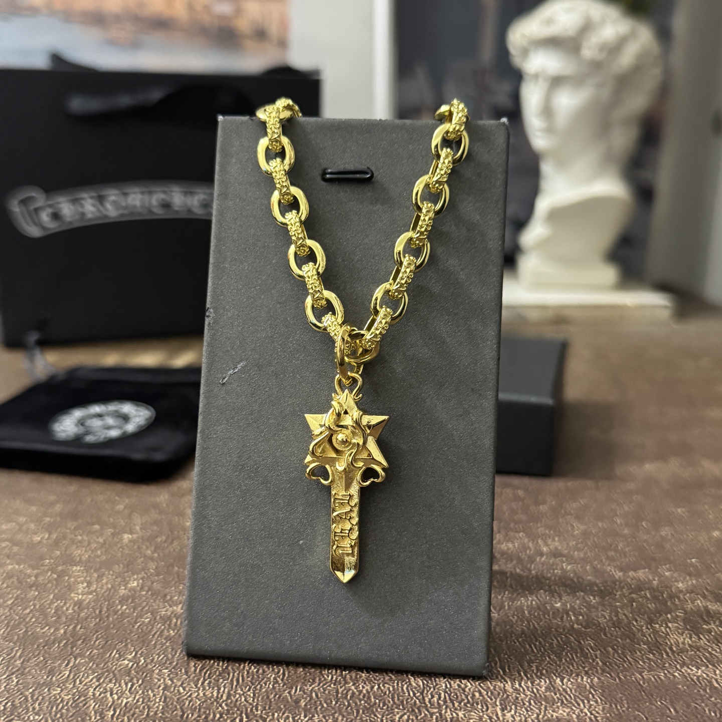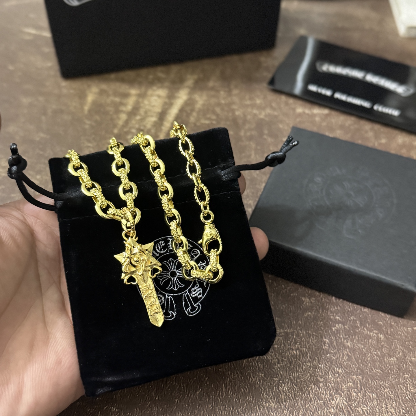 This jewelry is AAAAA 1:1 quality (superb). Materials used are identical to the original ones. Chrome Hearts trademark marks are indistinguishable to the authentic. Photos take by actual jewelry, what you receive will be 100% same with our photos.